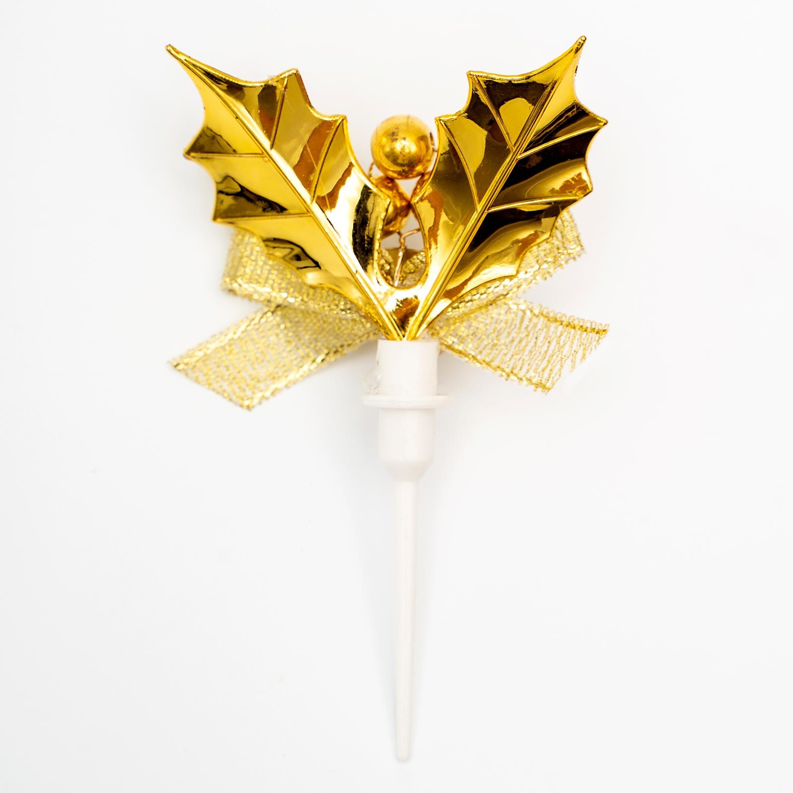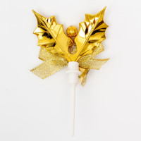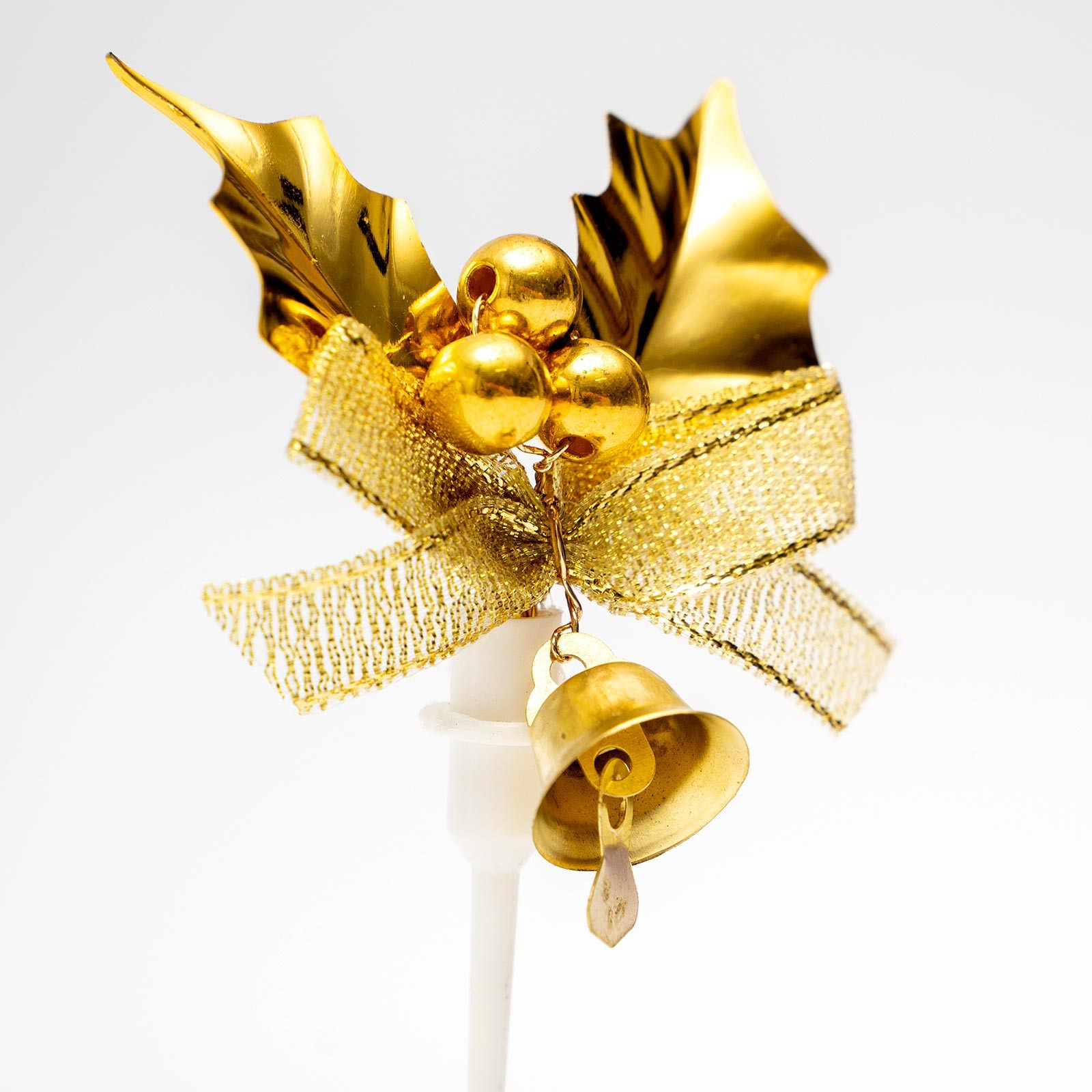 Украшение для торта «золотой бантик». Цвет: Золотистый Высота держателя, см: 4 Материал: Пластик Материал: Текстиль