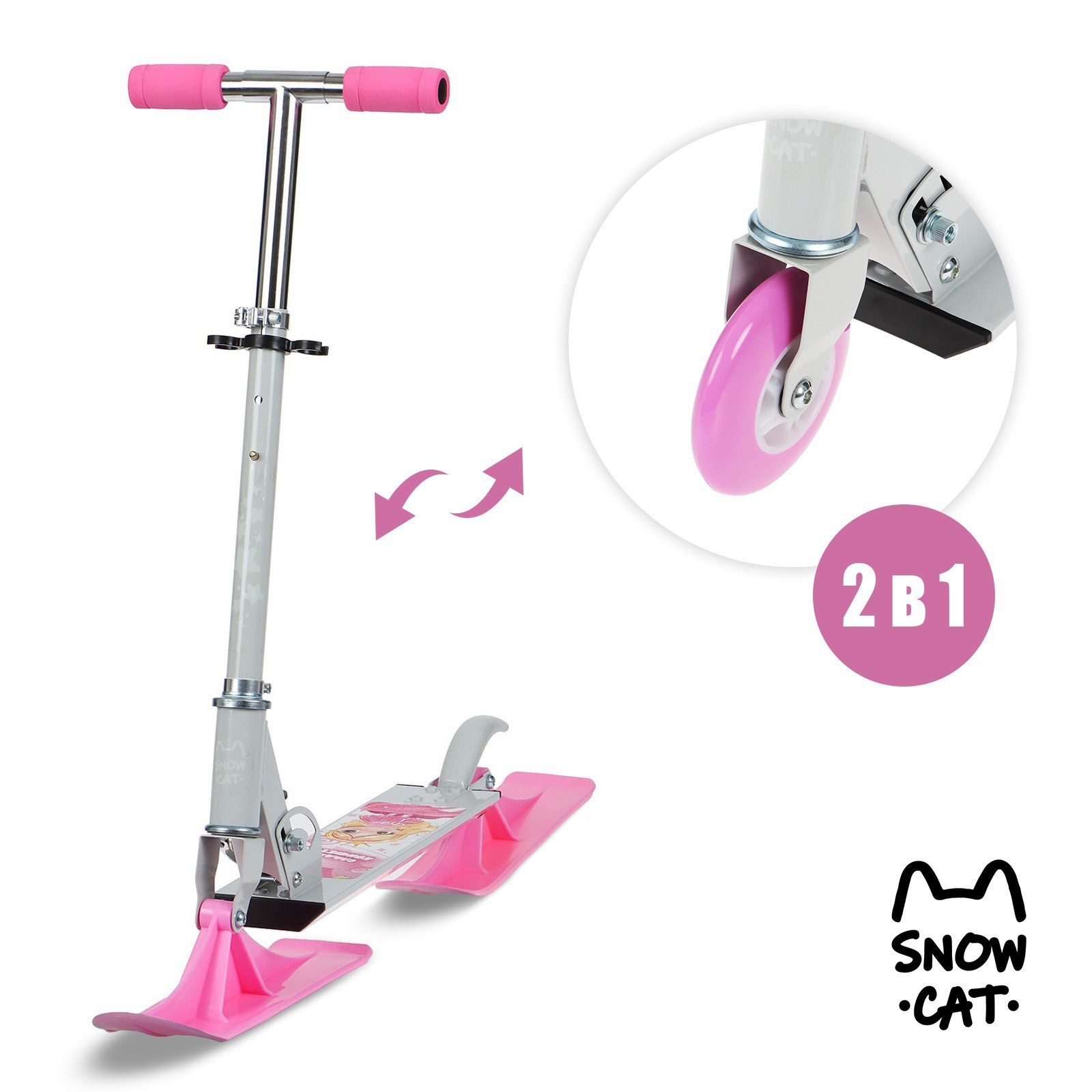 Самокат-снегокат 2 в 1 snow cat, колёса 100 мм. Цвет: Белый Возраст: От 3 лет Количество колёс: 2 Диаметр колеса, мм: 100 Материал колёс: Пластиковые Серия: Без серии Максимально допустимый вес, кг: 40 Сиденье: Нет Высота руля, см: 67 - 76 Мотор: Нет Инерционный: Нет Ширина руля, см: 25 Особенности самоката: Регулировка высоты руля Особенности самоката: Складной механизм Особенности самоката: Ножной тормоз Размер платформы: 31 х 9.5 Материал деки: Металл Вид самоката: Самокат-снегокат Материал руля: Металл  развернуть описание ▼