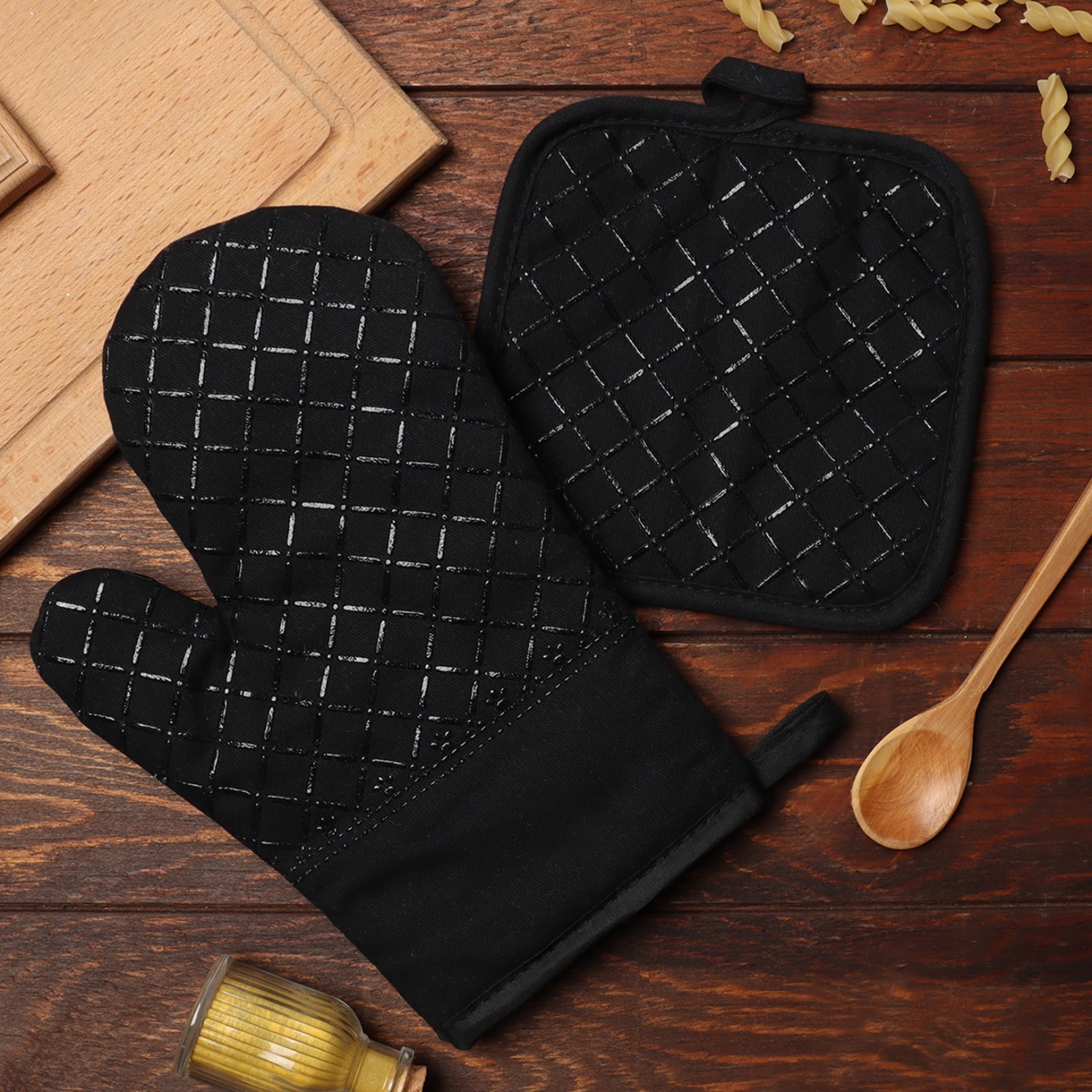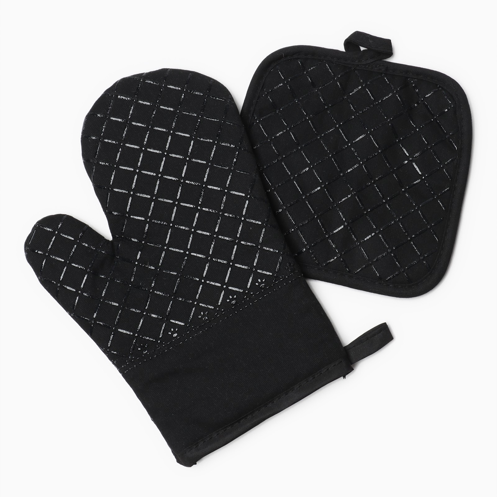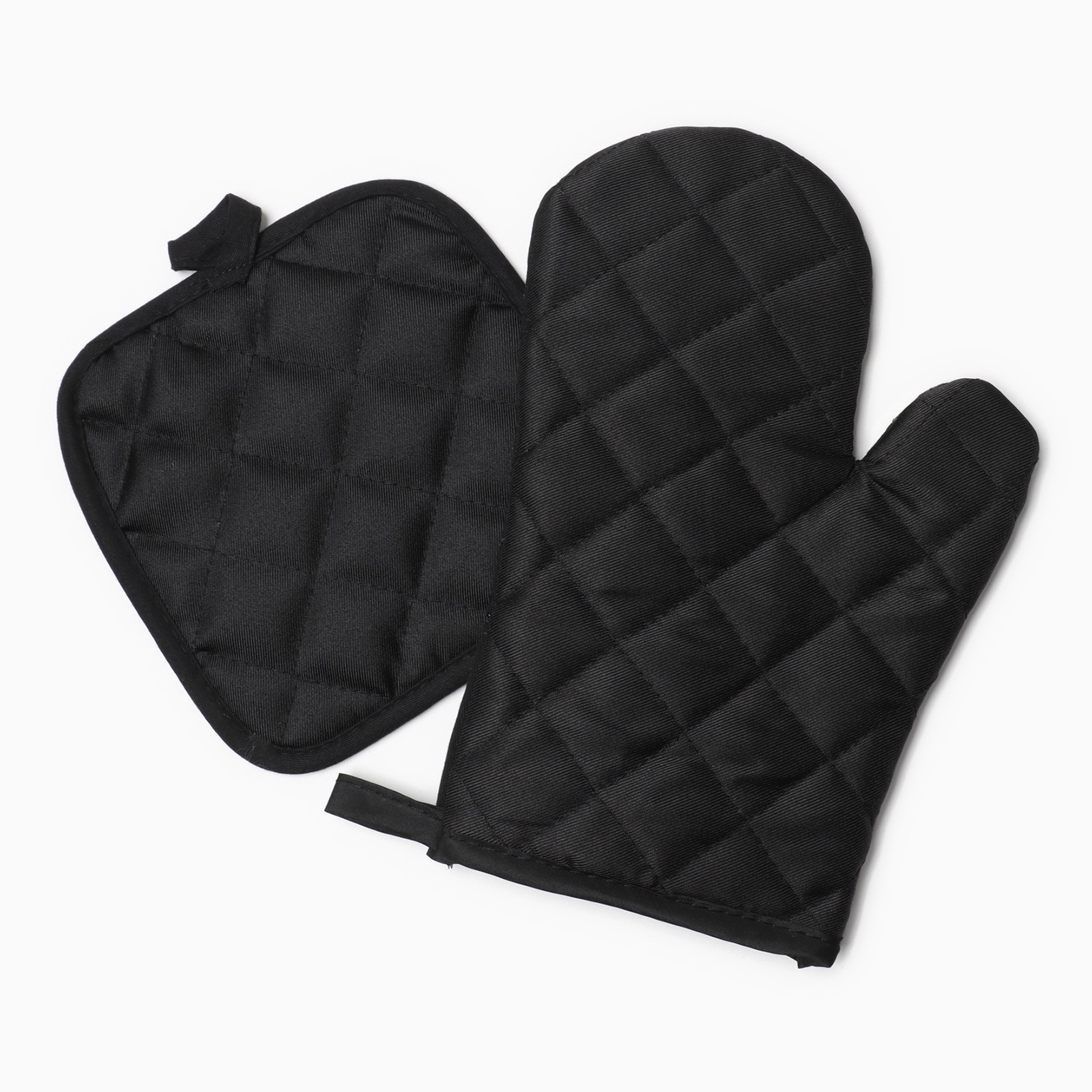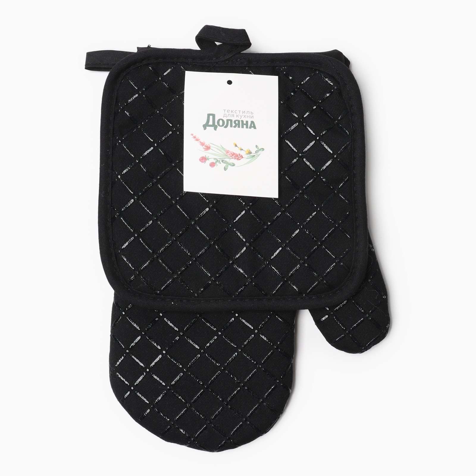 Кухонный набор 2 предмета доляна цвет черный, прихватка 17*17 см, варежка 26*16 см,100% п/э