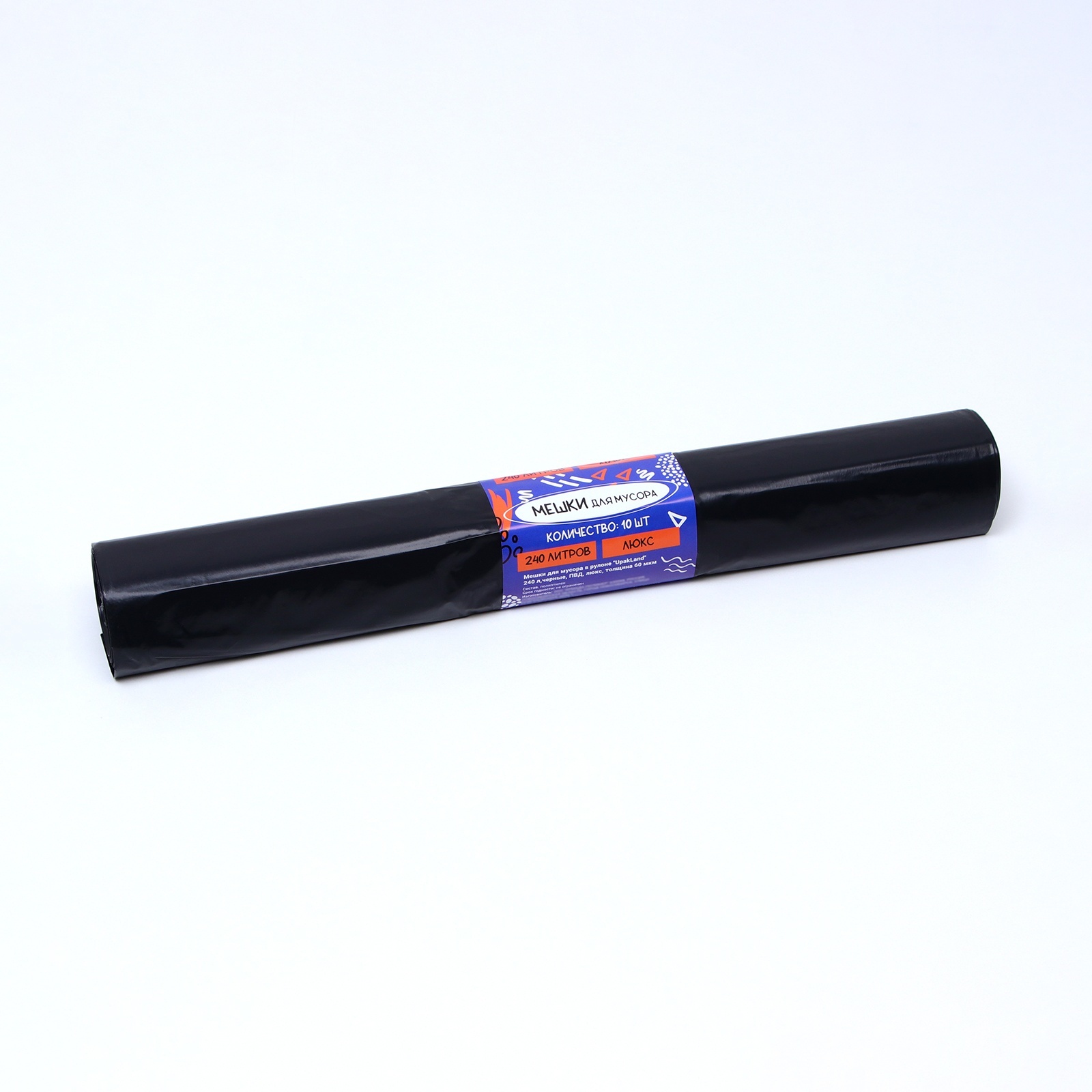 Мешки для мусора в рулоне "Upakland" 240 л, черные, пвд, толщина 60 мкм, 10 шт
