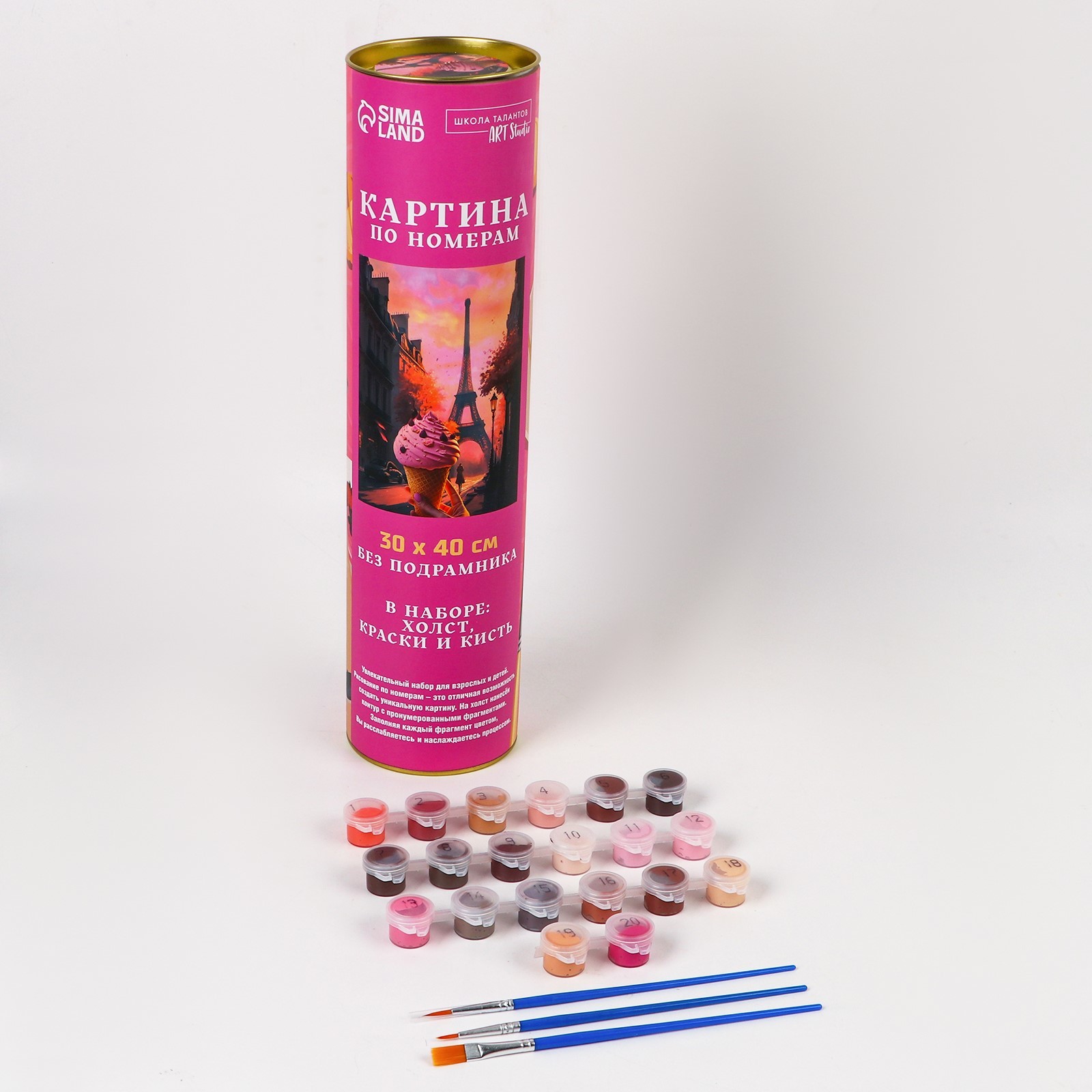 Картина по номерам в тубусе «волшебный париж», 30 х 40 см. Набор для рисования станет находкой для людей, которые хотят творить! Специально разработанная уникальная серия росписи по номерам станет верным помощником начинающим художникам, с помощью которой они будут создавать настоящие шедевры изобразительного искусства! Написанная своими руками картина украсит интерьер или станет прекрасным подарком для родных и близких людей. Картина по номерам в тубусе «Волшебный Париж», 30 х 40 см понравится и детям, и взрослым. Холст разделён на множество мелких фрагментов, на каждом из которых указано число, соответствующее цвету, которым нужно закрасить данный участок. В набор входят все необходимые оттенки красок, каждый из которых пронумерован. Поначалу, когда вы только возьмёте холст в руки, будет сложно представить, что за чудесная картина получится в итоге! Но уверяем вас, результат превзойдёт все ожидания. Полотно с множеством оттенков, теней и красок будет выглядеть так, словно оно из музея. Раскрашивание по номерам покорило сердца миллионов людей по всему миру, ведь с ним каждый может создать шедевр! Присоединяйтесь к этому увлекательному занятию, творите и наслаждайтесь результатами. Для кого:Унисекс|Размер, см:30 х 40|Возраст:Для взрослых|Тематика:Города и архитектура|Тематика:Закат|Тематика:Достопримечательности|Ориентация изображения:Вертикально|Вид:Холст под роспись|Уровень сложности:Сложный|Комплектация набора:С кисточками|Комплектация набора:С красками|Страна:Китай  развернуть описание ▼