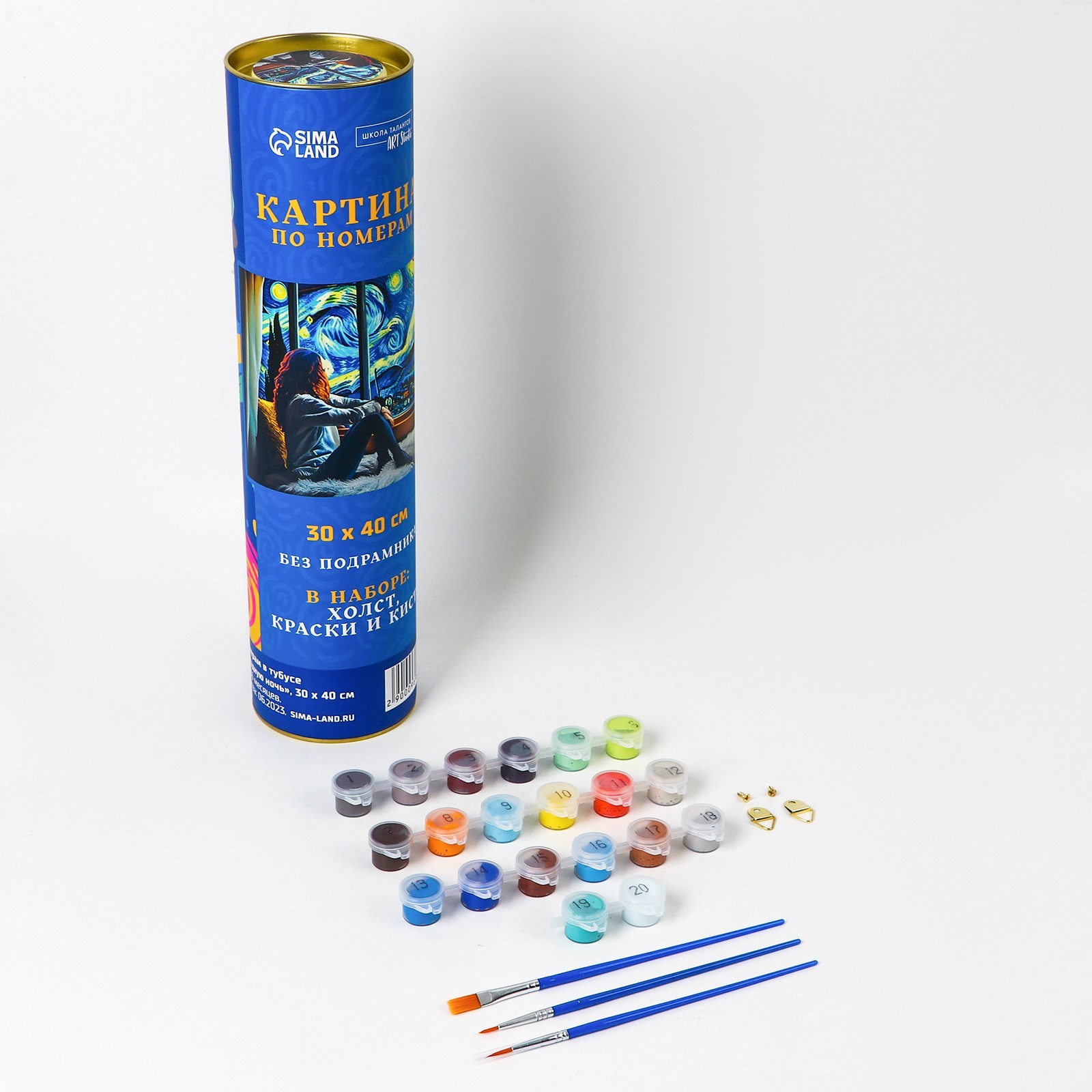 Картина по номерам в тубусе «с видом на звездную ночь», 30 х 40 см. Набор для рисования станет находкой для людей, которые хотят творить! Специально разработанная уникальная серия росписи по номерам станет верным помощником начинающим художникам, с помощью которой они будут создавать настоящие шедевры изобразительного искусства! Написанная своими руками картина украсит интерьер или станет прекрасным подарком для родных и близких людей. Картина по номерам в тубусе «С видом на звездную ночь», 30 х 40 см понравится и детям, и взрослым. Холст разделён на множество мелких фрагментов, на каждом из которых указано число, соответствующее цвету, которым нужно закрасить данный участок. В набор входят все необходимые оттенки красок, каждый из которых пронумерован. Поначалу, когда вы только возьмёте холст в руки, будет сложно представить, что за чудесная картина получится в итоге! Но уверяем вас, результат превзойдёт все ожидания. Полотно с множеством оттенков, теней и красок будет выглядеть так, словно оно из музея. Раскрашивание по номерам покорило сердца миллионов людей по всему миру, ведь с ним каждый может создать шедевр! Присоединяйтесь к этому увлекательному занятию, творите и наслаждайтесь результатами. Для кого:Унисекс|Размер, см:30 х 40|Возраст:Для взрослых|Тематика:Известные репродукции|Тематика:Люди|Ориентация изображения:Горизонтально|Вид:Холст под роспись|Уровень сложности:Сложный|Комплектация набора:С кисточками|Комплектация набора:С красками|Страна:Китай  развернуть описание ▼