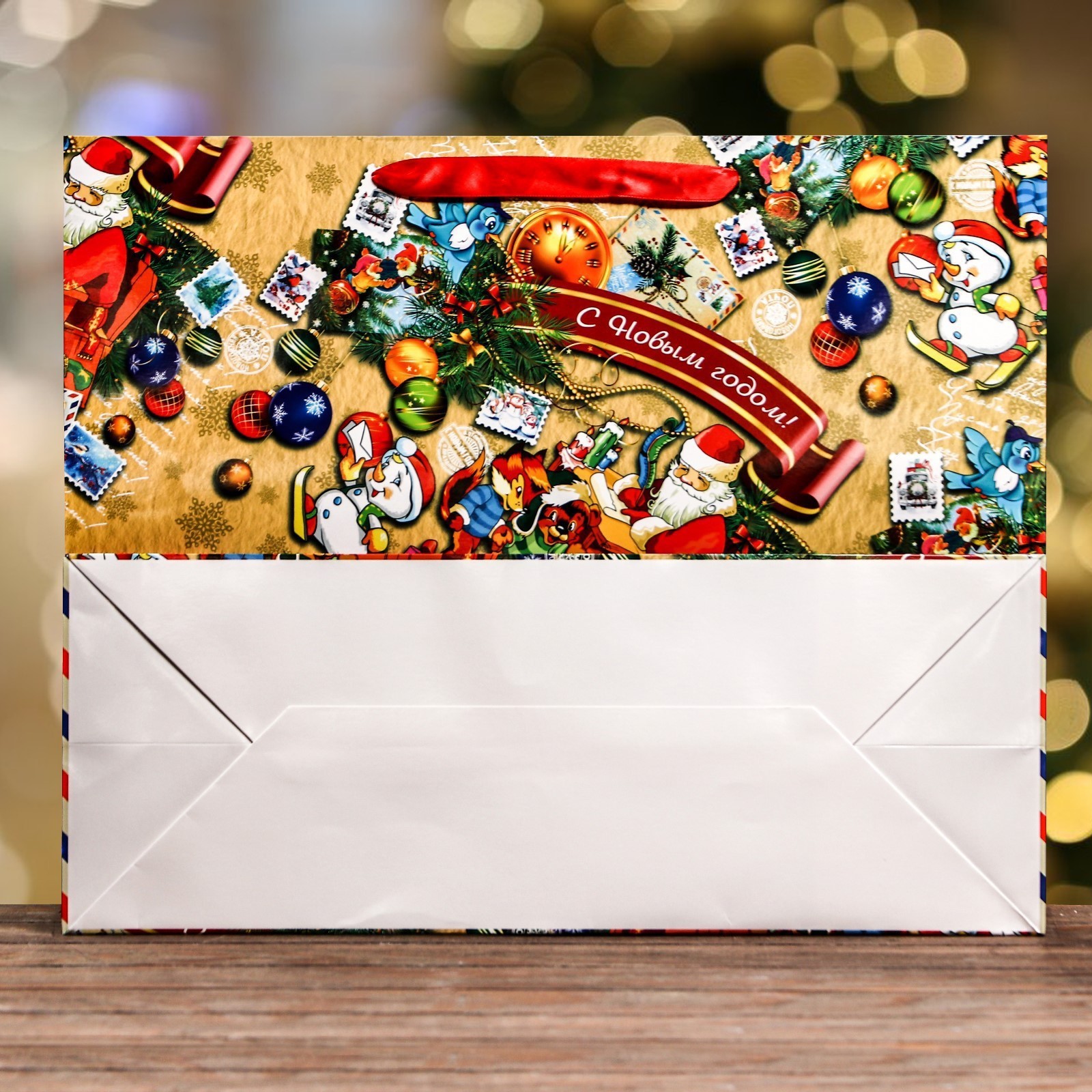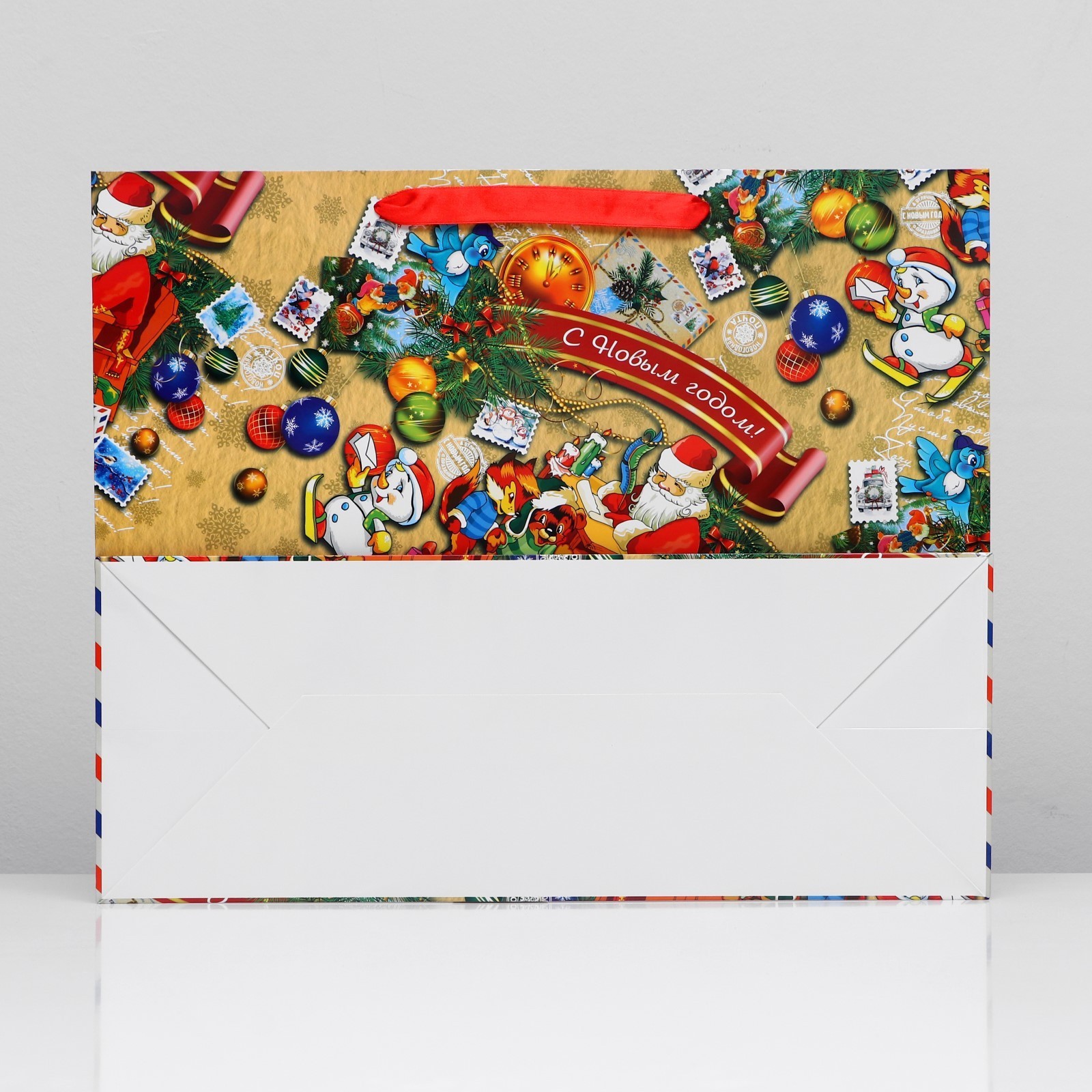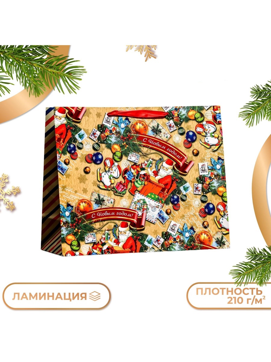 Пакет подарочный новогодний ламинированный горизонтальный «с новым годом», 49 40 19 см. Стильный новогодний пакет с ламинацией используют как упаковку для подарка. Благодаря своему оригинальному дизайну и привлекательному внешнему виду он создаст праздничное настроение получателю и не оставит его равнодушным. Пакет практически не подвергается влиянию влаги, способен выдерживать в несколько раз больший вес, чем пакеты без ламинации. Цвет:Разноцветный|Для кого:Унисекс|Плотность, г/м :210|Тематика:Рождественская|Тематика:Новогодняя|Символ года:Нет|Тематика праздника:Новый год|Тематика праздника:Рождество|Материал:Бумага|Отделка пакета:Ламинация|Расширение:Боковая складка|Вид ручки:Ручка-лента|Форма пакета:Горизонтальный|Особенности:Под парфюмерию|Особенности:Креативный|Страна:Китай  развернуть описание ▼