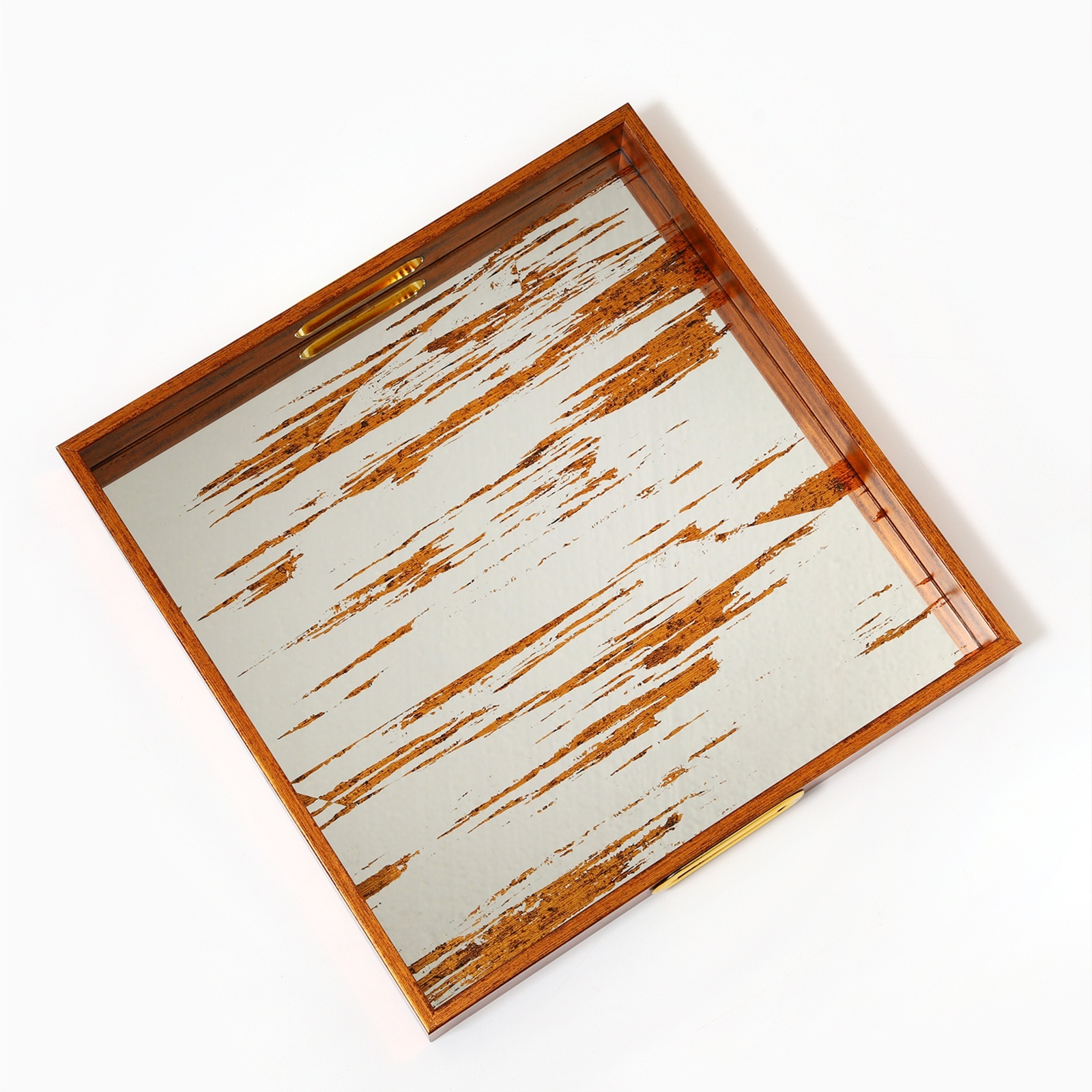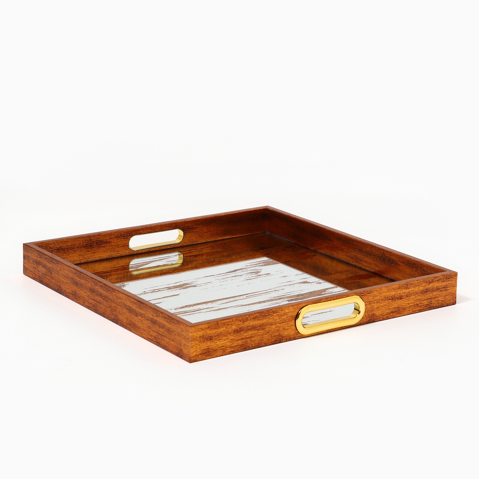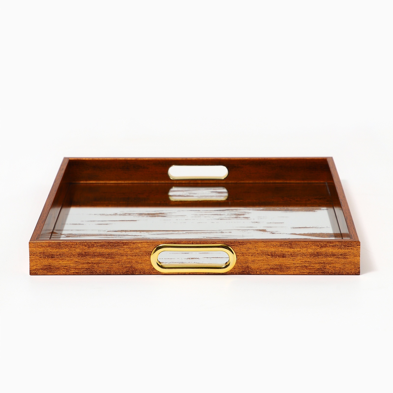 Поднос пластиковый прямоугольный с зеркалом «штрихи», 34 х 34 х 4,5 см сервировочный