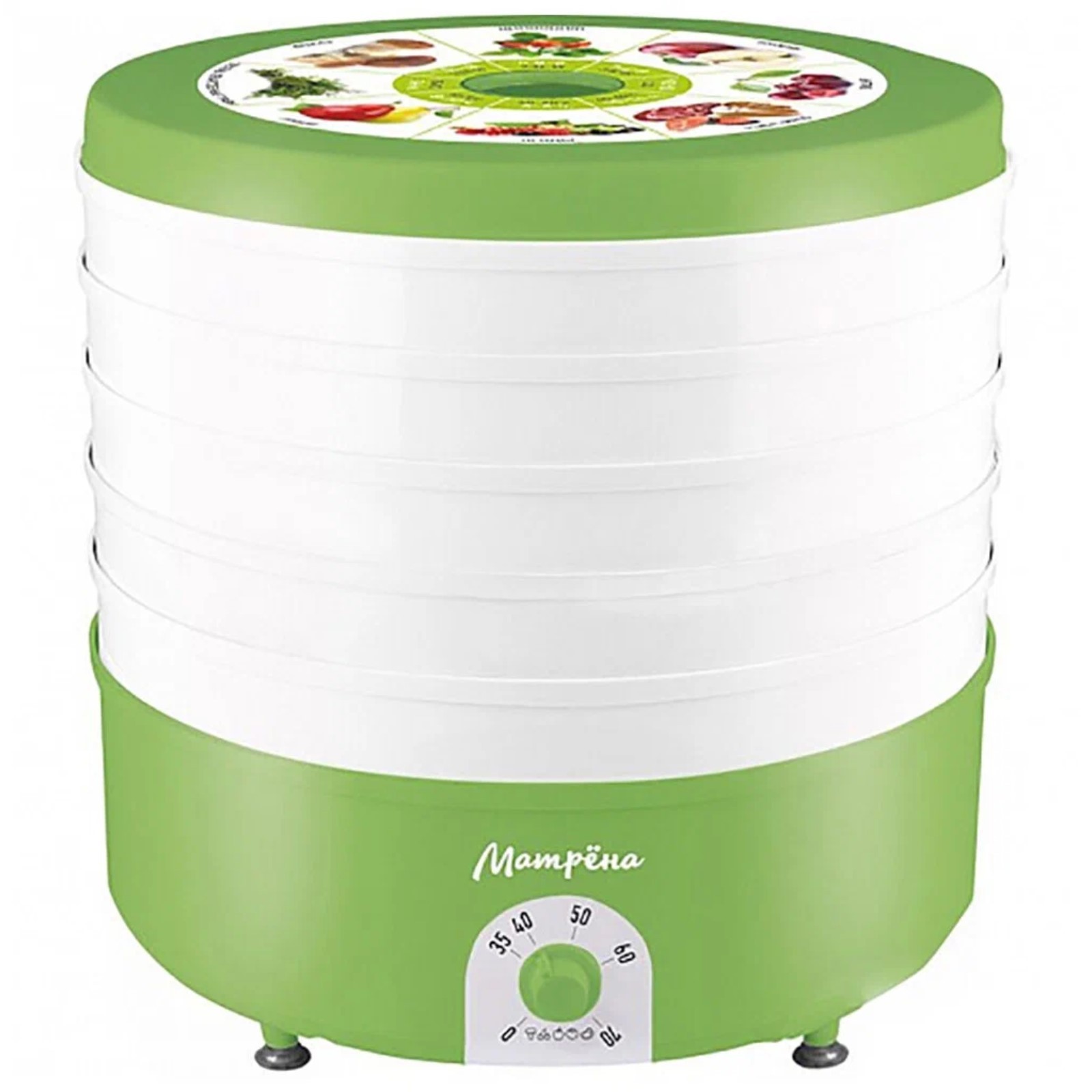 Сушилка для овощей и фруктов матрёна ма-019, 520 вт, 5 ярусов, бело-зелёная