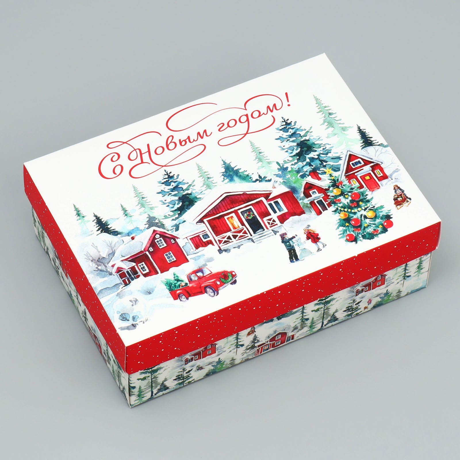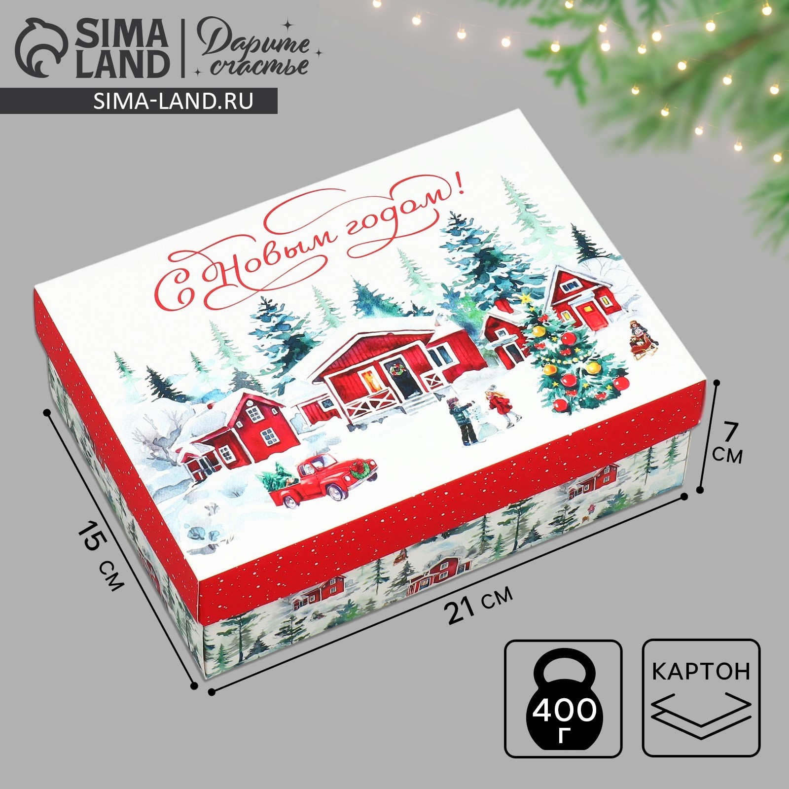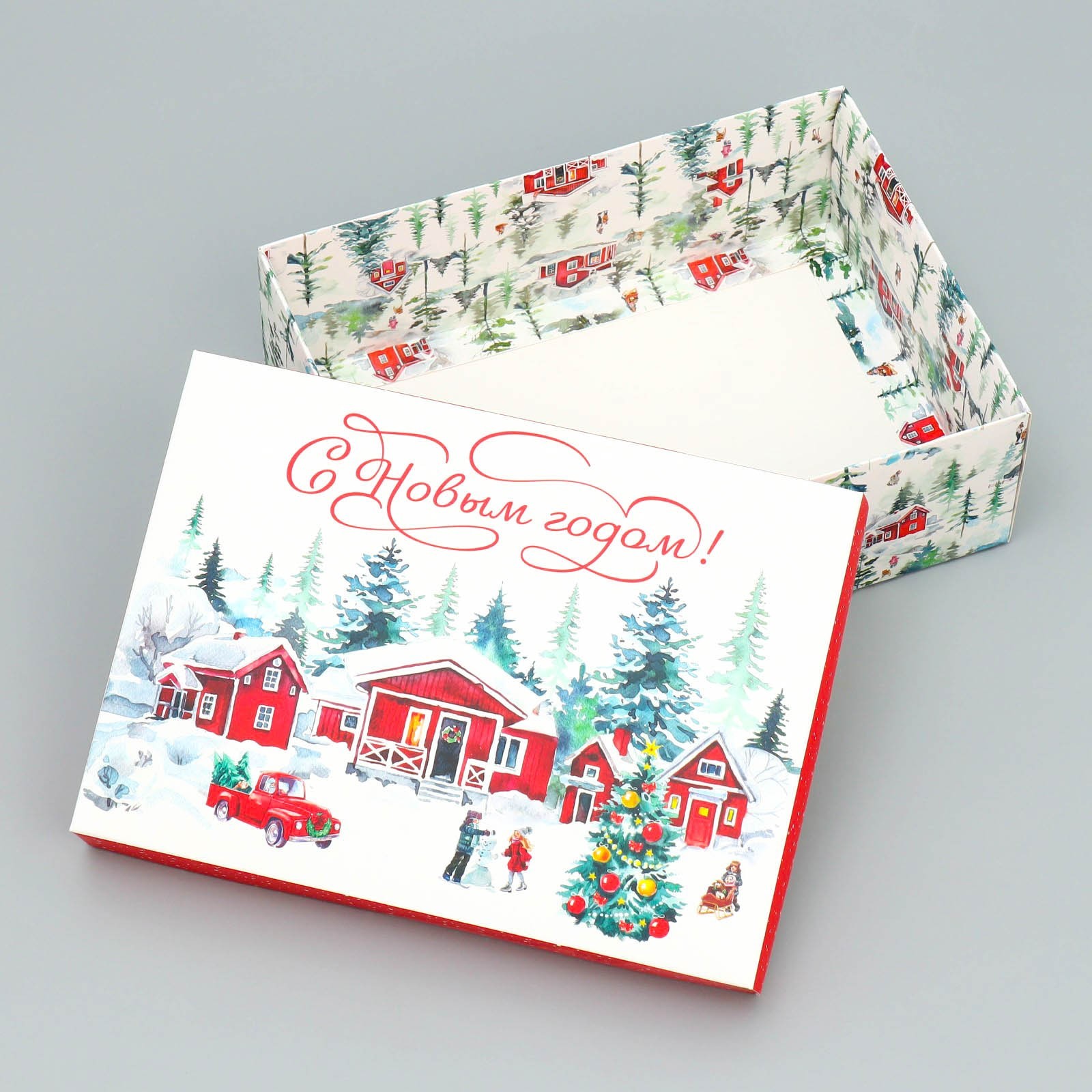 Коробка подарочная новогодняя складная «с новым годом!», 21 х 15 х 7 см. Цвет:Красный|Цвет:Белый|Форма:Прямоугольная|Плотность, г/м :250|Длина, см:21|Ширина, см:15|Высота, см:7|Допустимый вес вложения, г:400|Тематика:Новогодняя|Символ года:Нет|Тематика праздника:Новый год|Материал:Картон|Вид:Складные коробки|Размер:Средний (18-24 см)|Окошко:Нет|Крышка-дно:Да|Страна:Россия  развернуть описание ▼