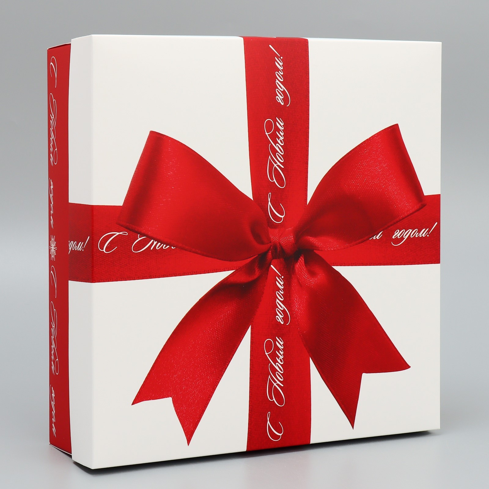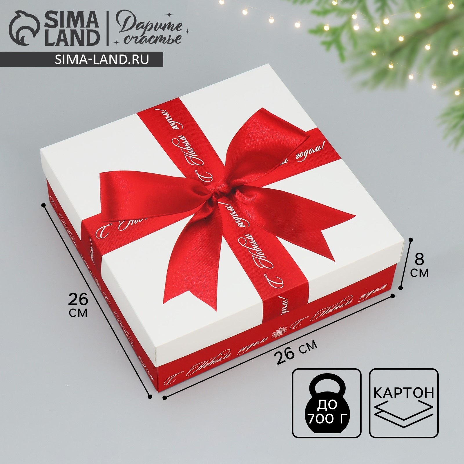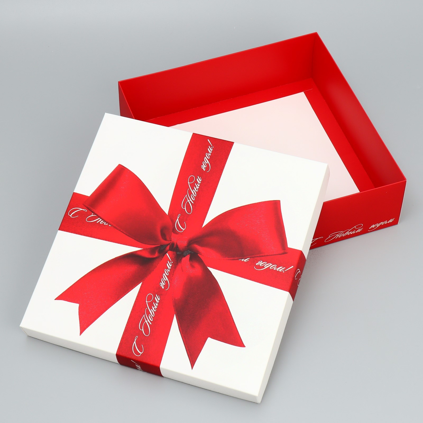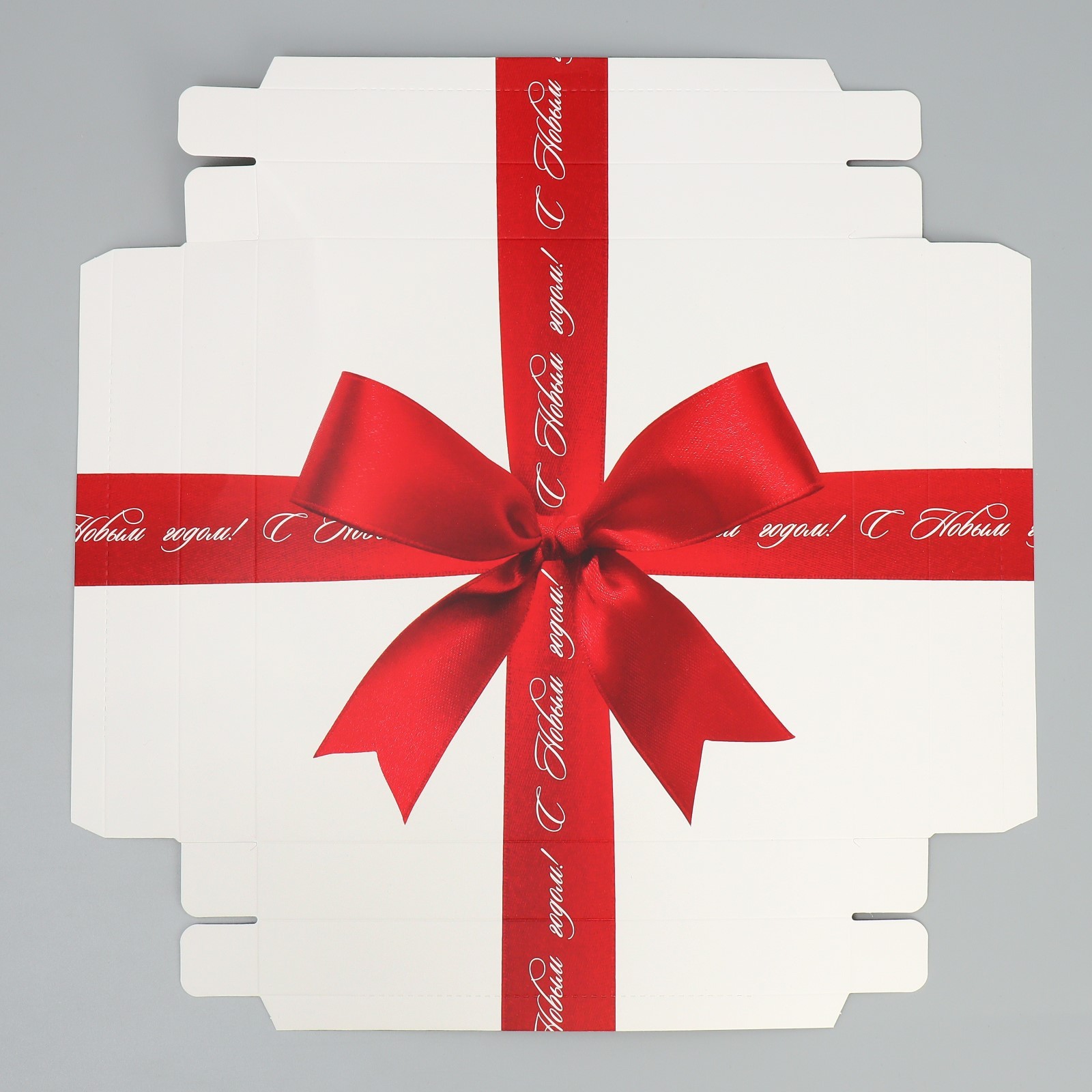 Коробка новогодняя складная «с новым годом!», 26 х 26 х 8 см. Цвет:Белый|Цвет:Красный|Форма:Квадратная|Плотность, г/м :250|Длина, см:26|Ширина, см:26|Высота, см:8|Допустимый вес вложения, г:700|Тематика:Новогодняя|Символ года:Нет|Тематика праздника:Новый год|Материал:Картон|Вид:Складные коробки|Размер:Большой (25-45 см)|Окошко:Нет|Крышка-дно:Да|Страна:Китай  развернуть описание ▼