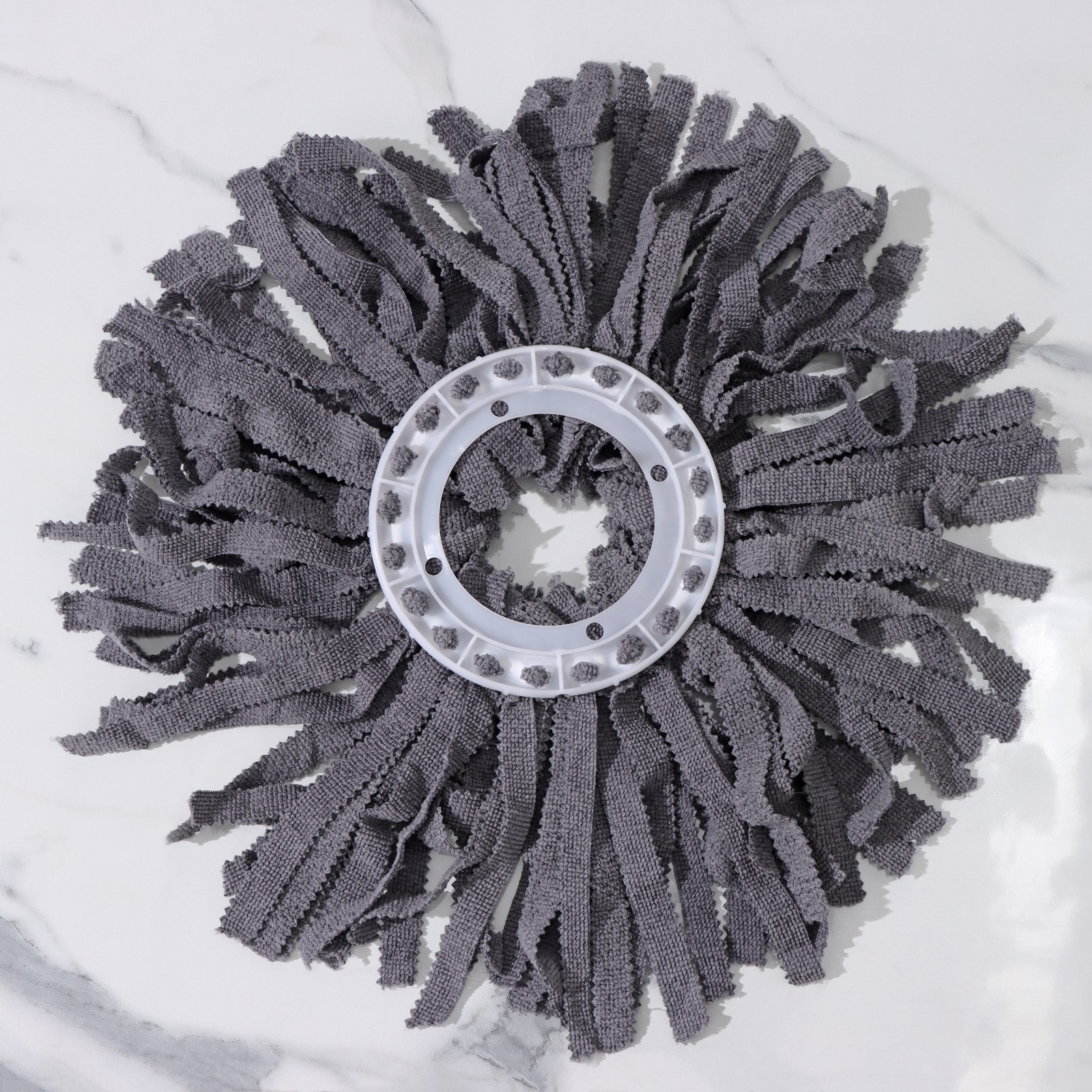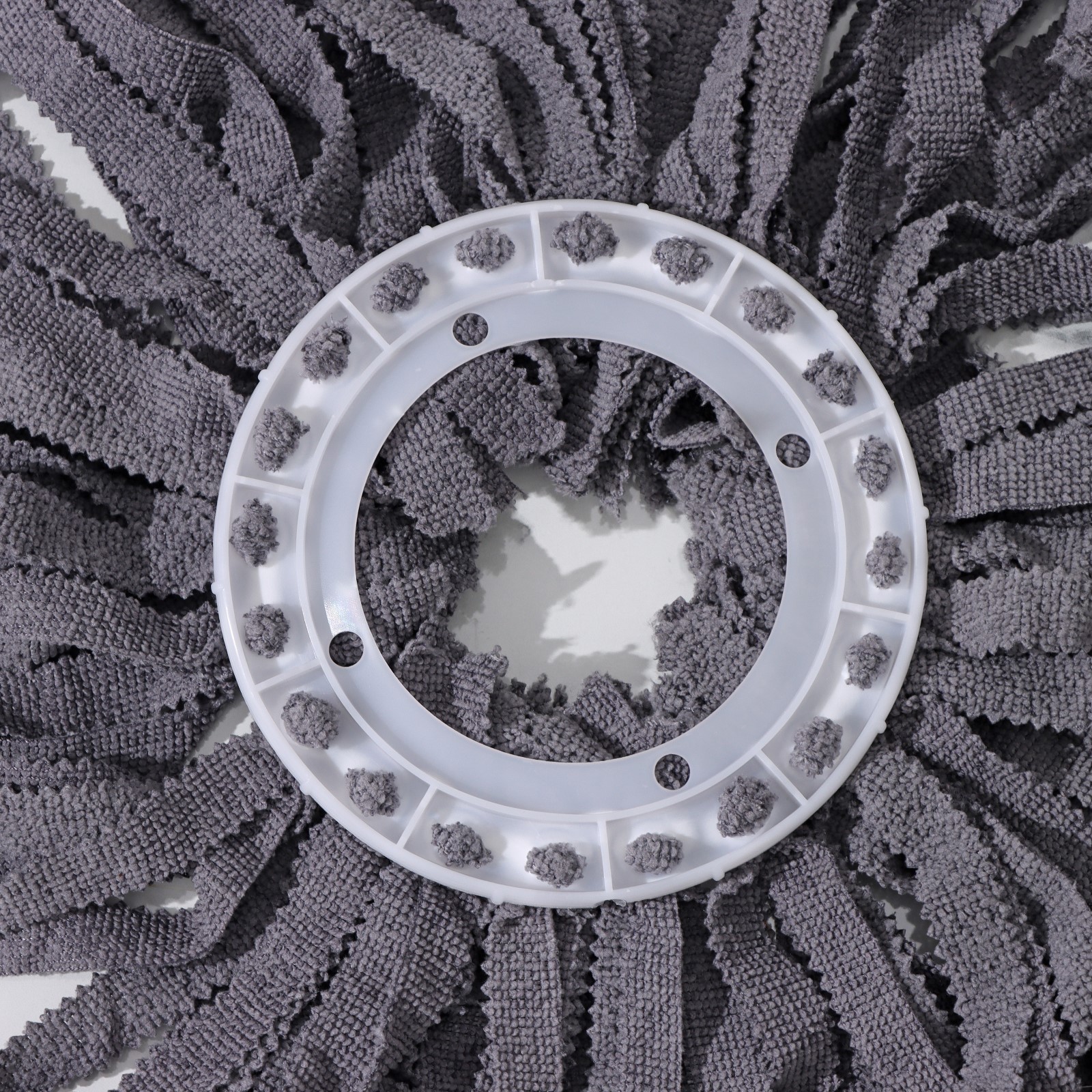 Насадка для швабры (наборы для уборки с центрифугой), кольцо 16 см, микрофибра, цвет серый. Насадка из микрофибры отлично подходит для мытья всех видов напольных покрытий: линолеума, ламината, паркета, кафельной плитки, мрамора. Она не царапает поверхность и отлично впитывает воду. Преимущества насадки: Не оставляет после себя волокон;Обладает антистатическим эффектом;не скатывается;Впитывает гораздо больше воды, чем обычная ткань;быстро высыхает после стирки;Подходит для сухой и влажной уборки. За счёт своих нитей микрофибра имеет преимущество перед любыми другими натуральными или искусственными материалами. Например, она легко убирает маслянистые и жирные вещества с пола без использования дополнительных чистящих средств. Изделие крепится на липучке. Цвет: Серый Длина, см: 16 Ширина, см: 16 Комплектующие для швабр: Насадка МОП для швабры Материал: Микрофибра Тип крепления: Зажим для губки  развернуть описание ▼