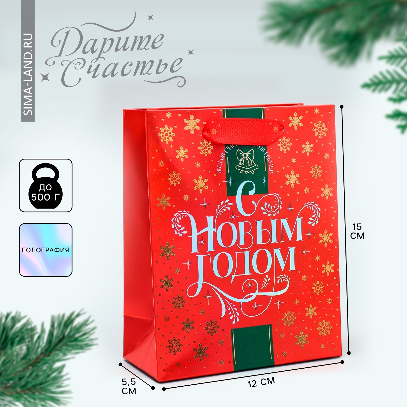 Пакет подарочный новогодний ламинированный «с новым годом!», s 12 х 15 х 5.5 см. Цвет:Красный|Для кого:Унисекс|Плотность, г/м :157|Тематика:Новогодняя|Символ года:Нет|Тематика праздника:Новый год|Отделка пакета:Голография|Вид ручки:Ручка-лента|Страна:Китай  развернуть описание ▼