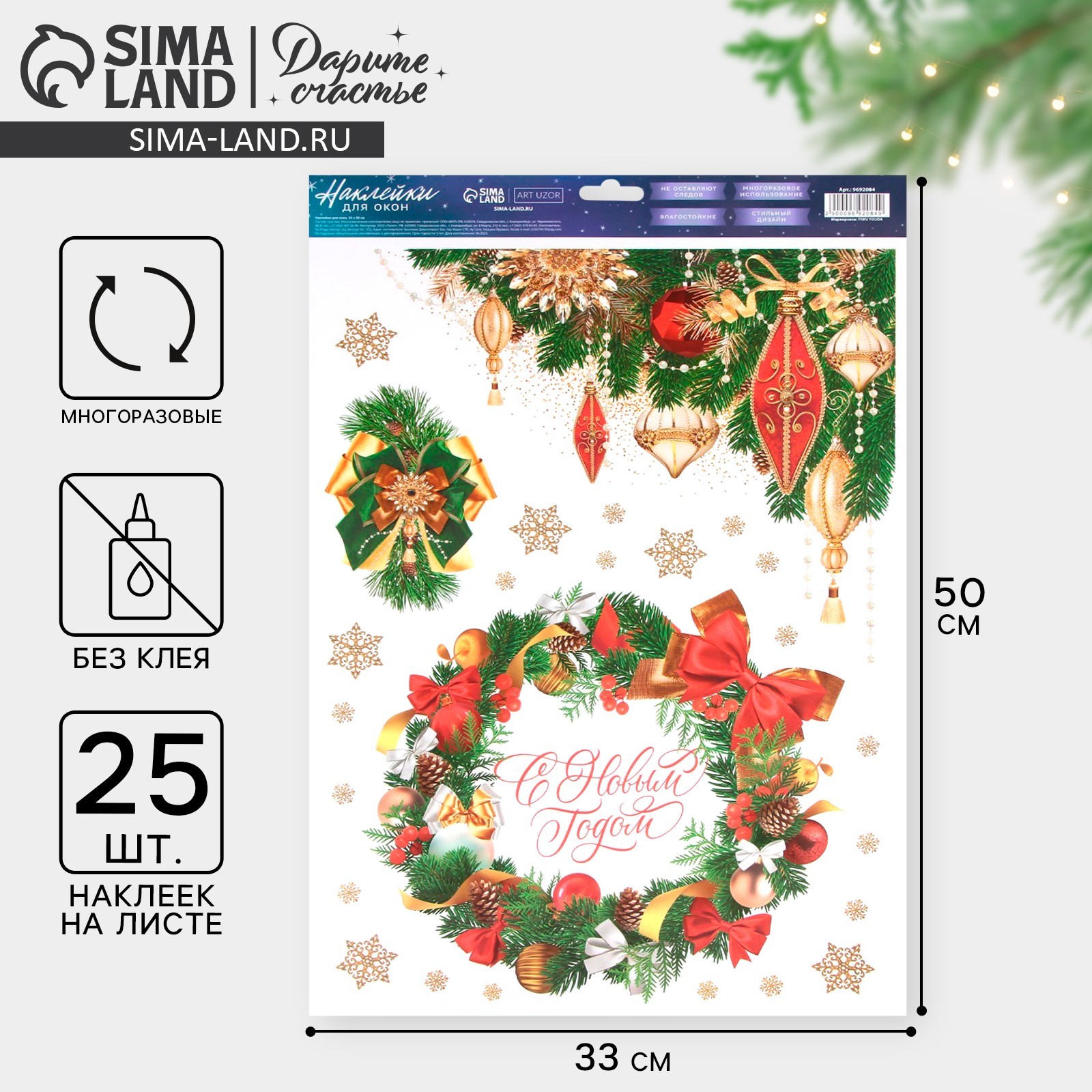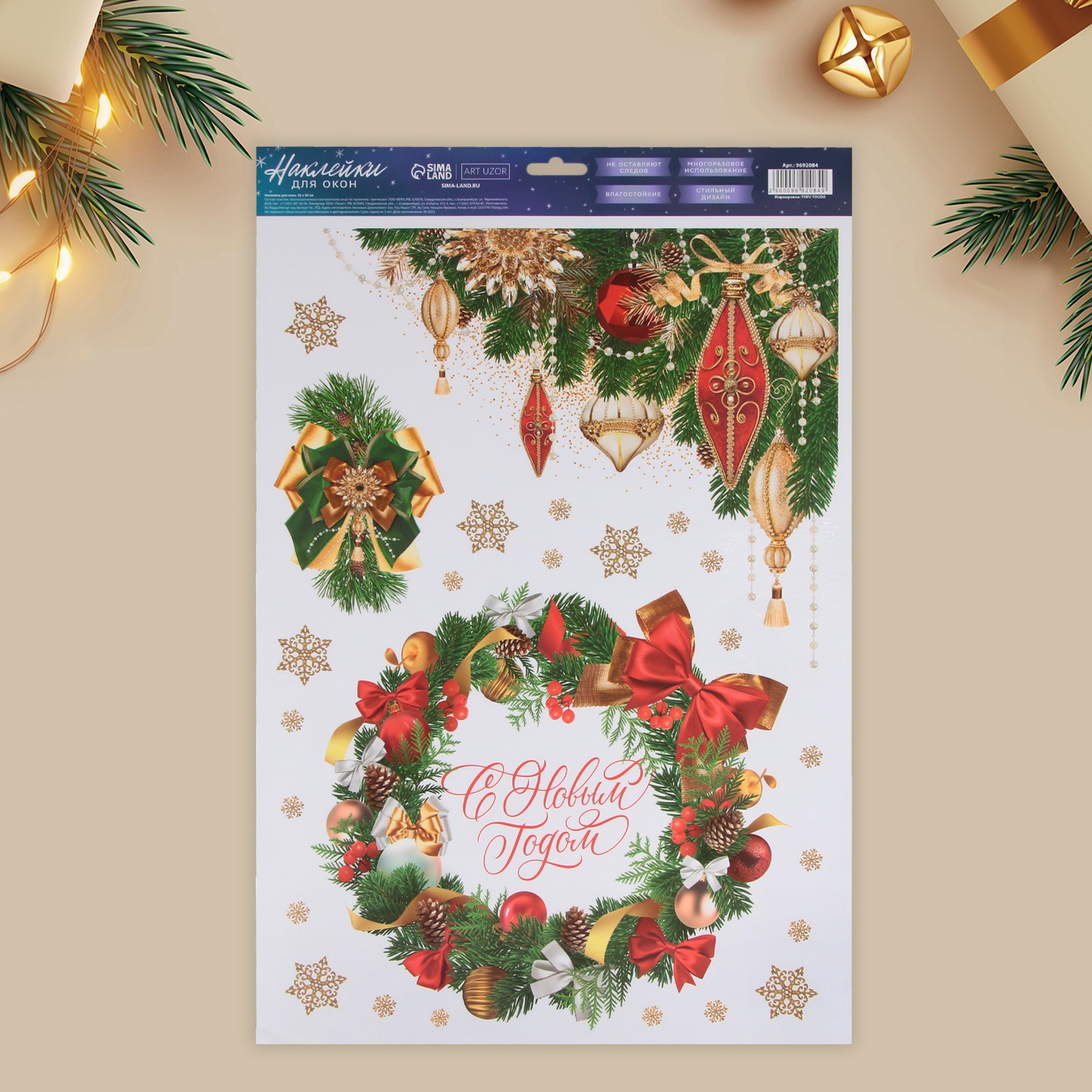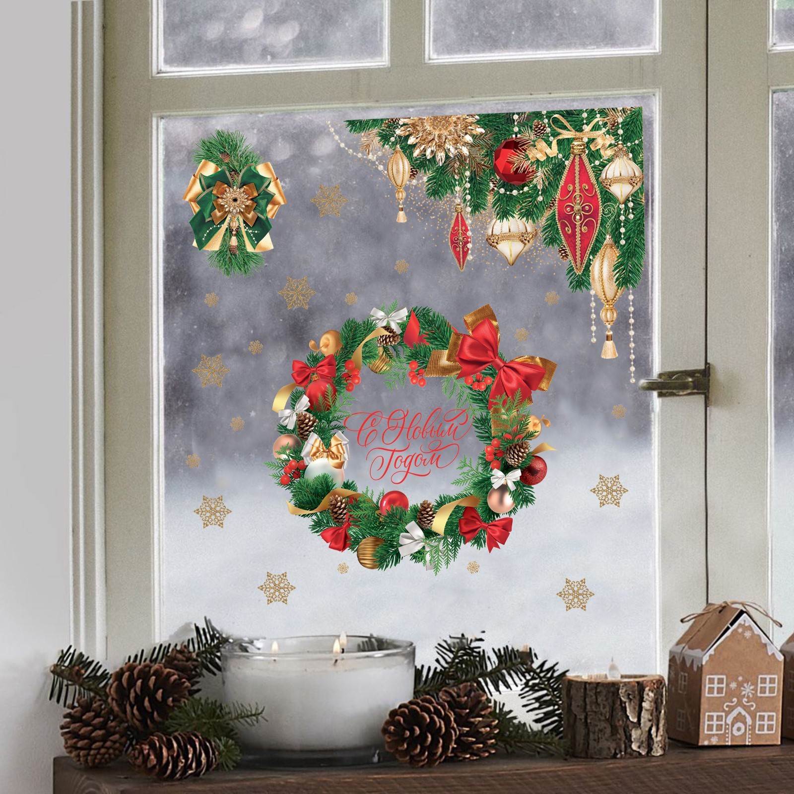 Наклейки на окна многоразовые «с новым годом», 33 х 50 см
