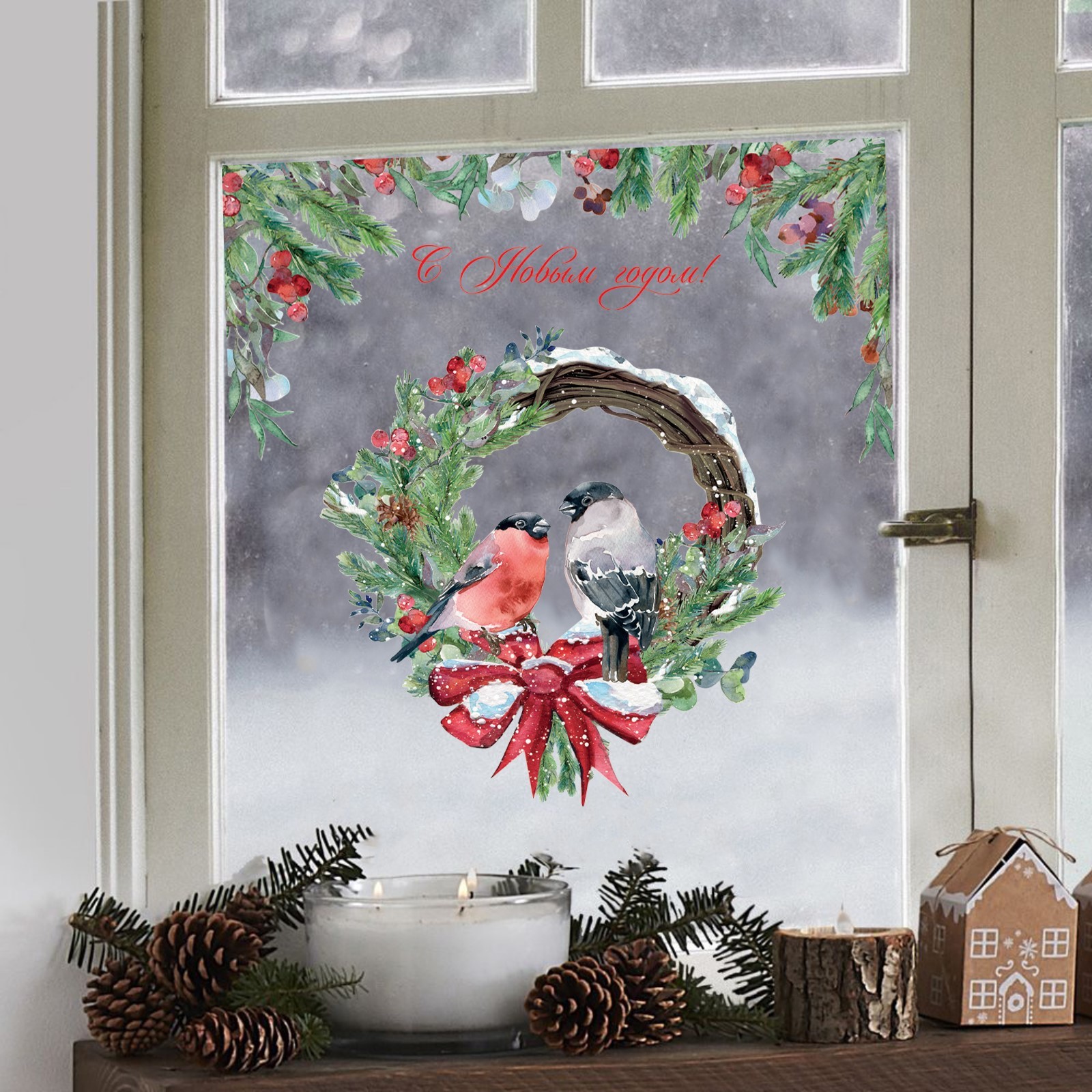 Наклейки на окна многоразовые «с новым годом», снегири, 33 х 50 см. Набор:Нет|Тематика:Новогодняя|Символ года:Нет|Тематика праздника:Новый год|Материал:Винил|Многоразовые:Да|Вид наклейки:Многоразовые|Вид наклейки:Для окон|Наклейка двухсторонняя:Нет|Страна:Китай  развернуть описание ▼