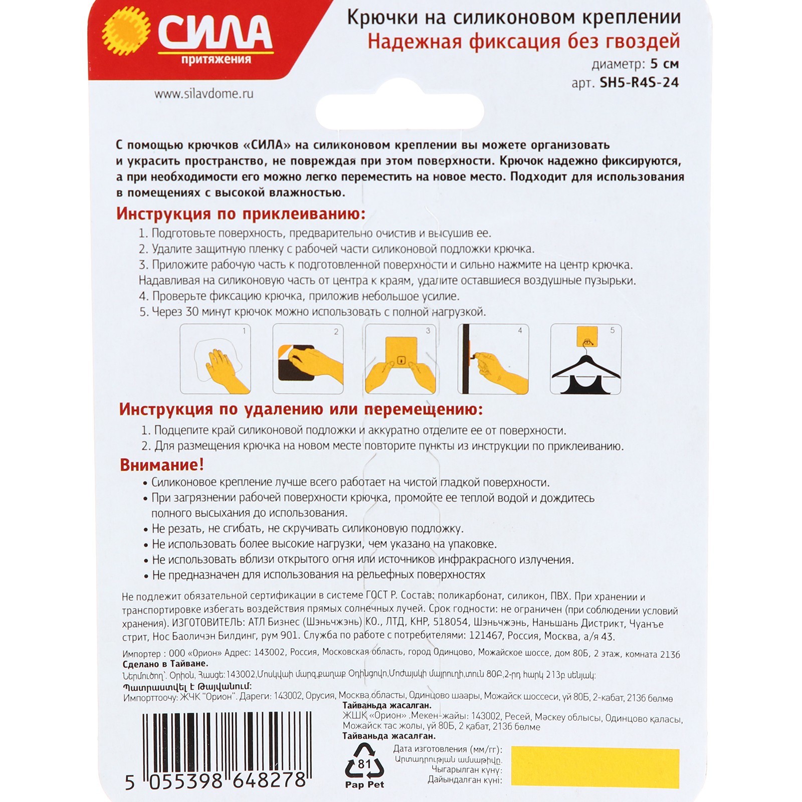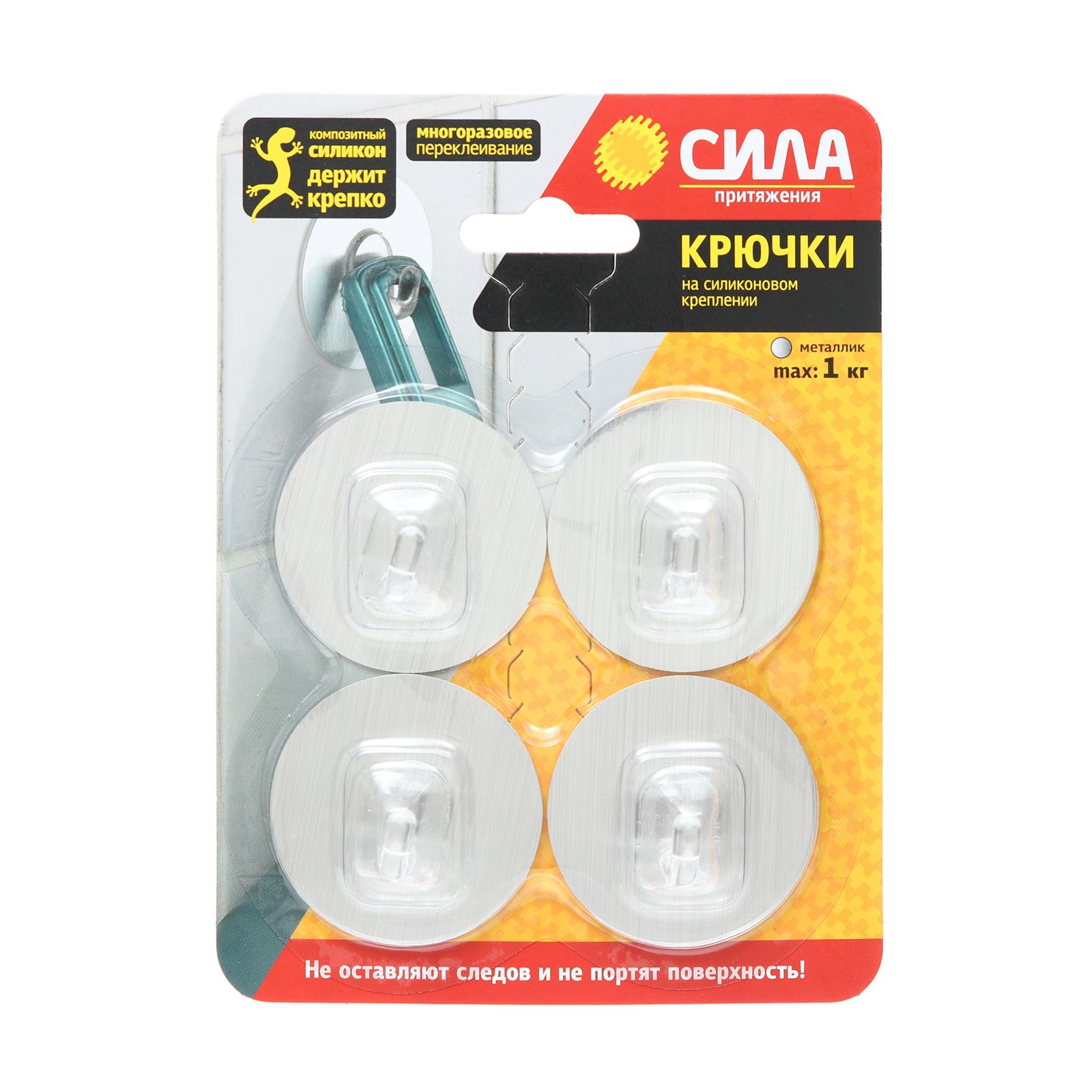 Крючки «сила притяжения» на силиконовом креплении, серебро, диаметр 5 см, 4 шт