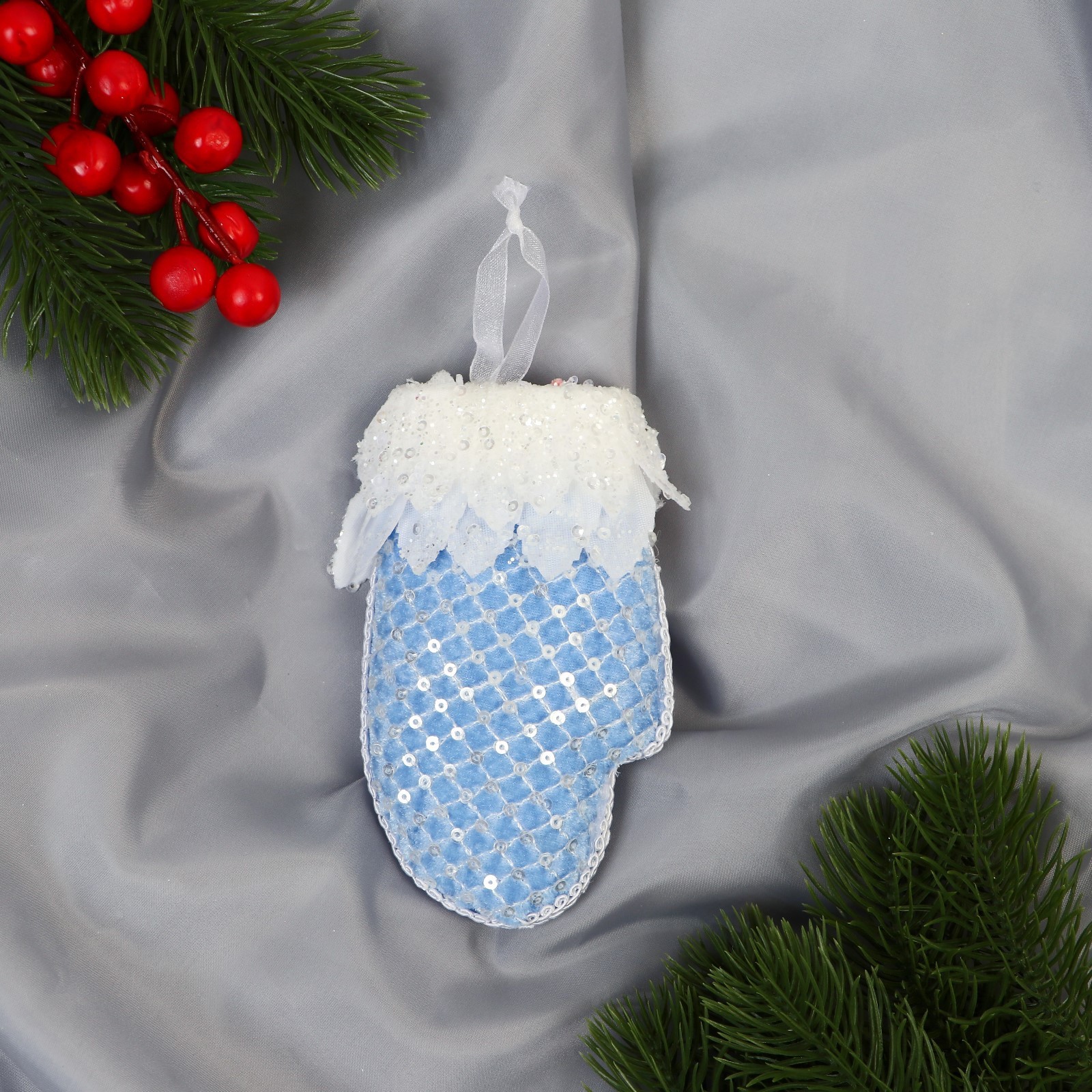 Ёлочная игрушка «рукавица элит» 7 12 см, бело-голубой