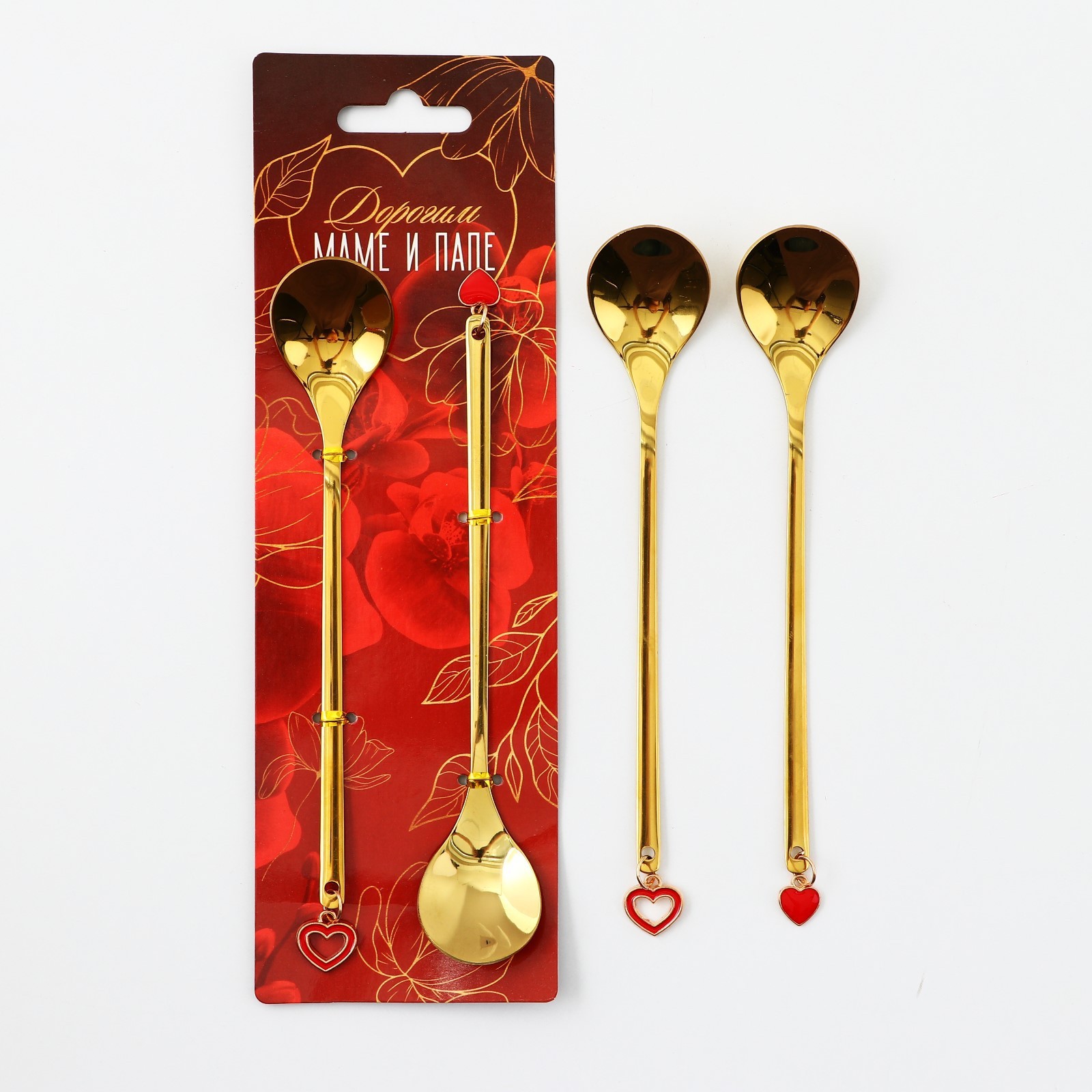 Подарочный набор ложек с подвесами "дорогим маме и папе", 2 шт., 15.8 х 2.5 см