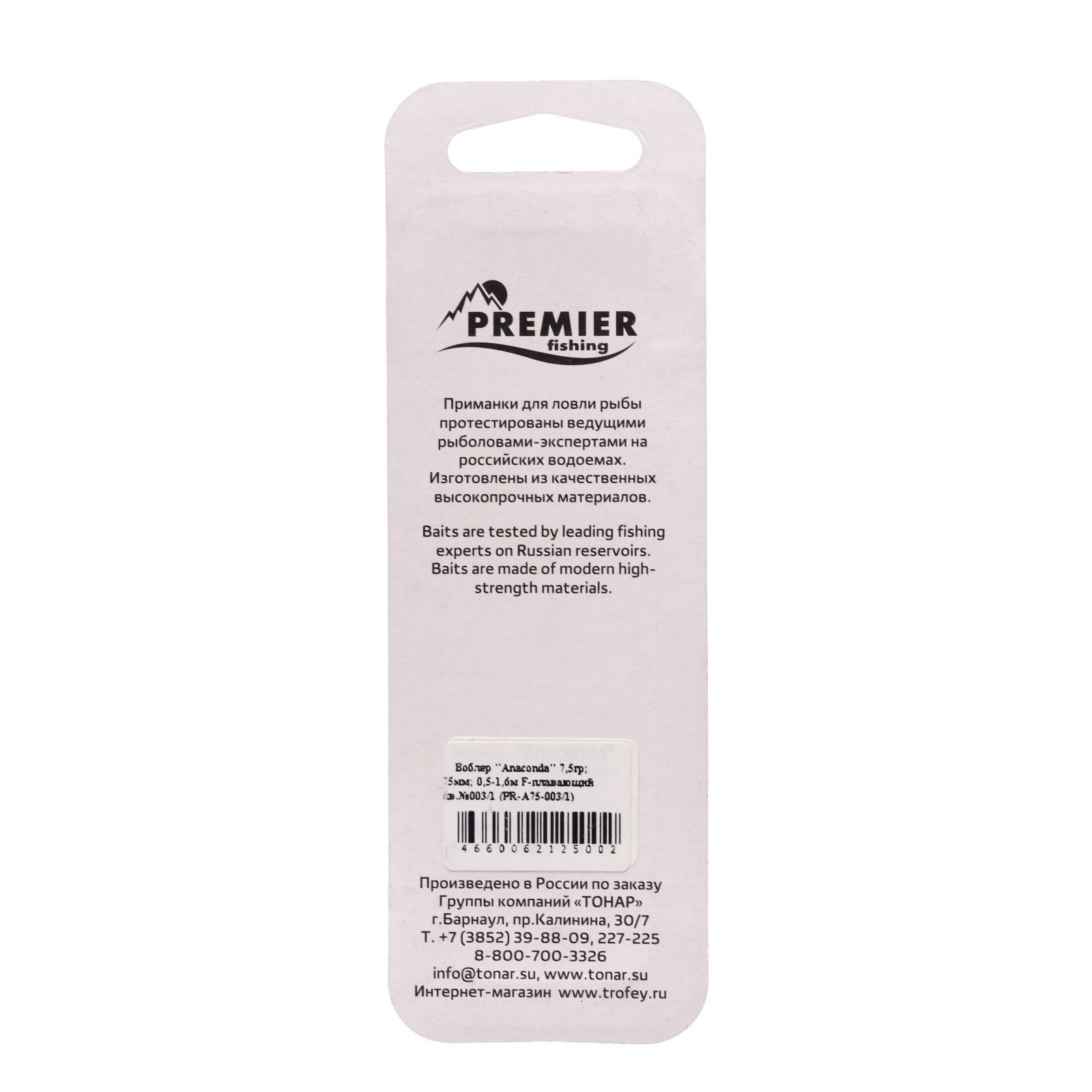 Воблер Premier Anaconda, 7.5 см, 7.5 г, шэд, плавающий (0.5-1.6 м), цвет 003/1 (pr-a75-003/1)