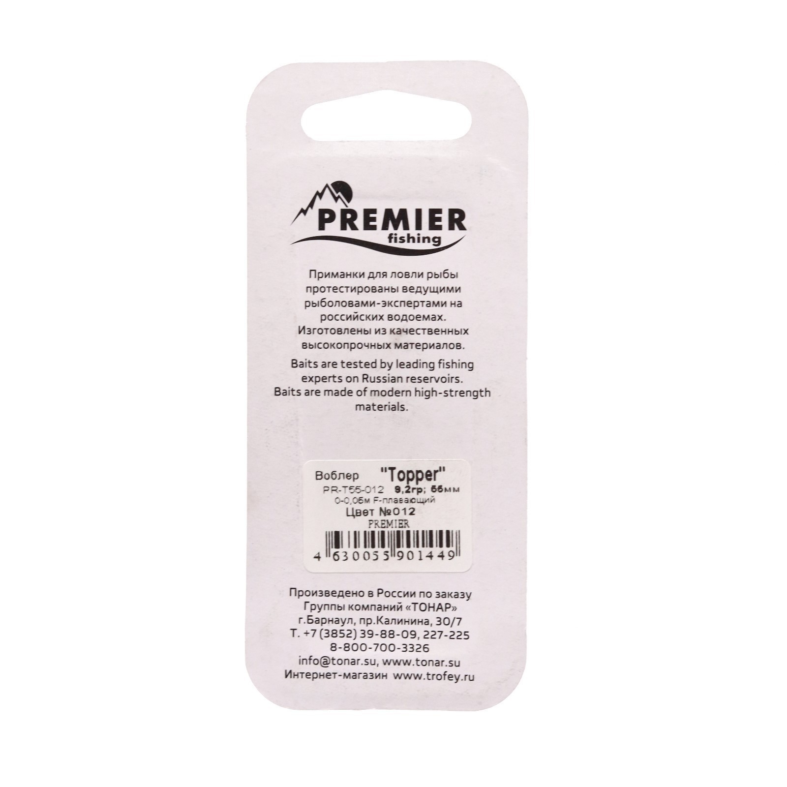 Воблер premier topper, 5.5 см, 9.2 г, шэд, плавающий (0-0.5 м), цвет 012 (pr-t55-012). Воблеры Premier Fishing - это приманки выполненные из специального высокопрочного пластика, что гарантирует их долговечность. Благодаря своей конструкции они имитируют в воде поведение больной рыбы, что неотразимо действует на хищника, провоцируя его на поклевку. Все расцветки воблеров Premier Fishing специально адаптированы для российских водоемов. По своей форме воблер "S-POP" похож на маленькую рыбку с открытым ртом, кормящуюся с поверхности. А за счет такой формы при анимации воблера издается характерный булькающий звук. Характеристики:> Бренд: Premier FishingСерия: S-POPВес воблера, гр. : 12, 1Длина, мм. : 82Плавучесть: ПлавающийФорма: ПопперЗаглубление, м. : 0Цвет: 012 Цвет: Зелёный Цвет: Золотистый Вес, г: 9.2 Тип приманки: Воблер Материал: Пластик Температурное ограничение: Нет Заглубление, м: 0.05 Тип плавучести: Плавающий Форма воблера: Шэд  развернуть описание ▼
