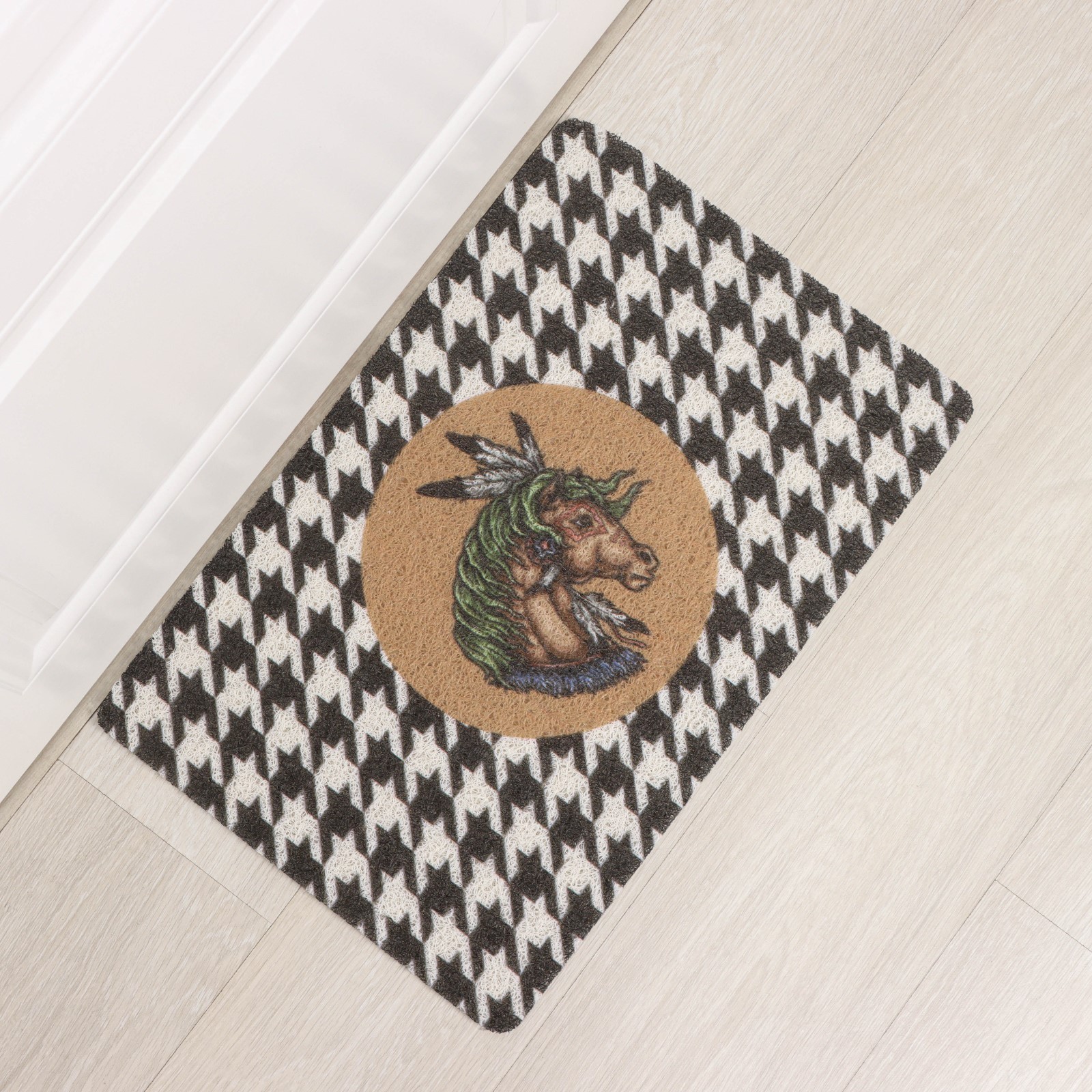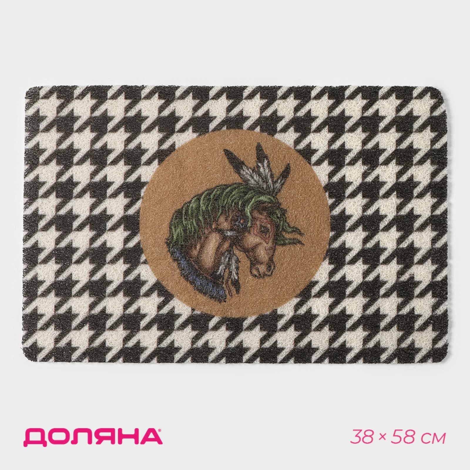 Коврик придверный доляна «айдахо», 38x58 см. Придверные коврики станут отличным акцентом, создающим тепло и уют, ведь стоять на мягком, тёплом покрытии гораздо приятнее, чем на холодном полу. Преимущества: Коврик обладает высокой устойчивостью к образованию пятен, быстро сохнет и прекрасно впитывает влагу. Уход: Рекомендована ручная стирка. Коврик легко чистить и мыть, главное, не применять спирто и хлорсодержащие моющие средства. Цвет: Чёрный Форма: Прямоугольная Длина, см: 58 Ширина, см: 38 tnved: 3924900009 Тематика: Животный мир Материал: ПВХ Вид покрытия коврика: Пластиковое покрытие Форма: Прямоугольник  развернуть описание ▼