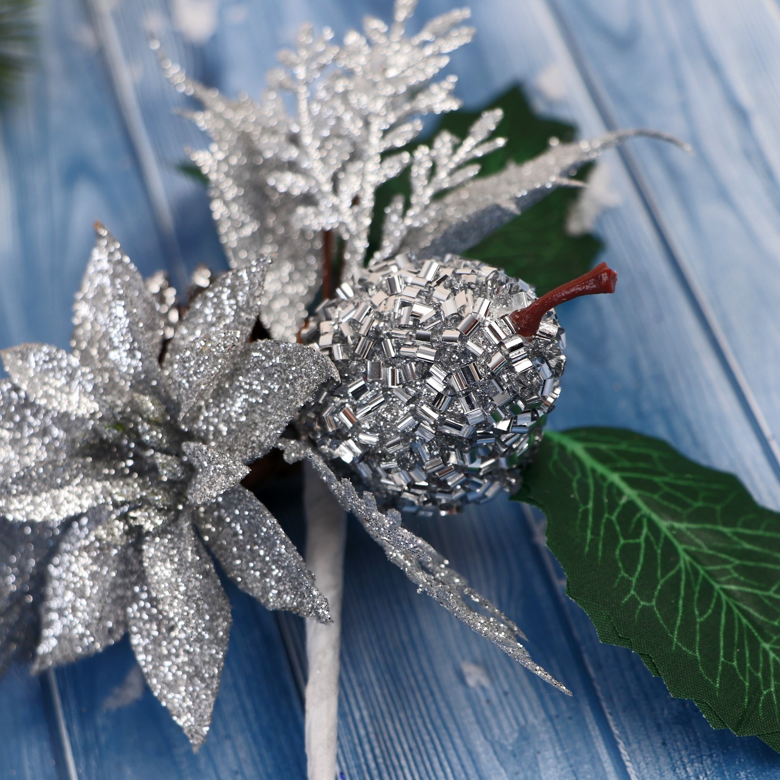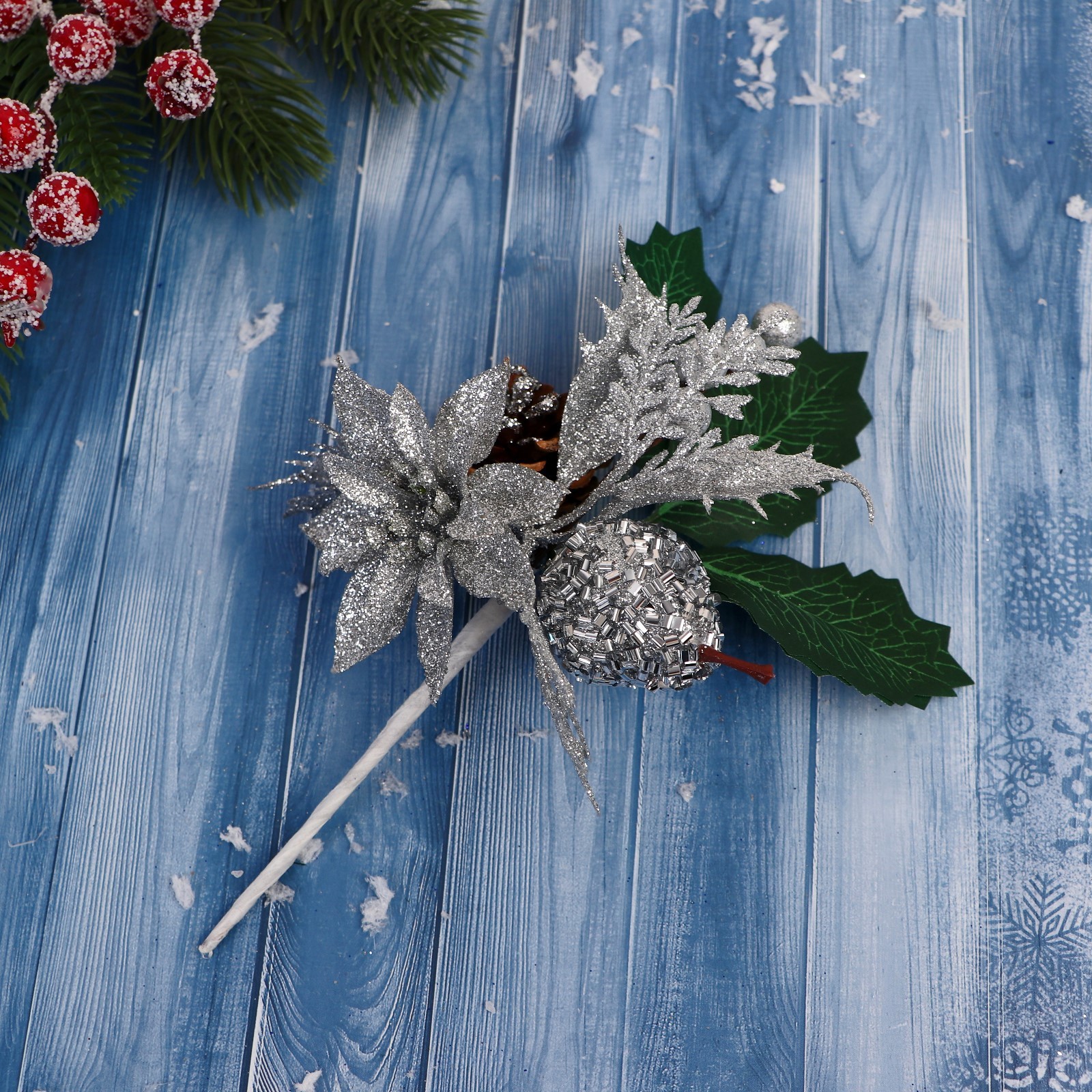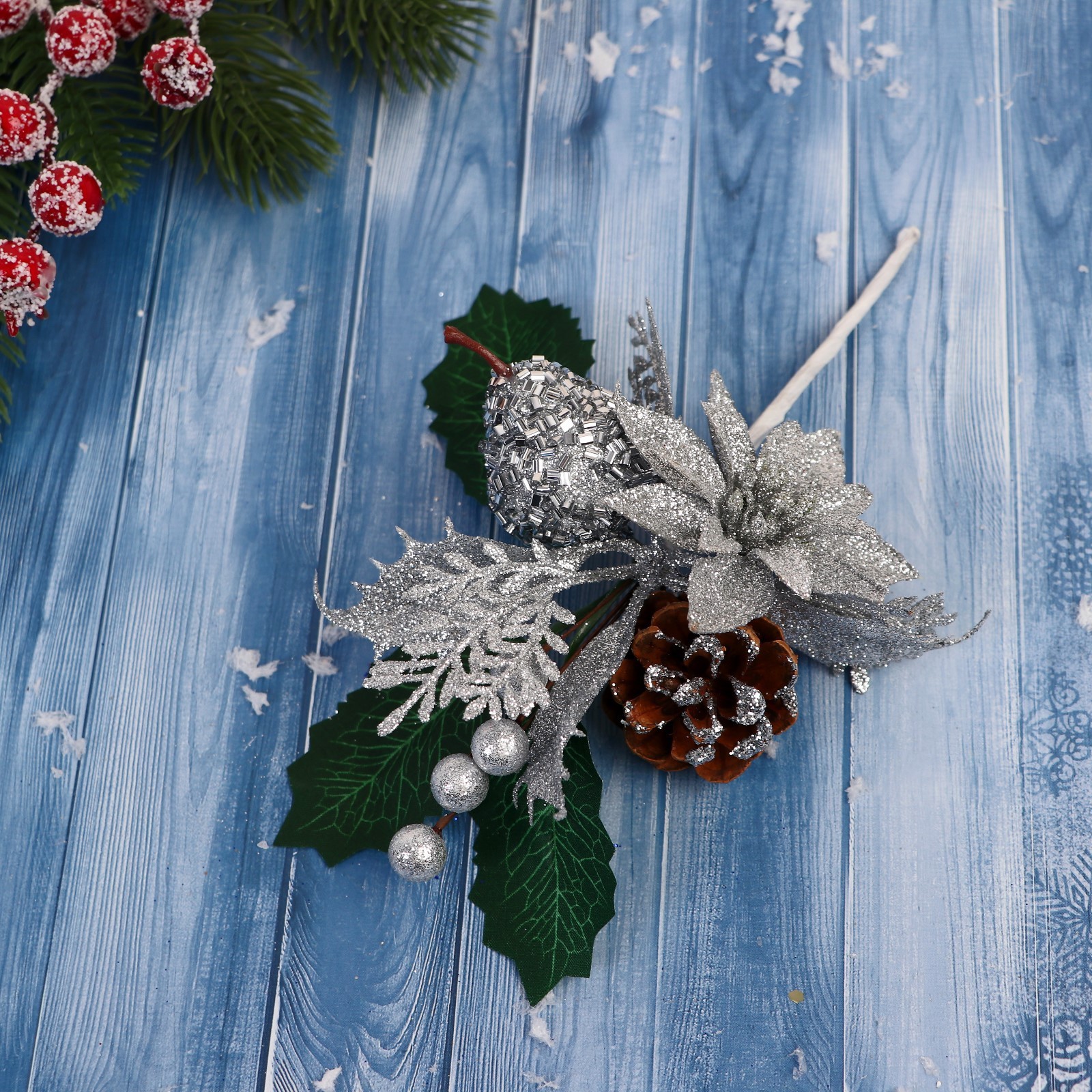 Еловая ветка декоративная «зимнее волшебство. грёзы», с цветком, 16 см. Декоративная новогодняя ветка с цветком в стиле «Зимнее волшебство. Грёзы» выполнена из дерева, пластика и текстиля, что создает эффект нежности и изящества. Высотой 16 см, она станет стильным дополнением зимнего декора, придавая интерьеру атмосферу сказочного уюта и праздничного настроения. Эта ветка с цветком идеально подходит для оформления стен, окон или зимних композиций, добавляя яркий акцент в новогодний дизайн. Особенности Размер – 16 см, подходит для украшения различных элементов интерьера.Цвет – серебристый, символизирующий зимнюю свежесть и элегантность.Материал – сочетание дерева, пластика и текстиля обеспечивает реалистичный внешний вид и долговечность.Стиль – композиция с элементами зимней природы и цветком для создания праздничной атмосферы.Тематика – Новый год и зимние праздники, вызывающие ощущение волшебства и уюта.Преимущества использования Добавляет изысканный акцент в любой интерьер благодаря серебристому цвету и натуральным материалам.Легко сочетается с другими новогодними украшениями: гирляндами, снежинками, свечами.Многофункциональна: подходит для украшения стен, столов или создания зимних композиций на полках.Эта ветка с цветком станет центром внимания в вашем праздничном декоре. Ее аккуратный дизайн и материалы помогают создать атмосферу сказочного уюта. Простая в использовании и долговечная, она украсит ваш дом или офис на долгие годы, радуя глаз в каждый зимний сезон. Цвет:Серебристый|Высота, см:16|Символ года:Нет|Тематика праздника:Новый год|Материал:Дерево|Материал:Текстиль|Материал:Пластик|Стиль:Шебби-шик|Стиль:Датский|Стиль:Классика|Страна:Китай  развернуть описание ▼
