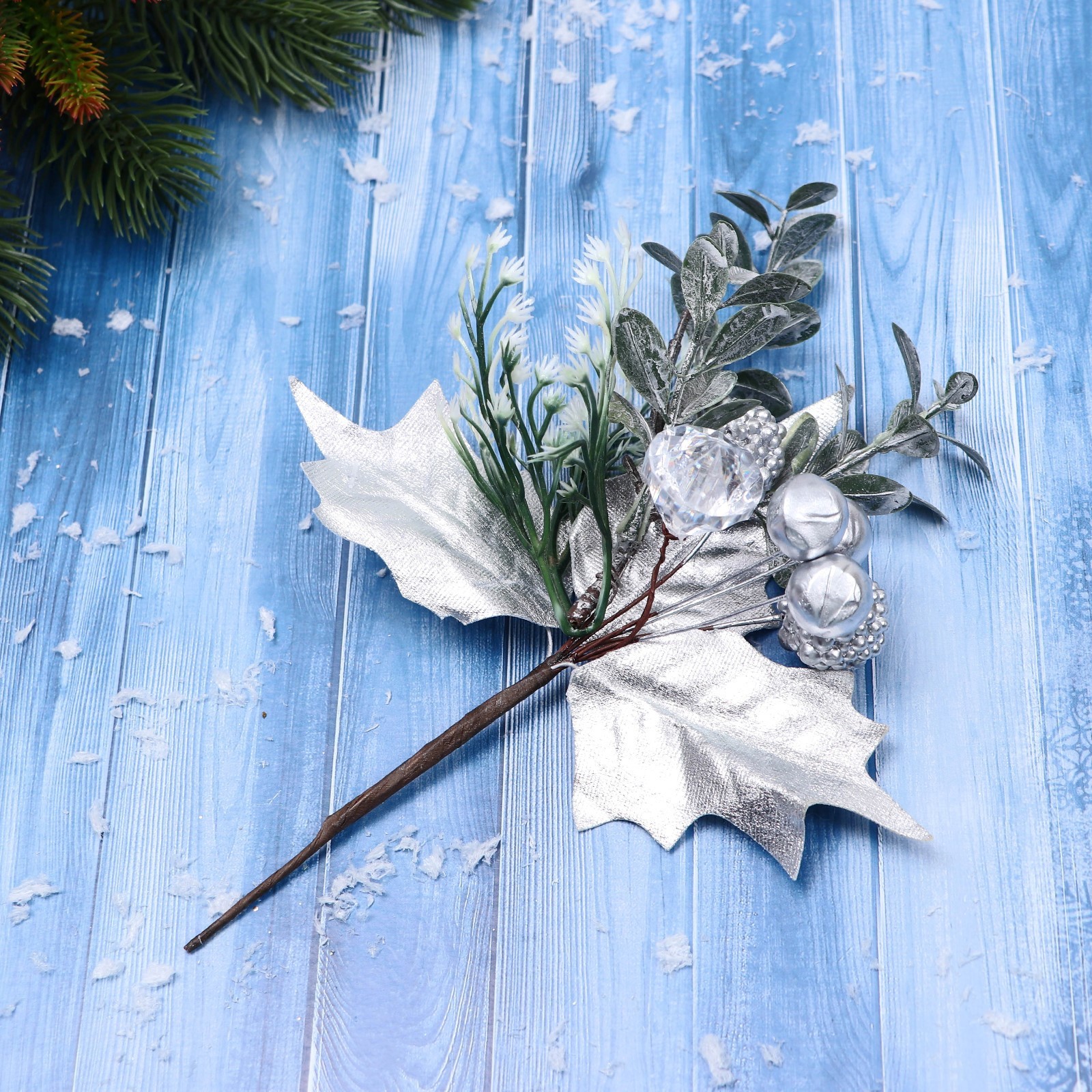Добавляет серебристый акцент в интерьер благодаря качественным материалам.Легко сочетается с другими новогодними украшениями: гирляндами, снежинками, свечами.Многофункциональна: подходит для украшения стен, столов или создания зимних композиций на полках.Эта ветка с композициями станет ярким дополнением вашего праздничного декора. Ее аккуратный дизайн помогает создать атмосферу сказочного уюта. Простая в использовании и долговечная, она прослужит вам долгие годы, радуя глаз в каждый зимний сезон.