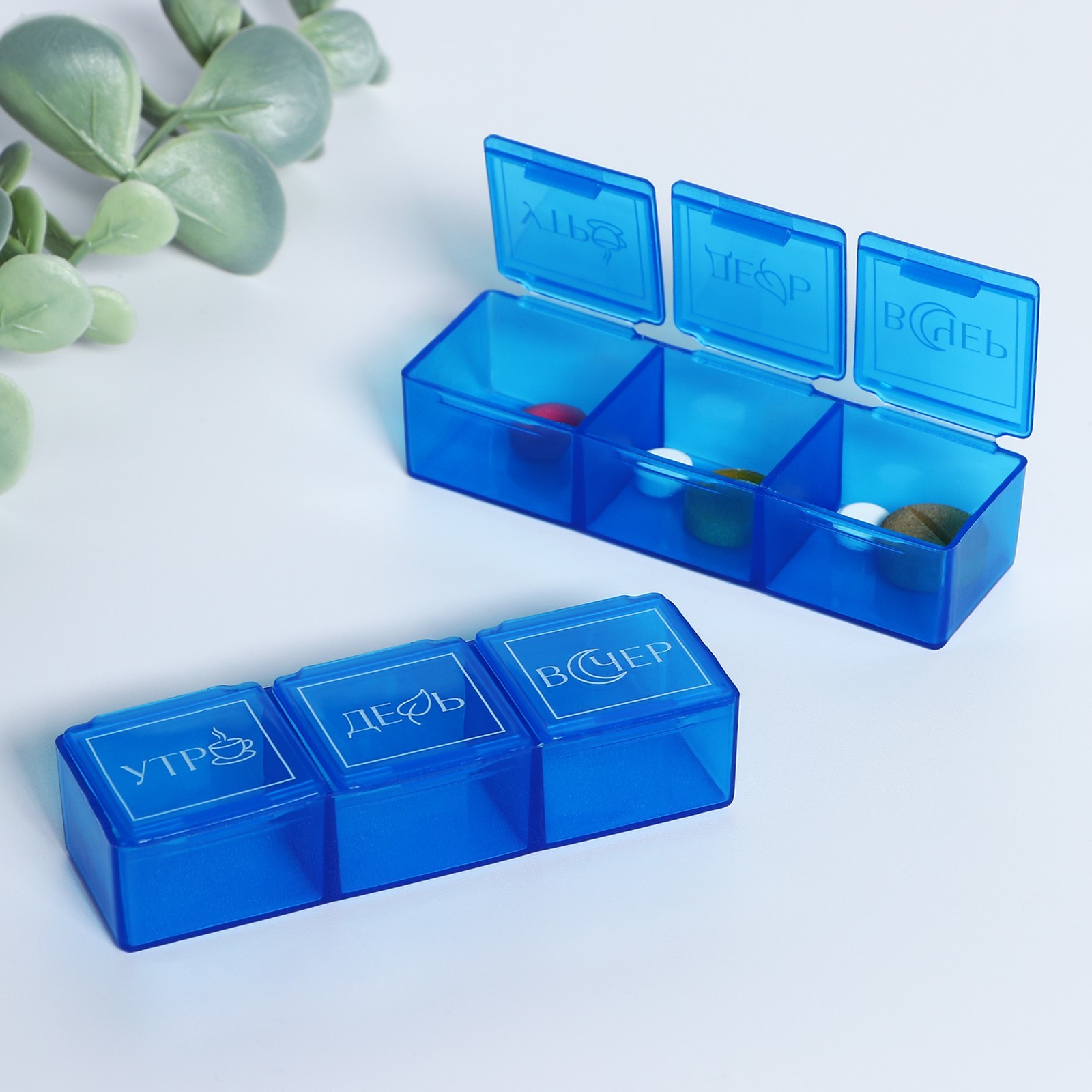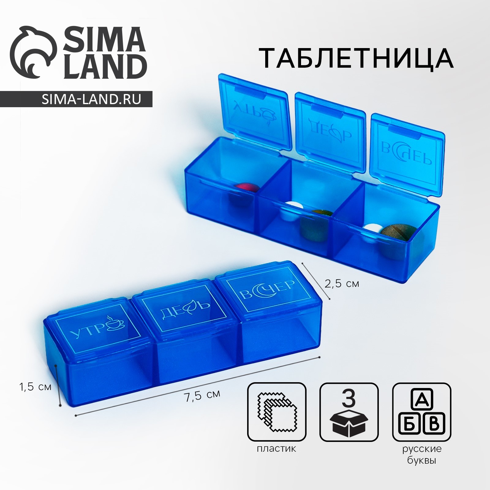 Таблетница «классика», 3 секции, синяя, 7,3 х 1,5 см