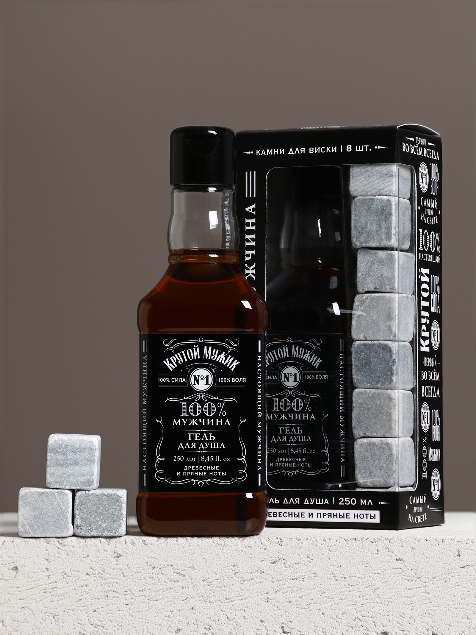 Подарочный набор «крутой мужик», гель для душа виски 250 мл и камни для виски 8 шт., чистое счастье.