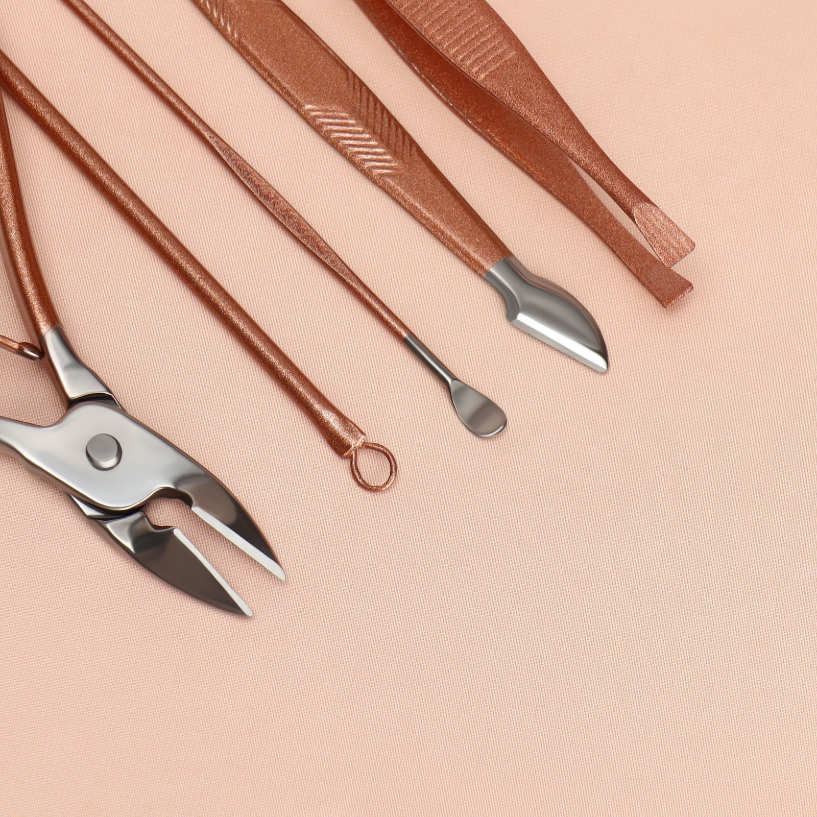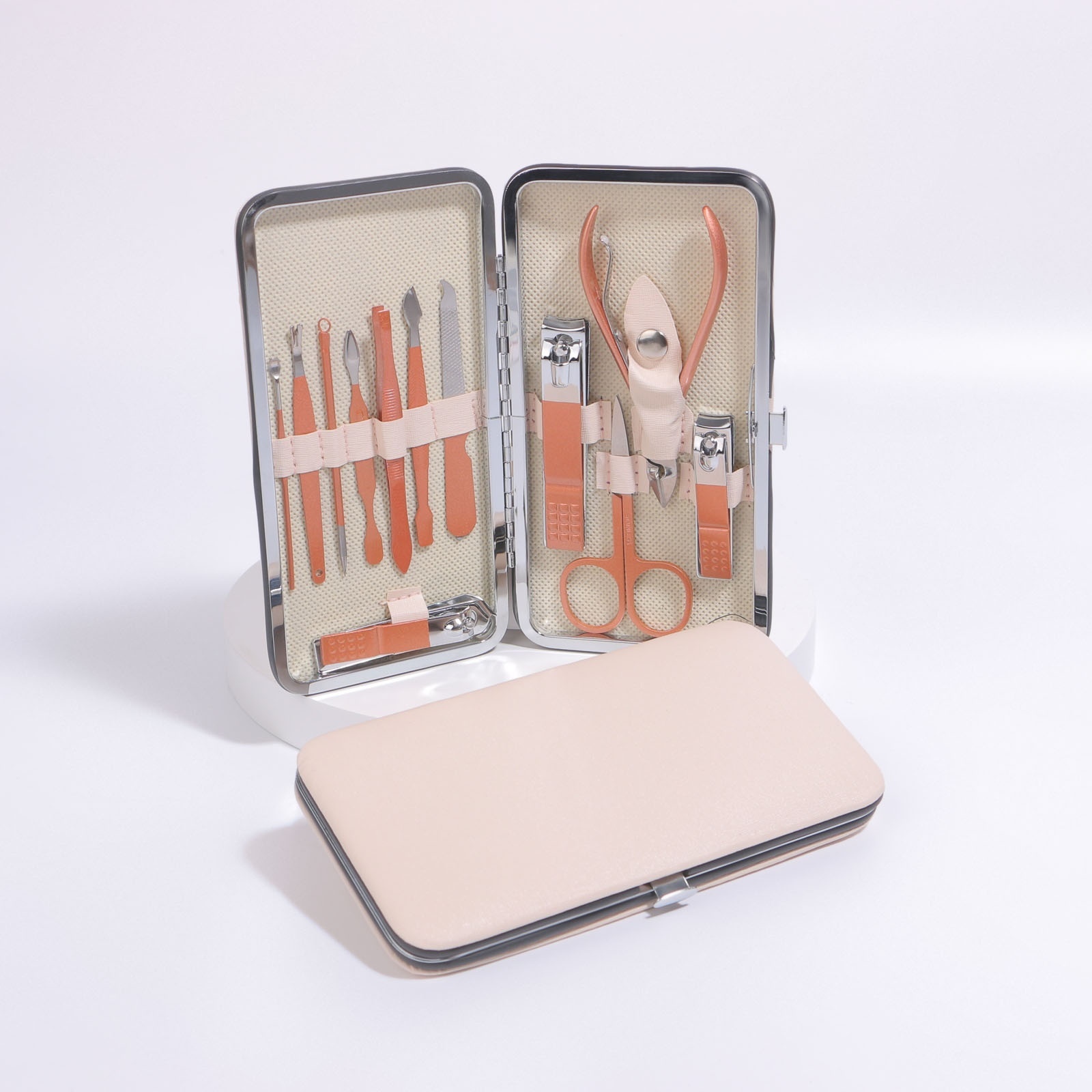 Набор маникюрный, 12 предметов, в футляре, цвет бежевый/розовое золото