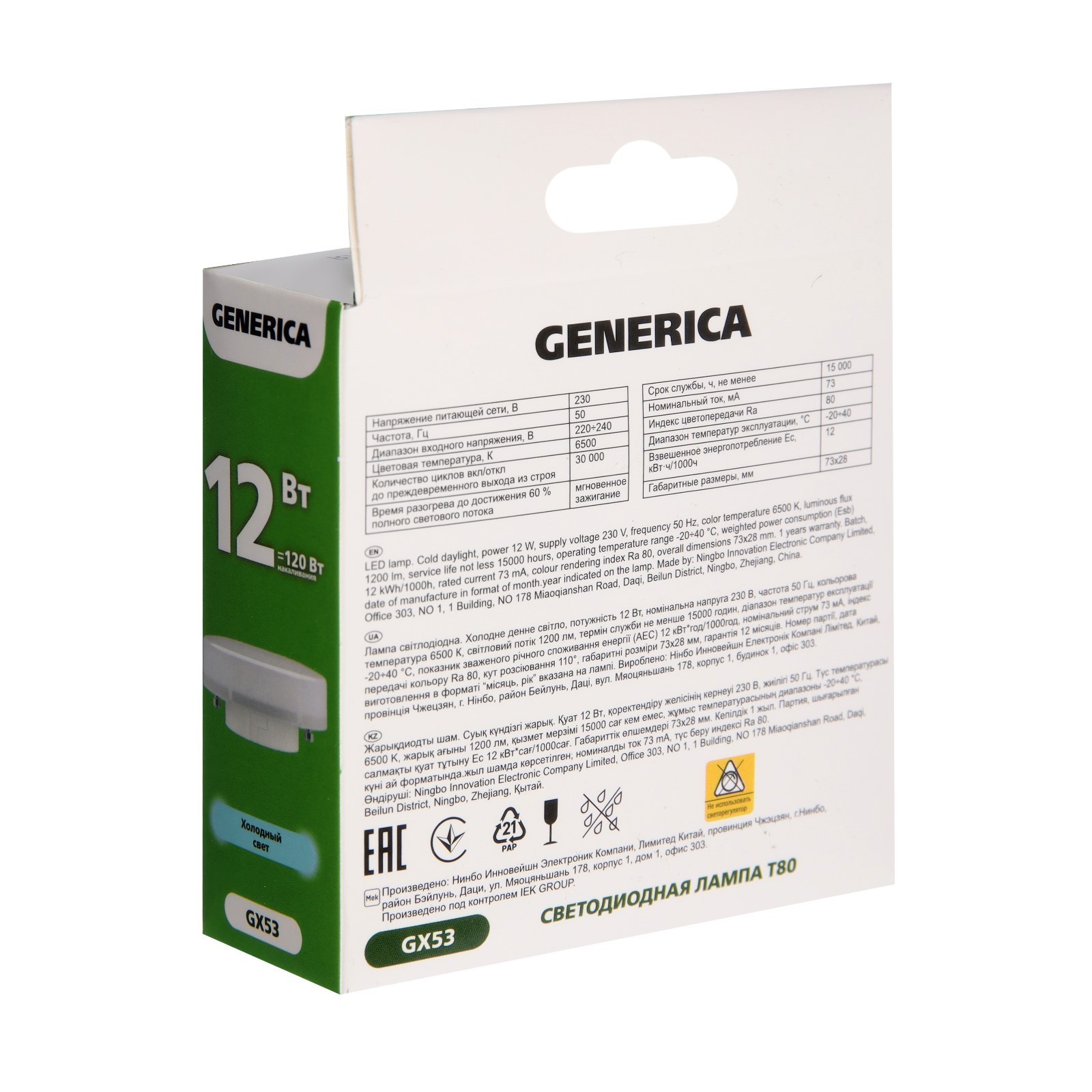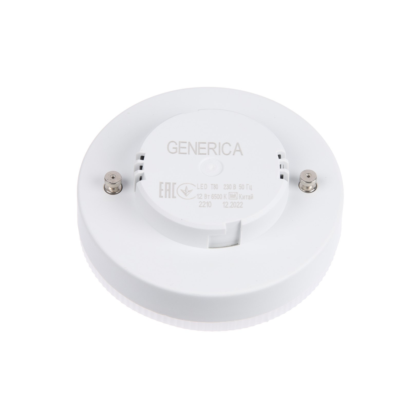 Лампа светодиодная Generica T80, 12 вт, таблетка, 6500 к, Gx53, 230 в, Ll-t80-12-230-65-gx53-g
