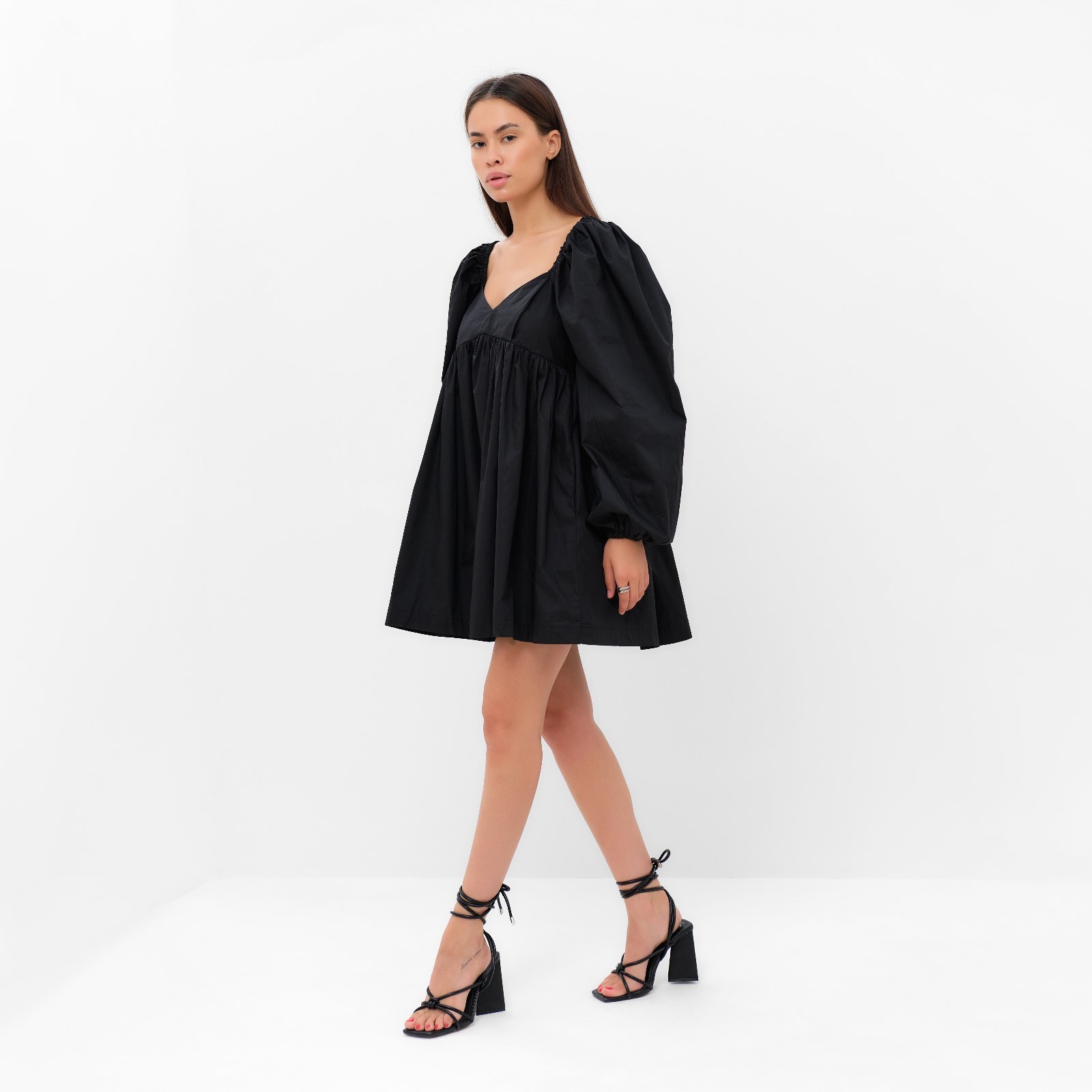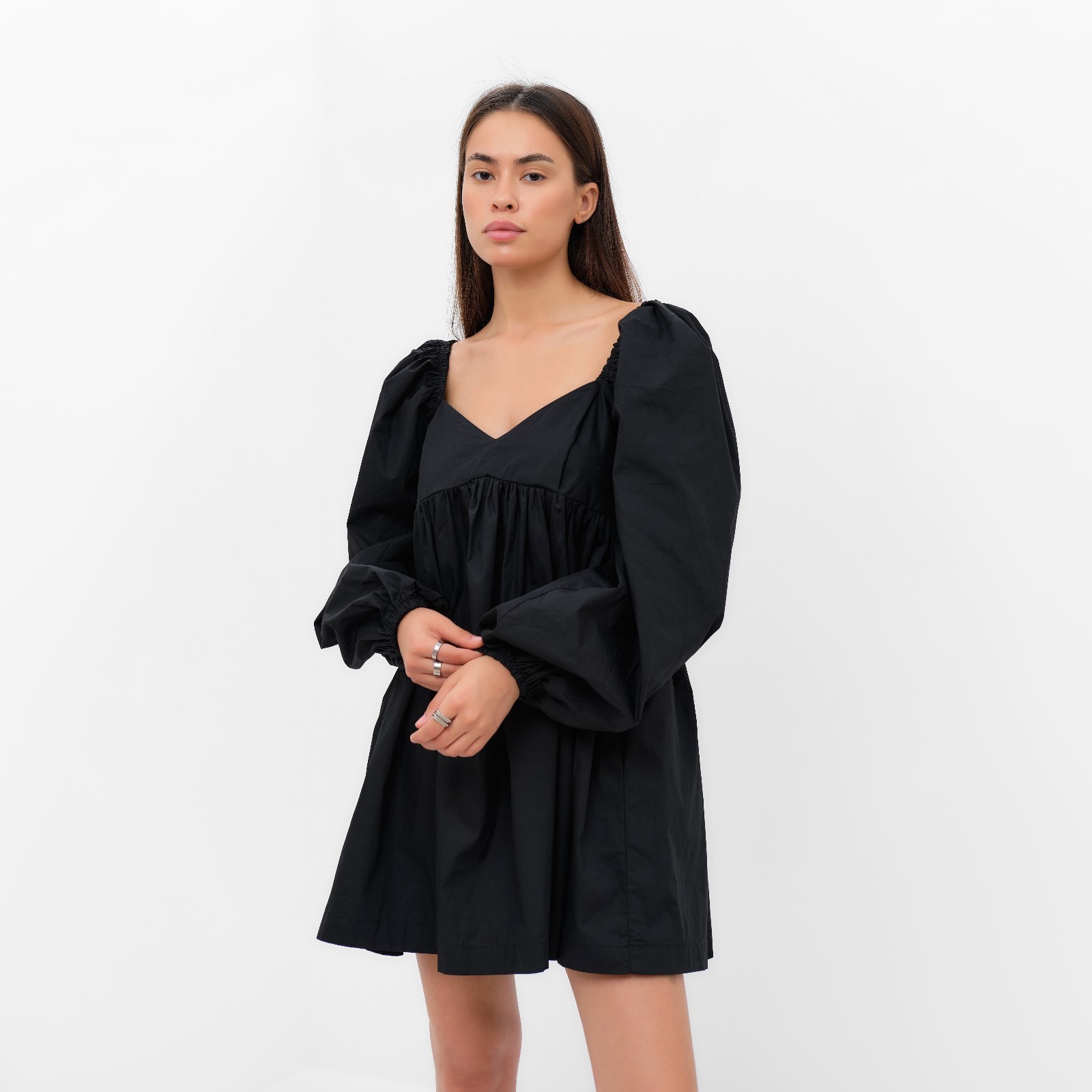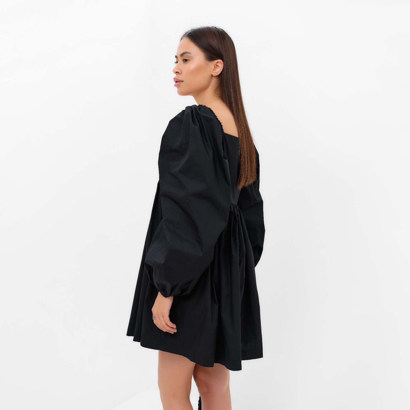 Платье с объёмными рукавами мини женское mist, чёрное, размер 40-42. Цвет:Чёрный|Для кого:Для женщины|Назначение:Повседневная|Назначение:Пляж|Ткань:Хлопковая ткань|Размер:40|Размер:42|Рост, см:165 - 175|Сезон:Всесезонный|Длина рукава:Длинный|Вырез горловины:Фигурный|Состав ткани:Хлопок|Длина юбки:Мини|Вид юбки:Солнце|Страна:Россия  развернуть описание ▼