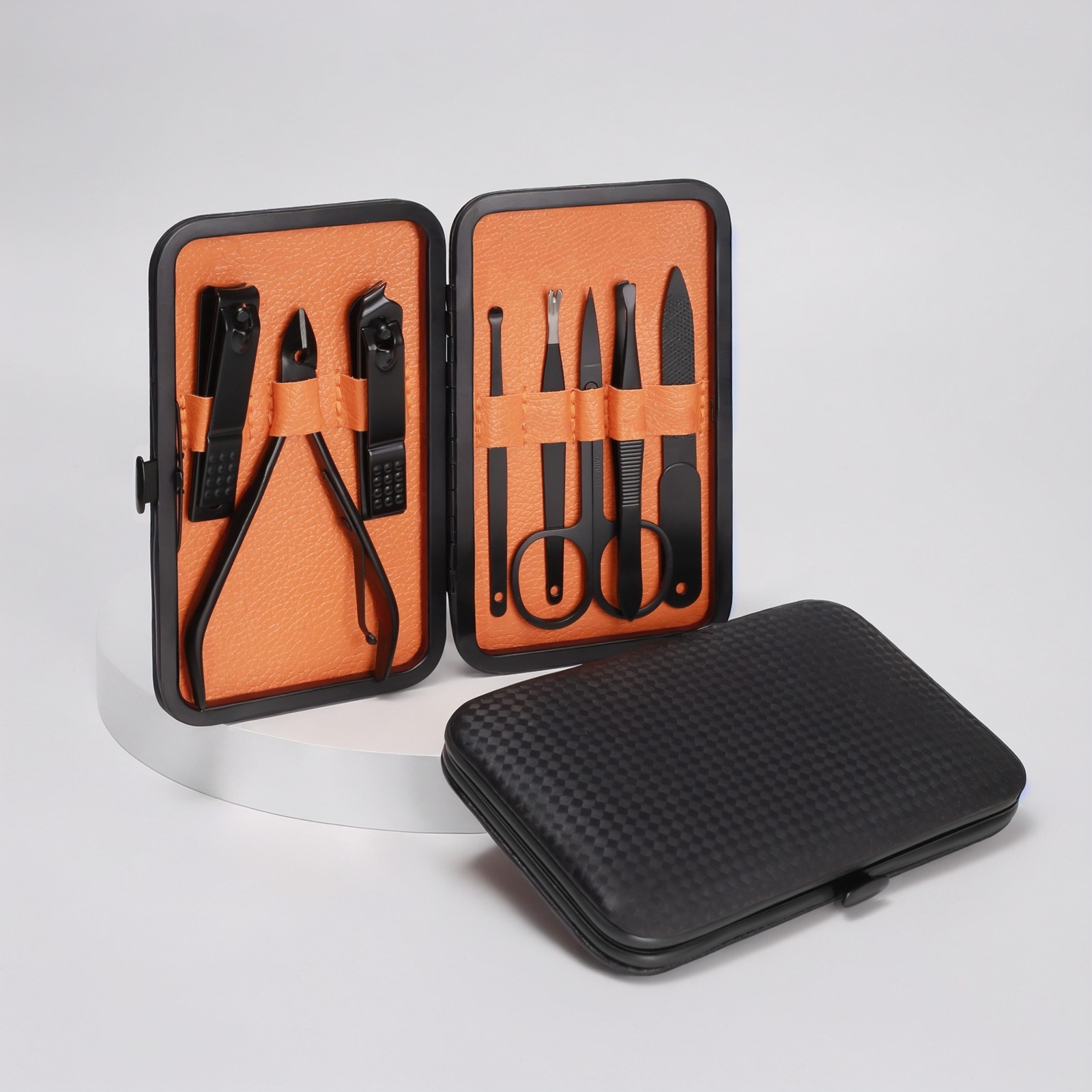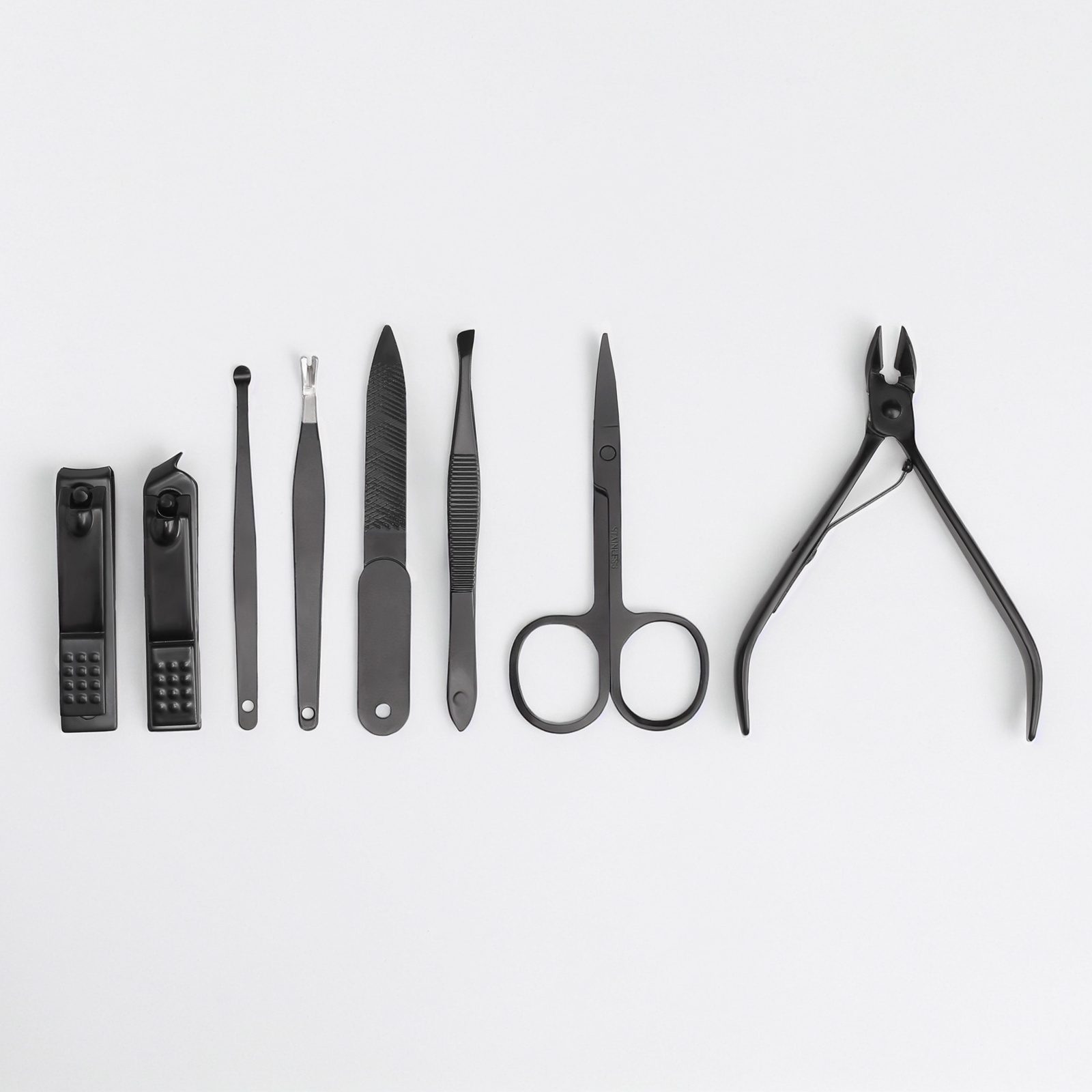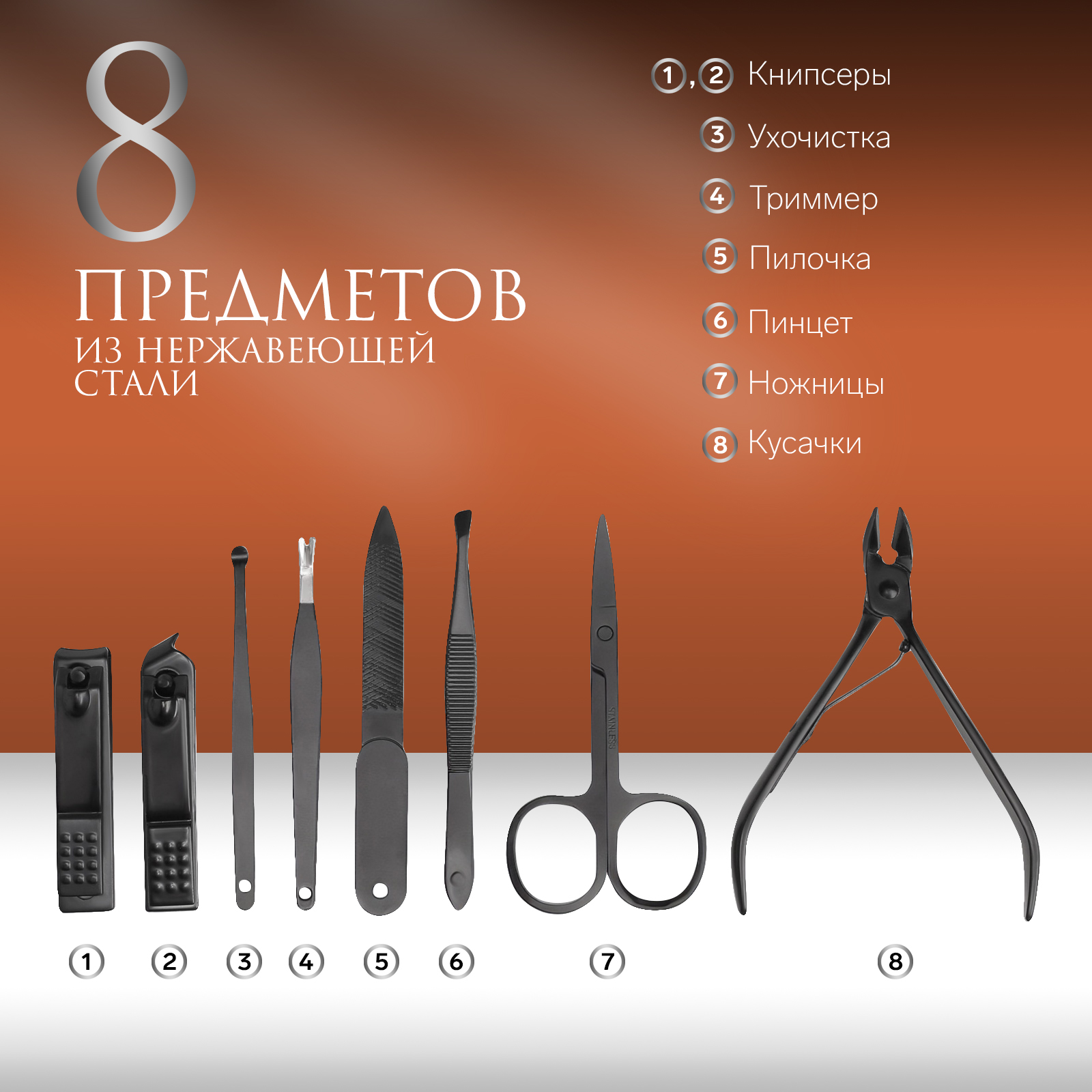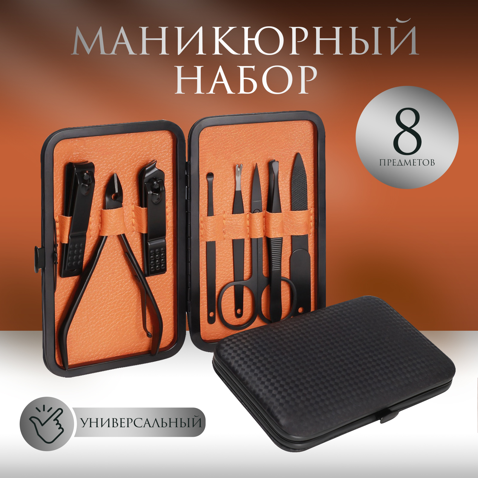 Набор маникюрный, 8 предметов, в футляре, цвет чёрный