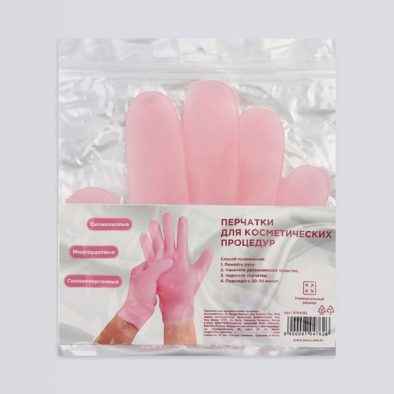 Силиконовые перчатки для косметических процедур, многоразовые, 20 см, размер универсальный, цвет розовый