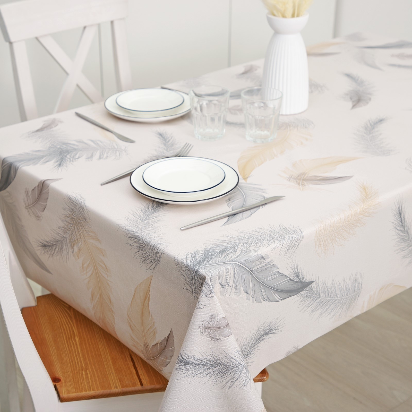 Клеёнка на стол на ткани «перья», рулон 20 метров, ширина 137 см, толщина 0,25 мм