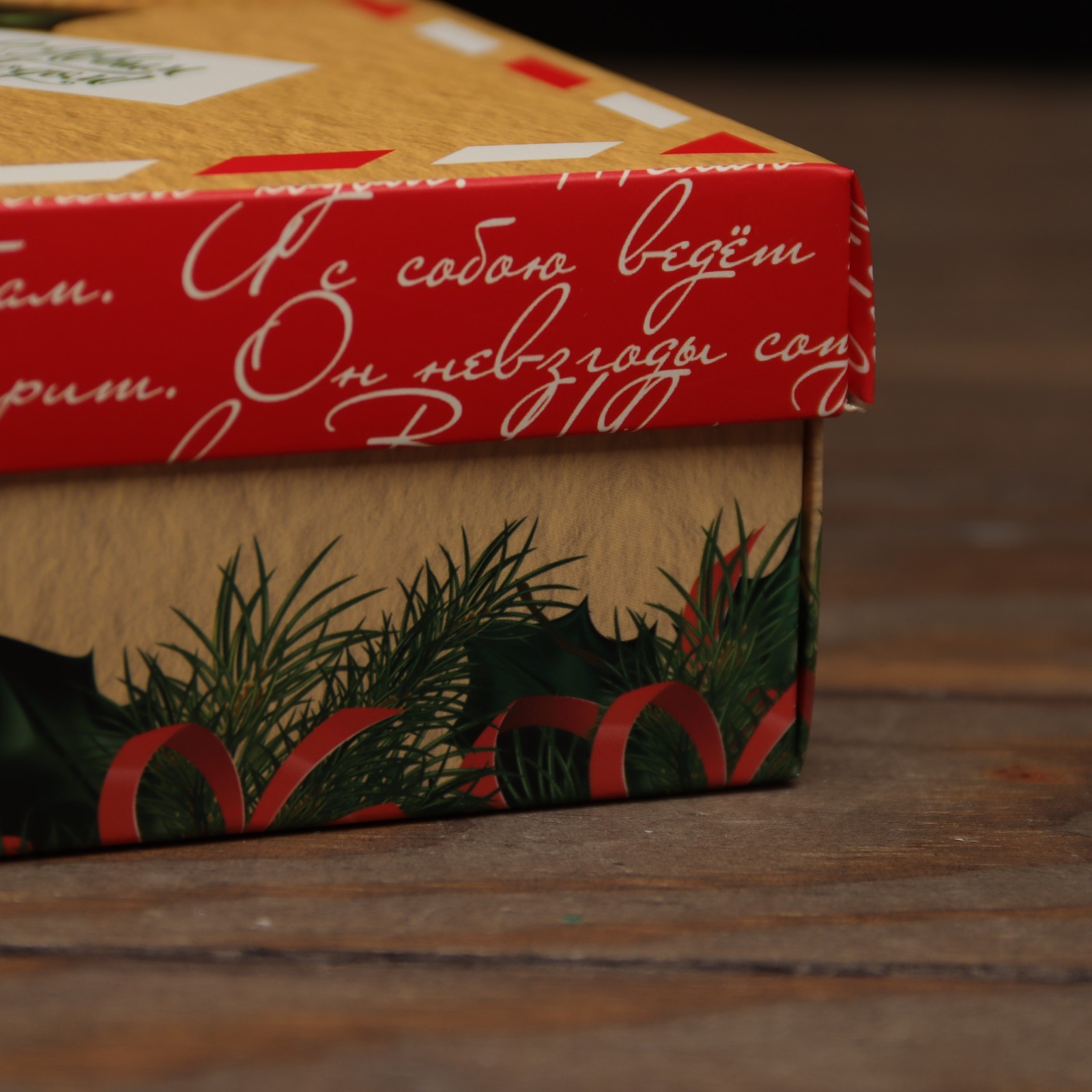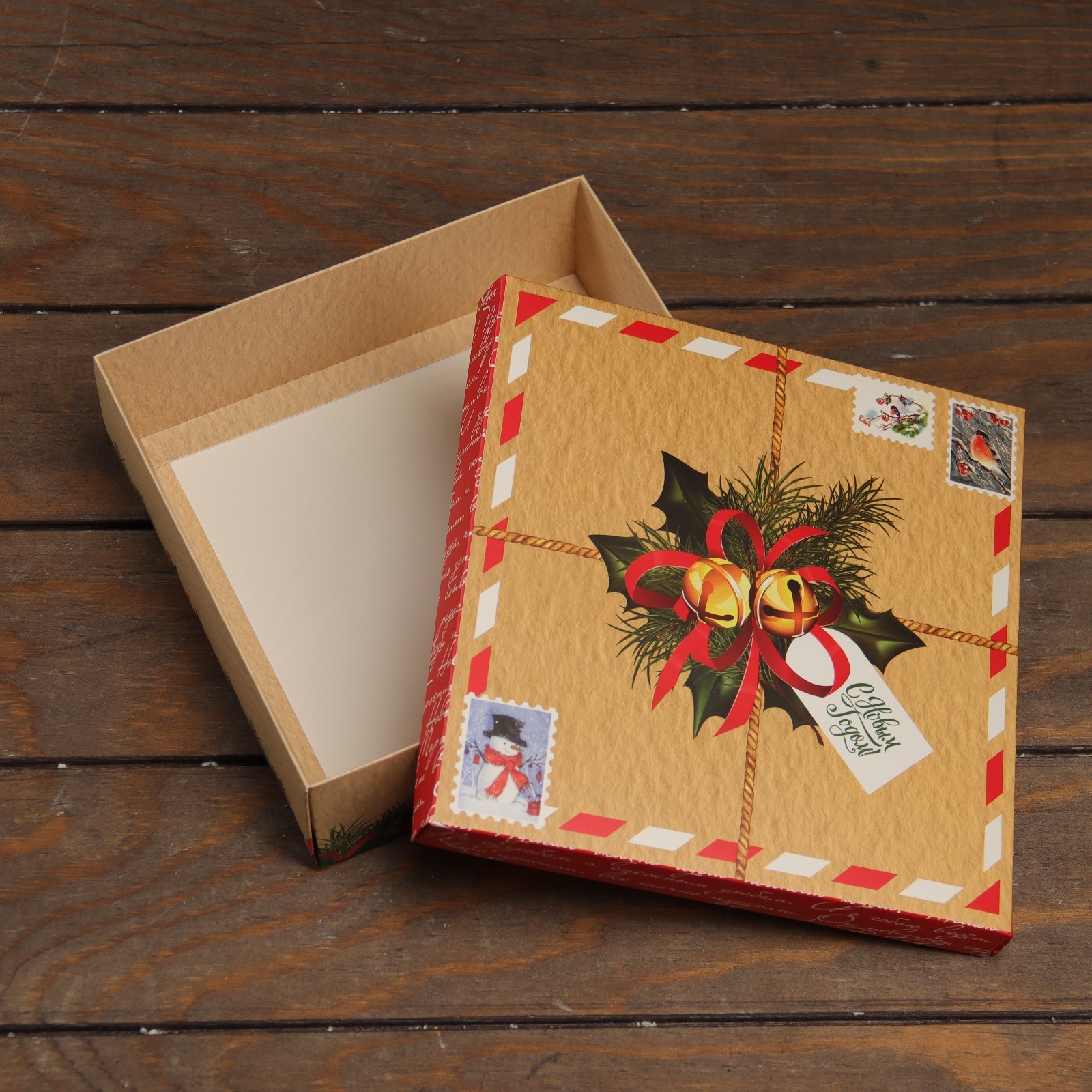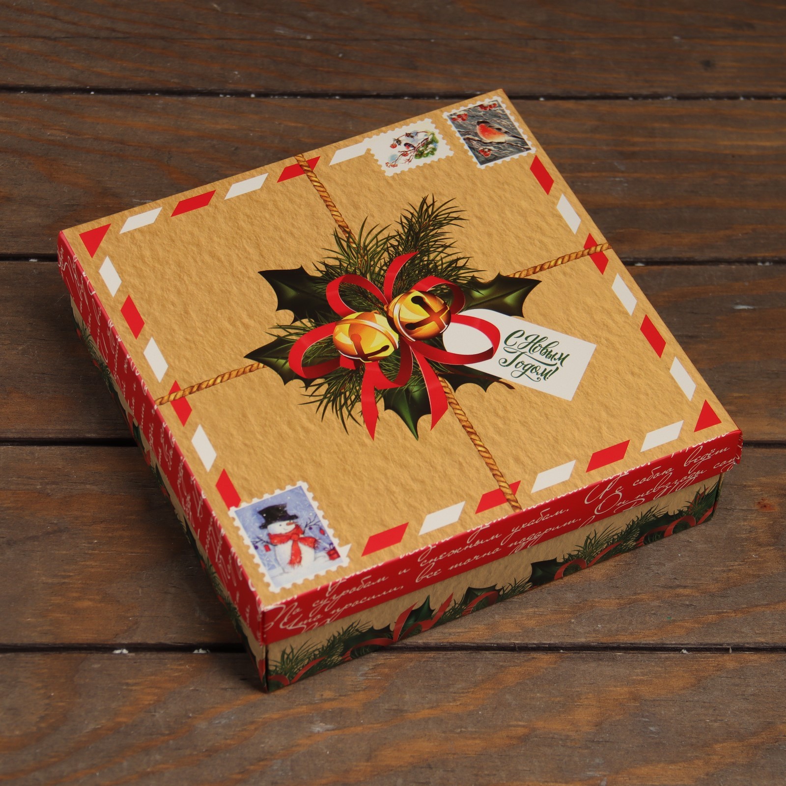 Коробка подарочная новогодняя складная «с новым годом» 20 20 6 см. Коробка складная - универсальное и практичное решение для упаковки и представления различных товаров или подарков. Её конструкция обеспечивает надежную защиту содержимого, делая её идеальной для разнообразных подарков. Эта коробка сочетает в себе функциональность и простоту использования, подходя для широкого спектра товаров и ситуаций. Цвет:Бежевый|Форма:Квадратная|Плотность, г/м :300|Длина, см:20|Ширина, см:6|Ширина, см:20|Высота, см:6|Плотность картона, г/кв.м:350|Тематика:Праздник|Тематика:Зима|Символ года:Нет|Тематика праздника:Новый год|Тематика праздника:Рождество|Материал:Картон|Вид еды:Универсальный|Вид еды:Для десертов|Вид:Крафт коробки|Вид:Складные коробки|Вид:Жёсткие (крышка+дно)|Размер:Средний (18-24 см)|Окошко:Нет|Крышка-дно:Да|Страна:Китай  развернуть описание ▼