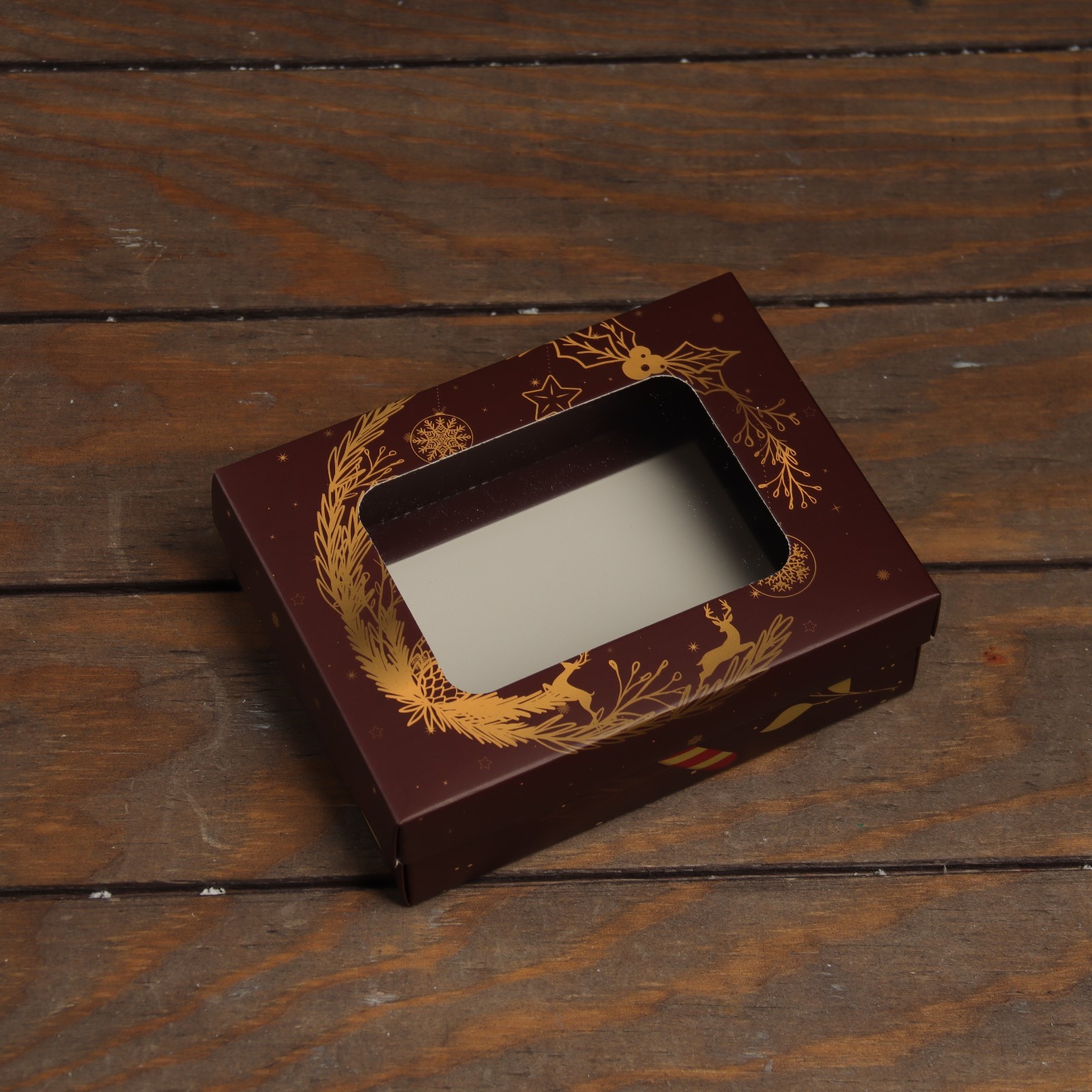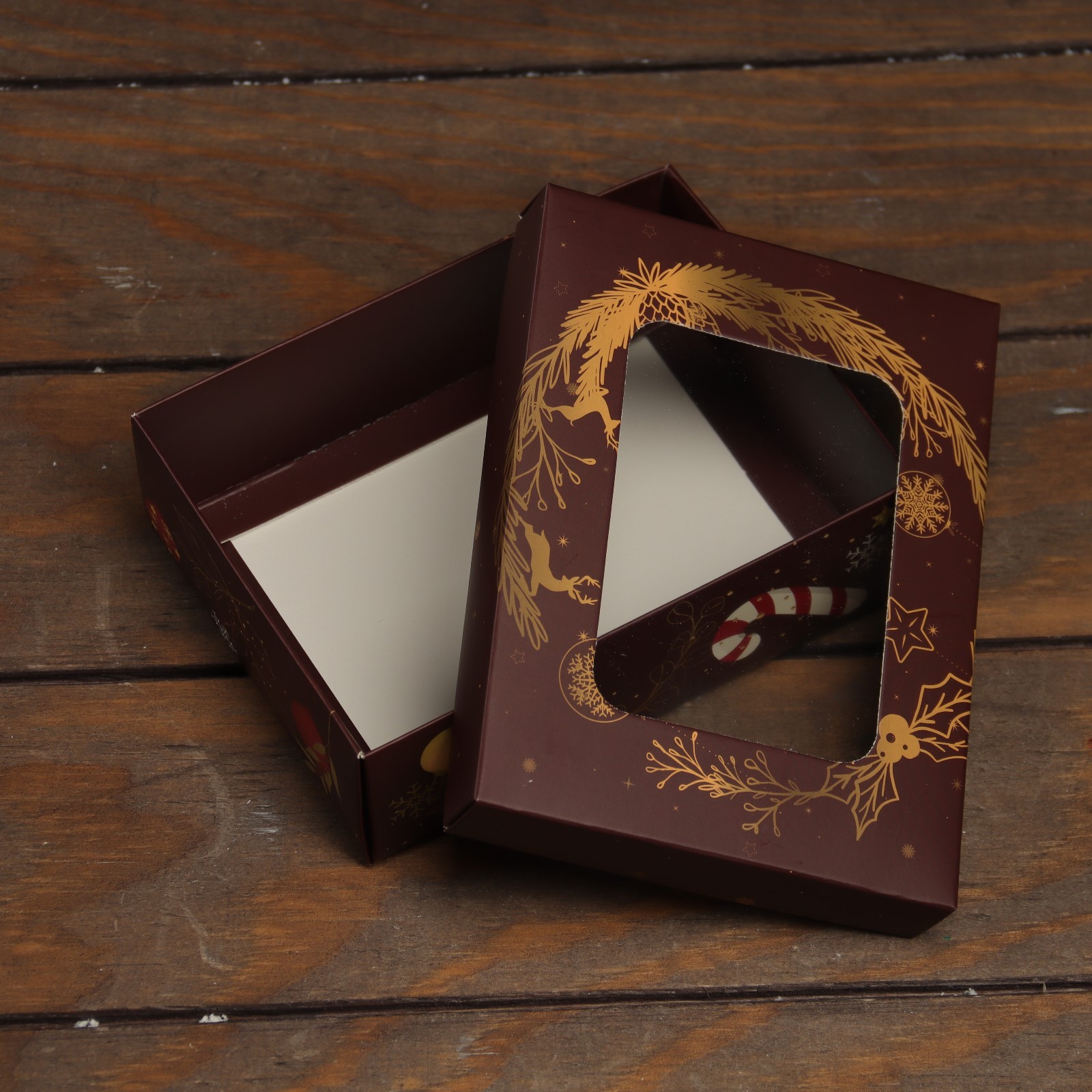 Коробка подарочная складная с окном «новогодняя сказка» 16.5 12.5 5 см. Коробка складная с окном - практичное и стильное решение для упаковки и представления товаров или подарков. Прозрачное окно добавляет возможность визуально оценить содержимое коробки, придавая ему дополнительную привлекательность. Эта коробка сочетает в себе функциональность и визуальное привлечение, делая товары или подарки более привлекательными для покупателей или получателей. Цвет:Коричневый|Форма:Прямоугольная|Плотность, г/м :350|Длина, см:16.5|Ширина, см:12.5|Высота, см:5.2|Плотность картона, г/кв.м:350|Тематика:Праздник|Тематика:Зима|Символ года:Нет|Тематика праздника:Новый год|Материал:Картон|Вид еды:Универсальный|Вид еды:Для десертов|Вид:Складные коробки|Вид:Крафт коробки|Размер:Малый (11-17 см)|Окошко:Да|Крышка-дно:Да|Страна:Китай  развернуть описание ▼