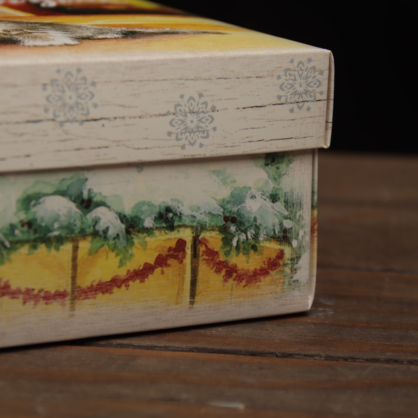 Цвет:Разноцветный|Форма:Прямоугольная|Плотность, г/м :300|Длина, см:24|Ширина, см:17|Высота, см:8|Плотность картона, г/кв.м:350|Тематика:Зима|Тематика:Праздник|Символ года:Нет|Тематика праздника:Рождество|Тематика праздника:Новый год|Материал:Картон|Вид еды:Универсальный|Вид еды:Для десертов|Вид:Жёсткие (крышка+дно)|Вид:Крафт коробки|Вид:Складные коробки|Размер:Средний (18-24 см)|Окошко:Нет|Крышка-дно:Да|Страна:Китай