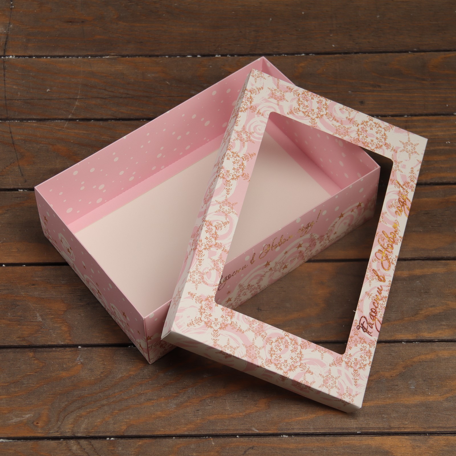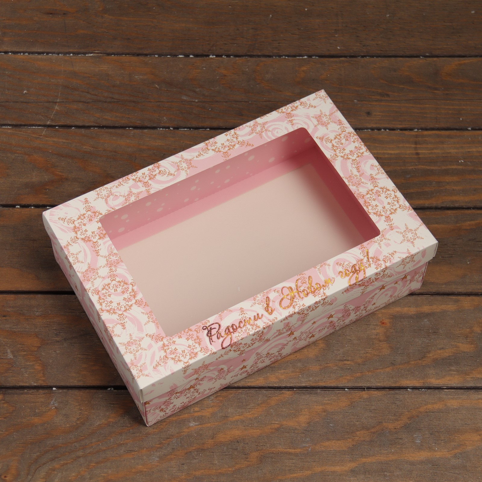 Коробка подарочная новогодняя складная с окном «с новым годом» 30 20 9 см. Коробка складная с окном - практичное и стильное решение для упаковки и представления товаров или подарков. Прозрачное окно добавляет возможность визуально оценить содержимое коробки, придавая ему дополнительную привлекательность. Эта коробка сочетает в себе функциональность и визуальное привлечение, делая товары или подарки более привлекательными для покупателей или получателей. Цвет:Розовый|Форма:Прямоугольная|Плотность, г/м :300|Длина, см:30|Ширина, см:20|Высота, см:9|Плотность картона, г/кв.м:350|Тематика:Зима|Тематика:Праздник|Символ года:Нет|Тематика праздника:Рождество|Тематика праздника:Новый год|Материал:Картон|Вид еды:Универсальный|Вид еды:Для десертов|Вид:Крафт коробки|Вид:Складные коробки|Вид:Жёсткие (крышка+дно)|Размер:Большой (25-45 см)|Окошко:Да|Крышка-дно:Да|Страна:Китай  развернуть описание ▼