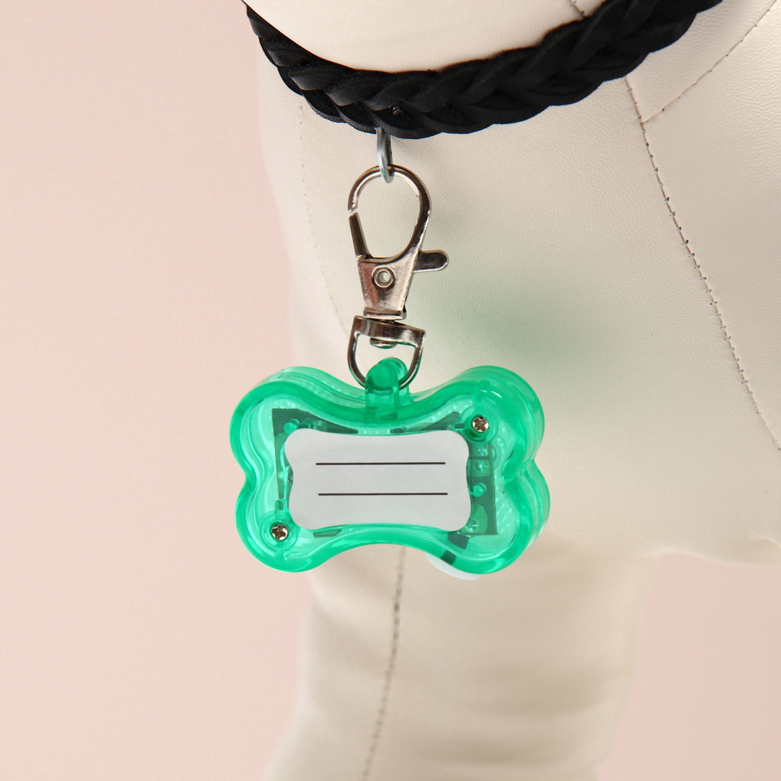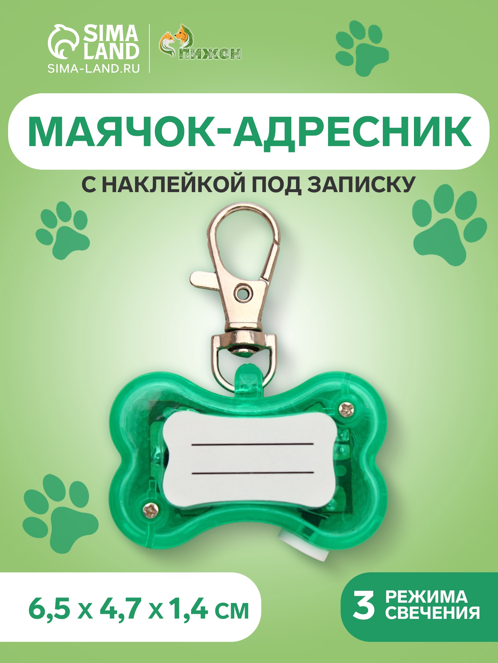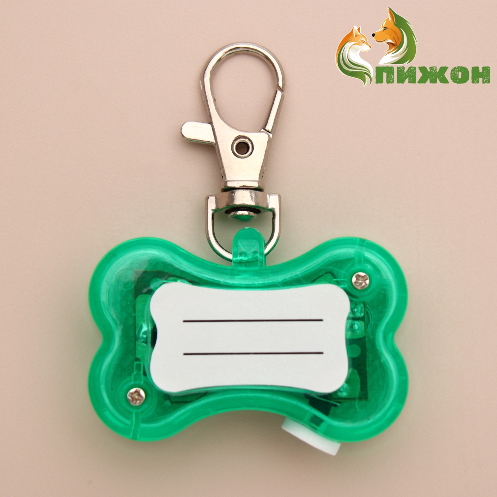 Маячок-адресник «косточка» с наклейкой под записку 3 режима свечения, зелёный. Маячок-адресник Косточка с наклейкой под записку, 3 режима свечения, зелёный Маячок для животных – красивый и практичный аксессуар, он крепится на ошейник животного и служит для обеспечения его безопасности и легкости обнаружения в темное время суток. Маячок имеет компактный размер и легкий вес для комфортного ношения животным. Наши модели оснащены светодиодными лампами, которые обладают высокой яркостью и долгим сроком службы. Они специально разработаны таким образом, чтобы быть видимыми на значительном расстоянии. Каждый маячок для животных имеет три режима свечения - медленное мигание, быстрое мигание и постоянное свечение это обеспечивает яркое и видимое освещение вокруг шеи вашего животного. Цвет:Зелёный|Форма:Фигурная|Рисунок:Нет|Материал:Пластик|Вид:Адресник|Особенности:Под записку|Особенности:С подсветкой|Страна:Китай  развернуть описание ▼