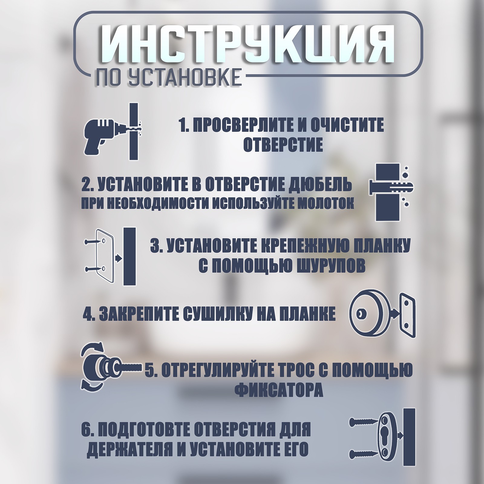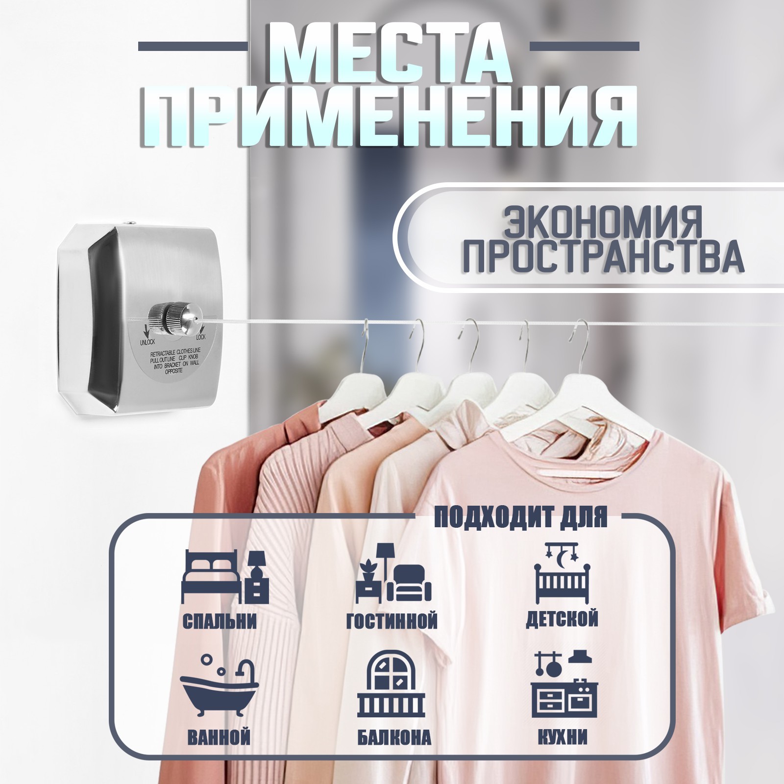 Настенная сушилка для белья тундра, нейлоновый вытяжной трос 2.8 м. до 3 кг, цвет хром