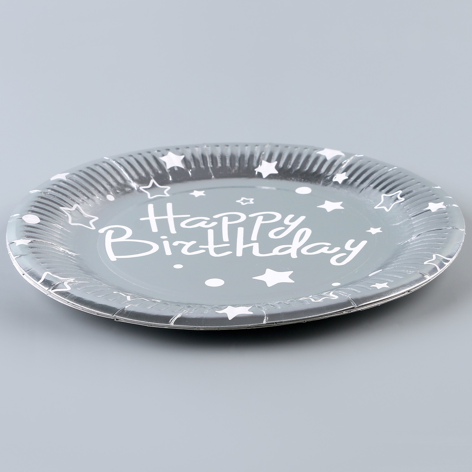 Тарелка бумажная «с днём рождения», звёзды, в наборе 6 шт., 23 см, цвет серебро