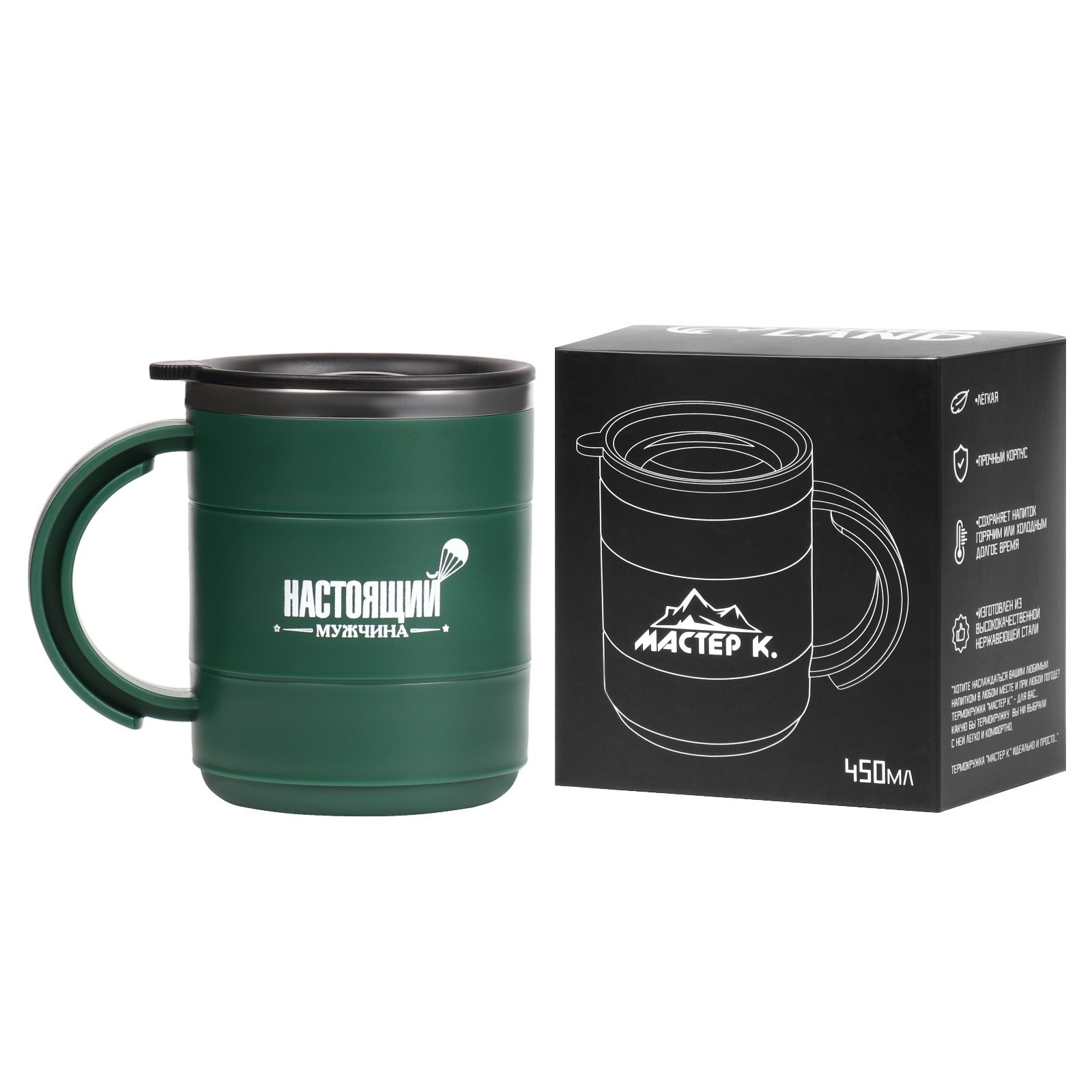 Термокружка, 450 мл, поход "настоящий мужчина", сохраняет тепло 2 ч, 12.5 х 10.5 см
