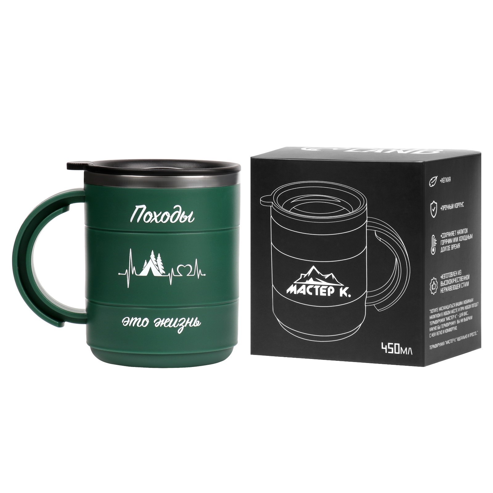 Термокружка, 450 мл, поход "походы - это жизнь", сохраняет тепло 2 ч, 12.5 х 10.5 см
