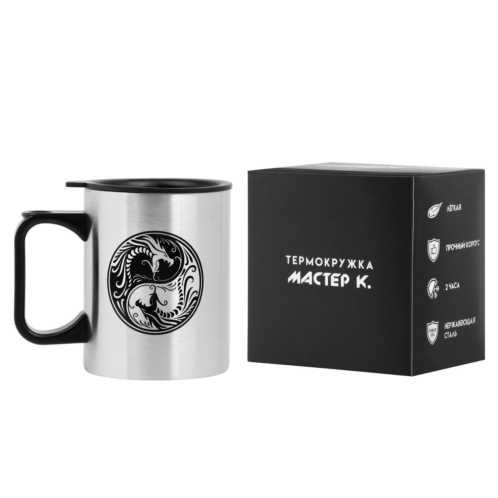 Термокружка, 380 мл, Travel "инь-ян. драконы", 10 х 7.8 см