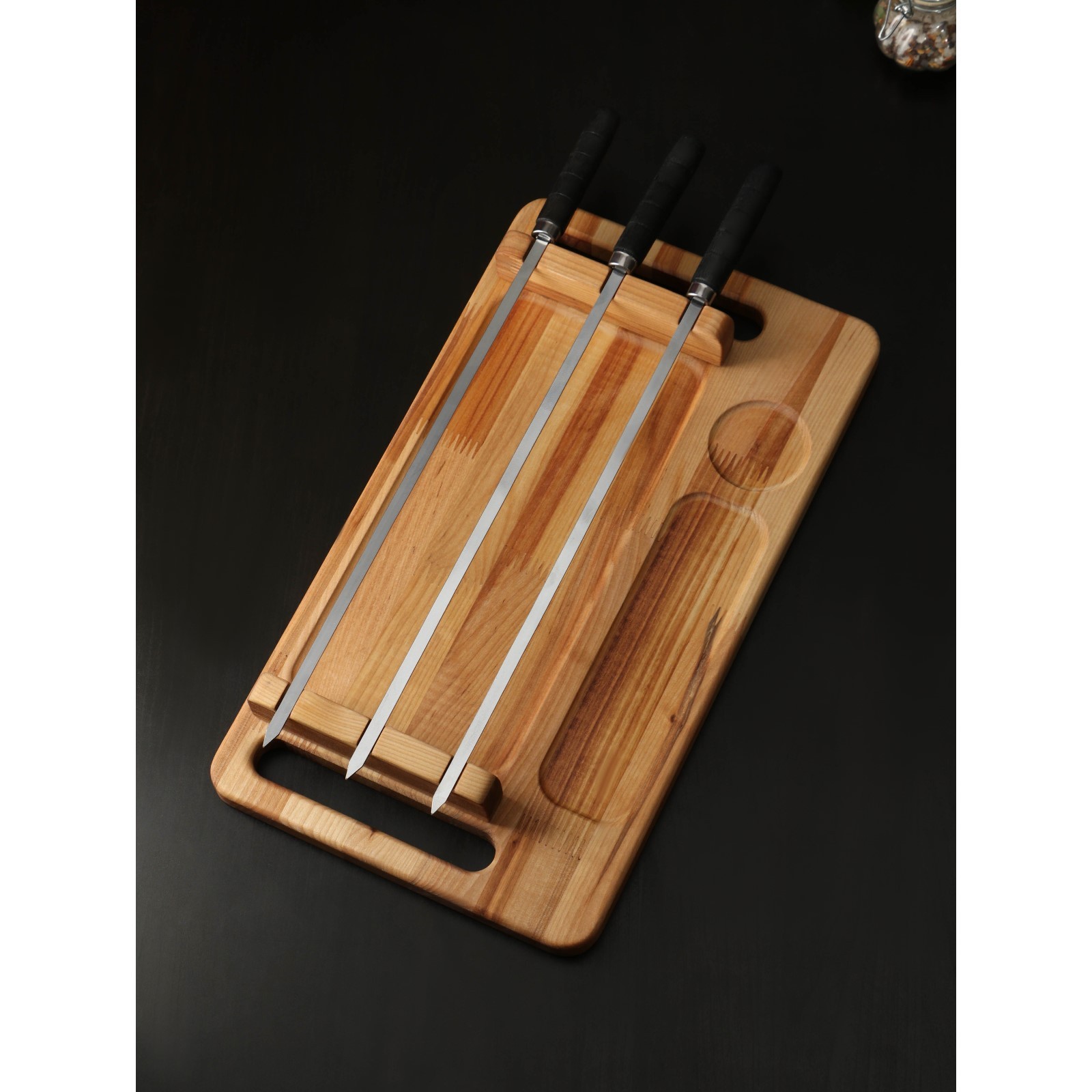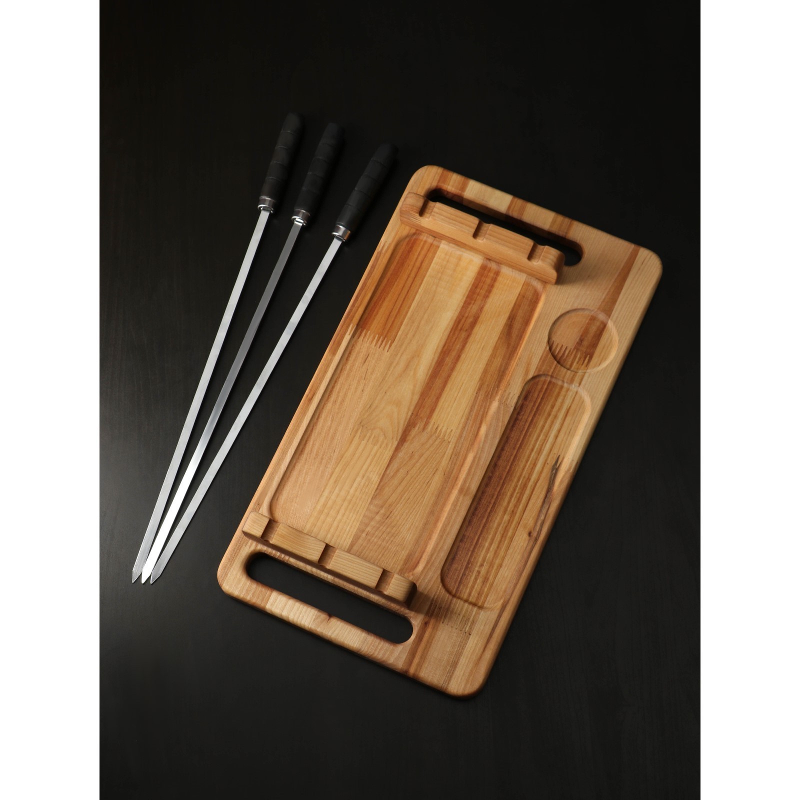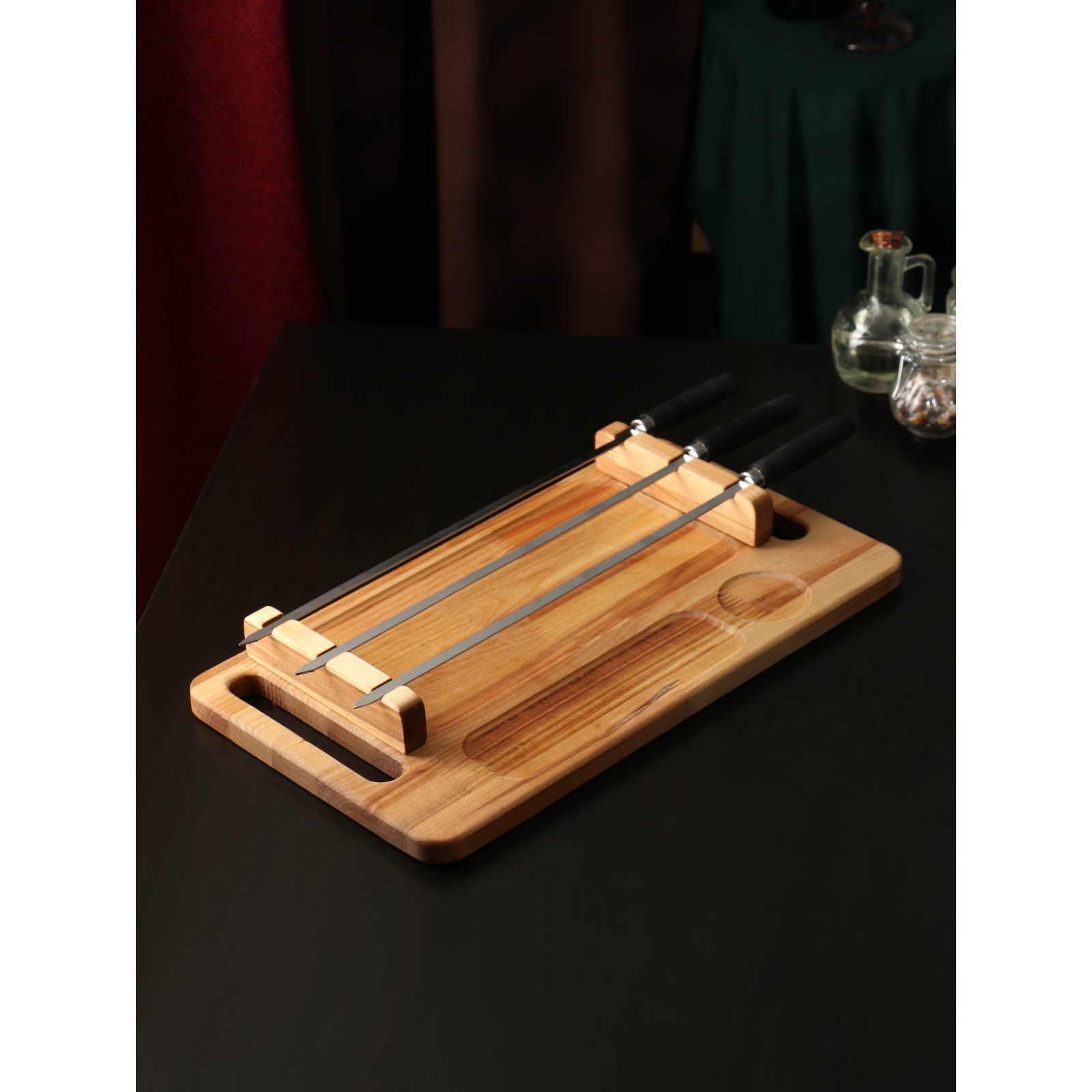 Подарочный набор для подачи шашлыка: доска-тарелка 44x24x5.5 см, шампур 3 шт, опахало, берёза