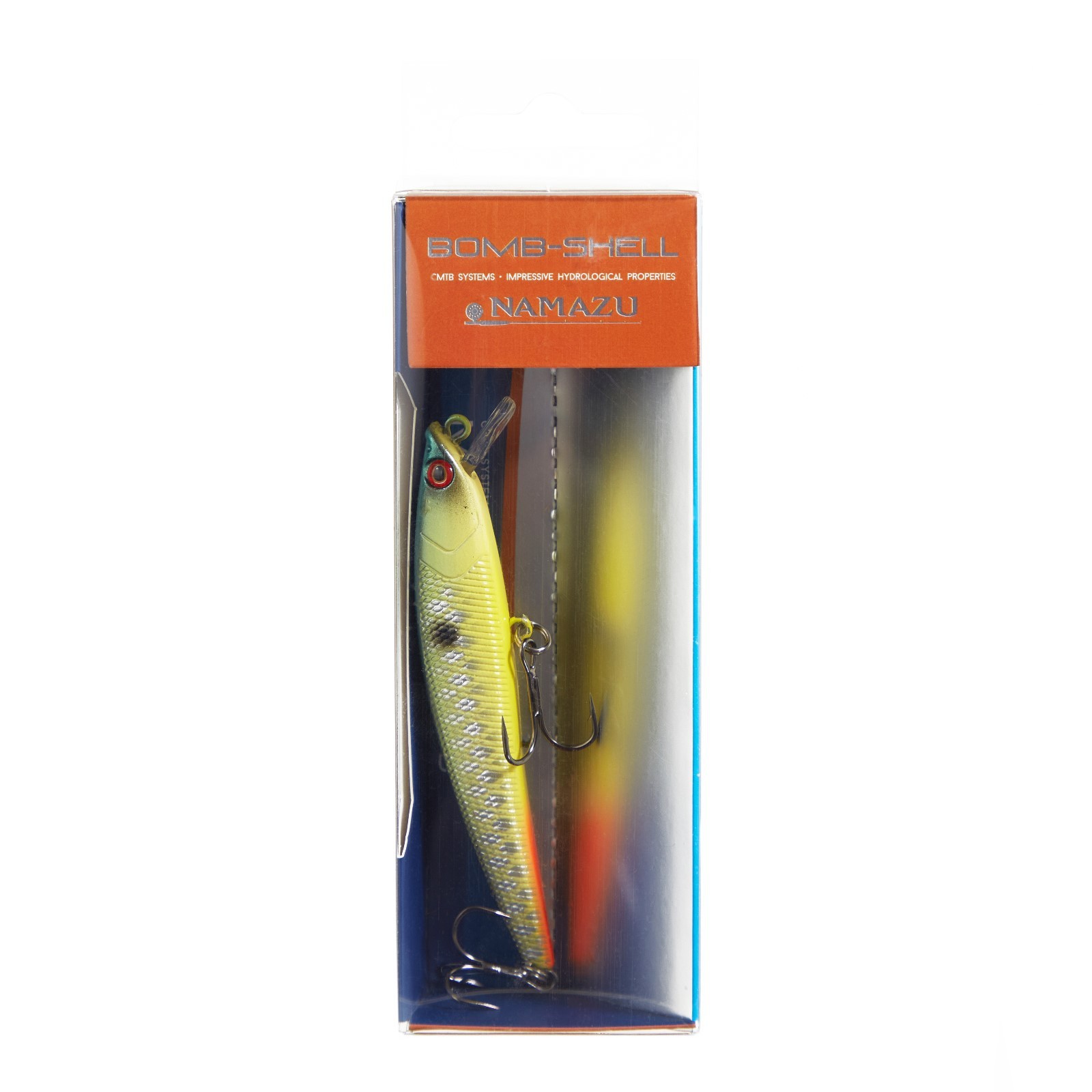 Воблер namazu bomb-shell, 8.8 см, 8.2 г, минноу, плавающий (0.5-1 м), цвет 16. Воблер Namazu Bomb-shell - отличный воблер для ловли на небольших глубинах и над зарослями травы, где часто охотится щука и другие хищники. Благодаря системе дальнего заброса воблер очень хорошо летит при забросе и устойчиво играет даже при проводке с рывками. Два мощных тройника надежно засекают рыбу при поклевке. Все эти качества вместе с реалистичной игрой делают этот воблер отличным орудием для ловли крупного хищника. Цвет: Разноцветный Вес, г: 8.2 Тип приманки: Воблер Материал: Пластик Температурное ограничение: Нет Заглубление, м: 0.5 - 1 Тип плавучести: Плавающий Форма воблера: Минноу  развернуть описание ▼
