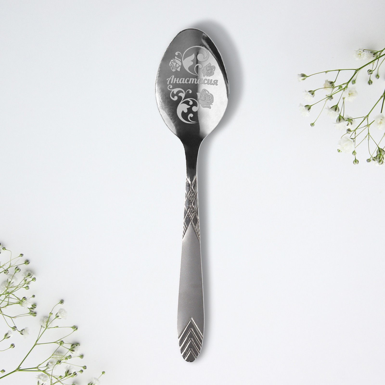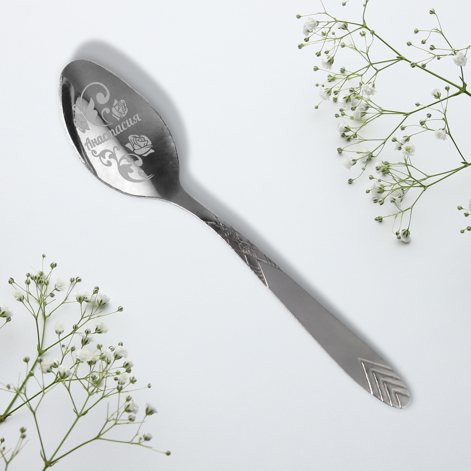 Ложка чайная с гравировкой «анастасия», 3 х 14 см.