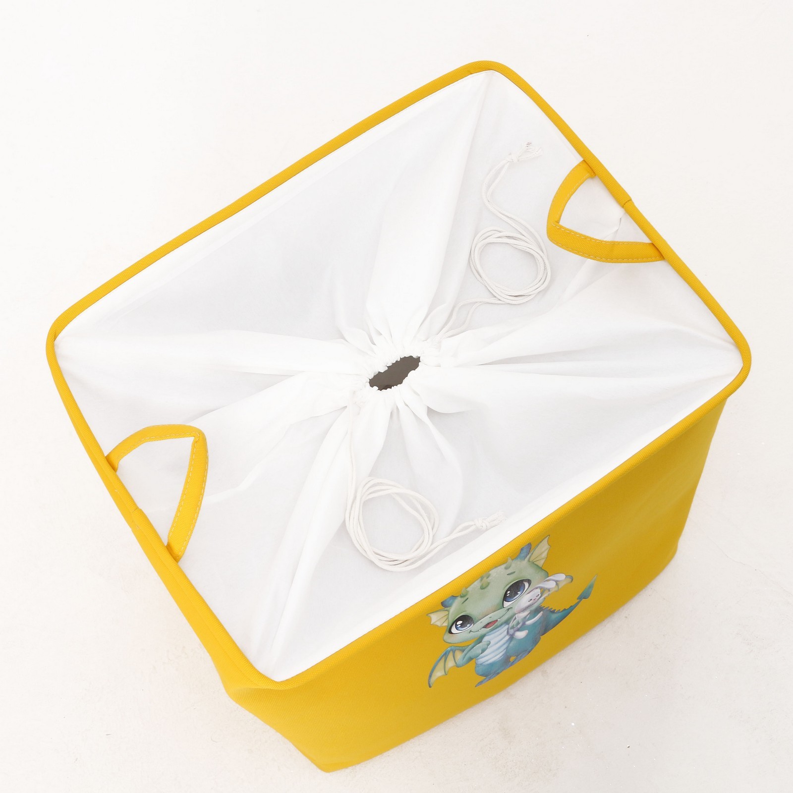 Корзина для хранения игрушкек с затяжкой на веревке, 40 х 50 х 48 см, жёлтая.   Данная корзина предназначена для хранения игрушек и других важных вещей малыша. Она поможет поддерживать чистоту в доме и приучить ребёнка к порядку. Отсутствие острых углов, прочные и лёгкие материалы делают предмет незаменимым в детской комнате.  Такая корзина пригодится в поездках: в ней будет удобно собрать любимые игрушки, с которыми чадо не может расстаться ни на минуту. Она компактна, но вместит всё необходимое, и вещи не рассыплются в дороге. Если изделие стало ненужно, его можно сложить, так оно займёт совсем немного места.  Цвет: Жёлтый Форма: Прямоугольная Ширина, см: 50 Глубина, см: 40 Высота, см: 48 Тематика: Новогодняя Тематика: Детская Тематика: Драконы Тематика: Сказочные животные Крышка: Да Материал: Полиэстер Животное восточного календаря: Дракон Основной материал: Текстиль Форма: Прямоугольник  развернуть описание ▼