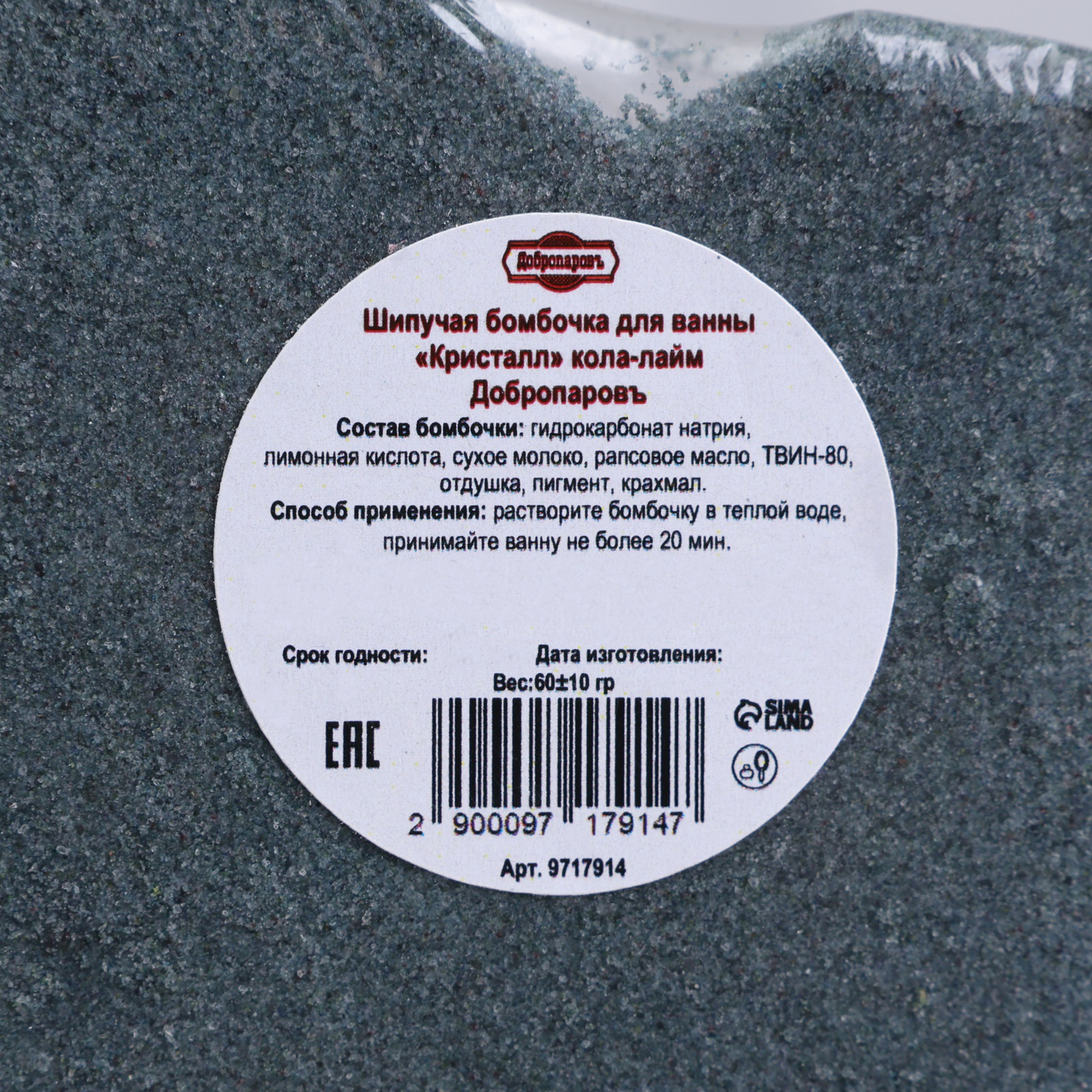 Бомбочка для ванны "кристалл" кола-лайм 60 г. Польза бомбочек для ванной доказана исследованиями ее ингредиентов. Сода смягчает и разглаживает кожу, помогает избавиться от сухости. Этот компонент хорошо очищает кожу от омертвевших клеток и очищает поры. Лимонная кислота действует как мягкий химических пилинг без образования шелушащихся участков. Кожа становится более эластичной, клетки эпидермиса быстрее обновляются, морщинки сокращаются, а тон кожи выравнивается. Помимо эффектного бурления и приятного запаха, бомбочки для ванны имеют и полезные свойства. Они тонизируют, благоприятно воздействуют на кожу, оздоравливают, помогают снять стресс, отвлечься от забот, да и в целом улучшают настроение. Польза бомбочки напрямую зависит от того, что входит в ее состав: Лимонная кислота очищает кожу наподобие мягкого пилинга, тонизирует и омолаживает, нормализует кислотно-щелочной баланс, оказывает легкое осветляющее действие. Морская соль помогает расслабиться мышцам, снимает напряжение, выводит из организма токсины и шлаки, смягчает сухую кожу, помогает при кожных заболеваниях. Эфирные масла увлажняют кожу и наполняют ванную комнату особыми ароматами, имеющими различные терапевтические эффекты. В зависимости от вашей задачи ароматная бомбочка может успокаивать или наполнять энергией, повышать настроение или улучшать сон, снимать напряжение или пробуждать чувственность. Базовые правила: До ванны примите душ, чтобы очистить кожу и обеспечить активное проникновение полезных веществ в клетки. Наберите воду комфортной температуры и поместите бомбочку в ванну. Дождитесь, пока она полностью растворится, и ложитесь. Время принятия ванны — до 20–30 минут. Форма: Фигурная Вес, г: 80 Аромат: Кола Аромат: Лайм Температурное ограничение: Нет Особенности: Без особенностей  развернуть описание ▼