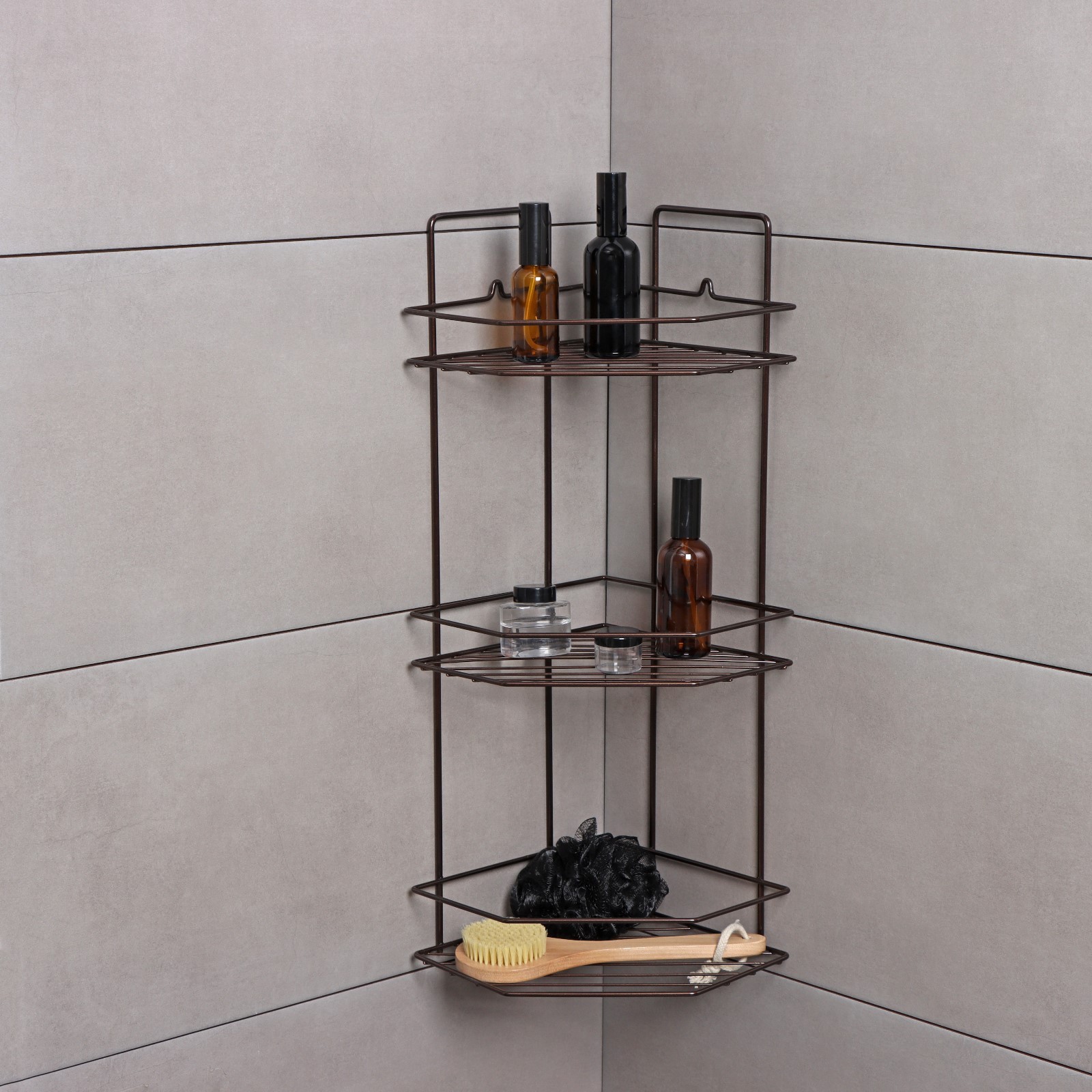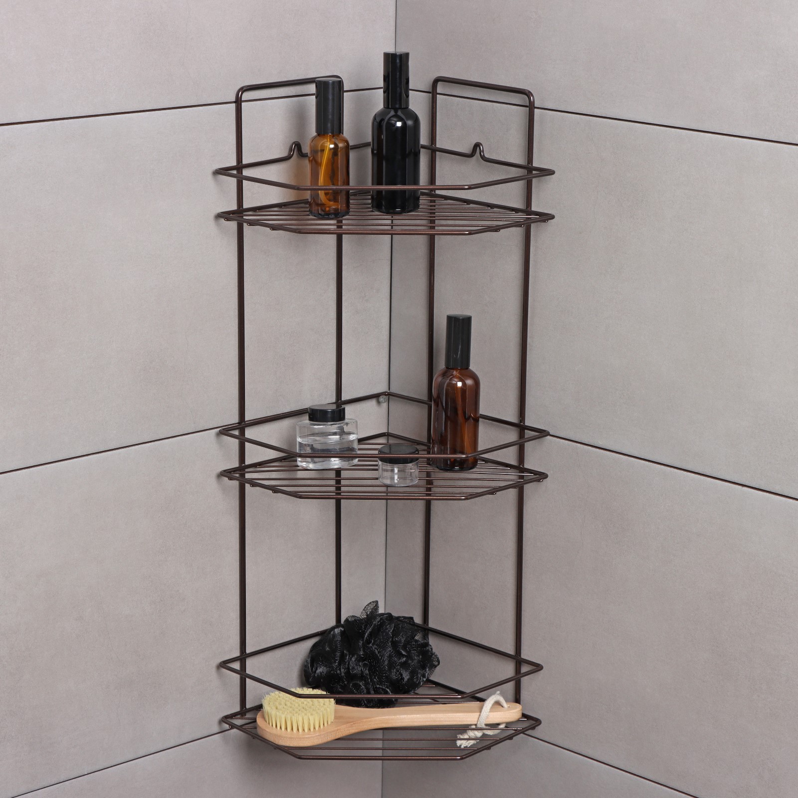 Полка угловая для ванной 3-х ярусная эконом, 220x220x600 мм, цвет медная искра