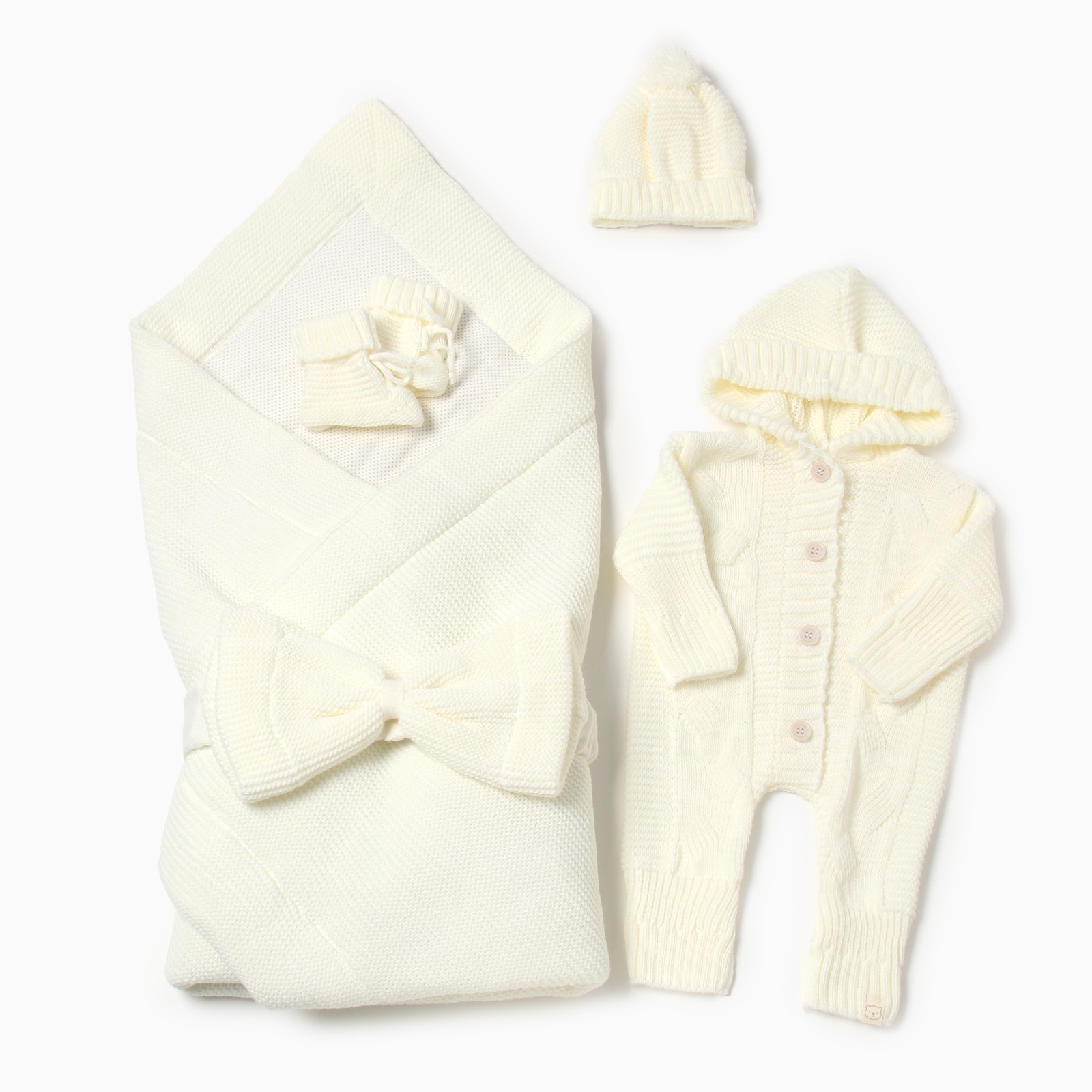Набор для выписки крошка я (одеяло-конверт, бант, комбинезон, пинетки, шапочка), молочный