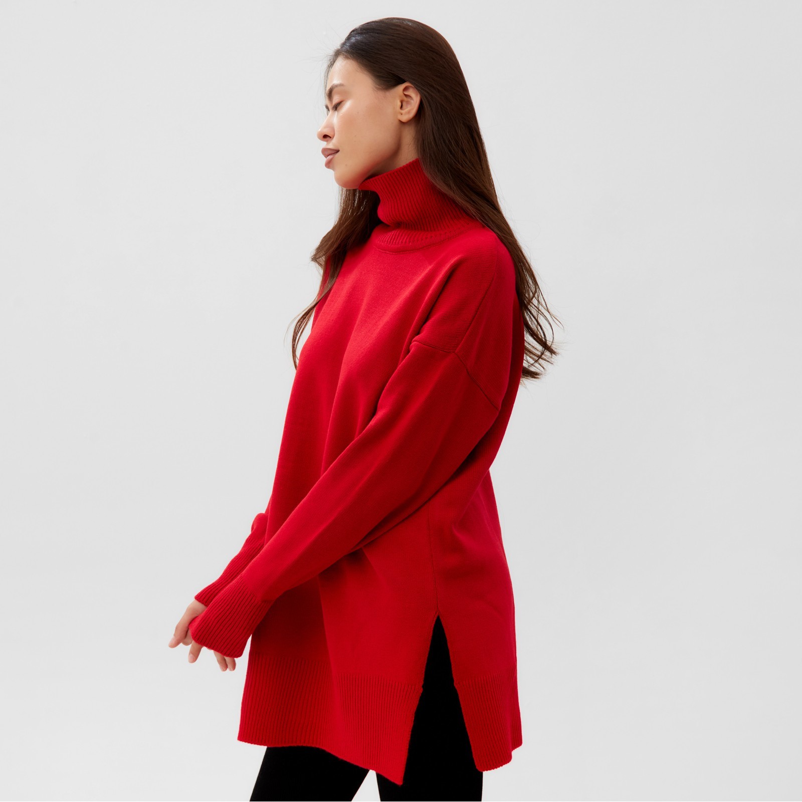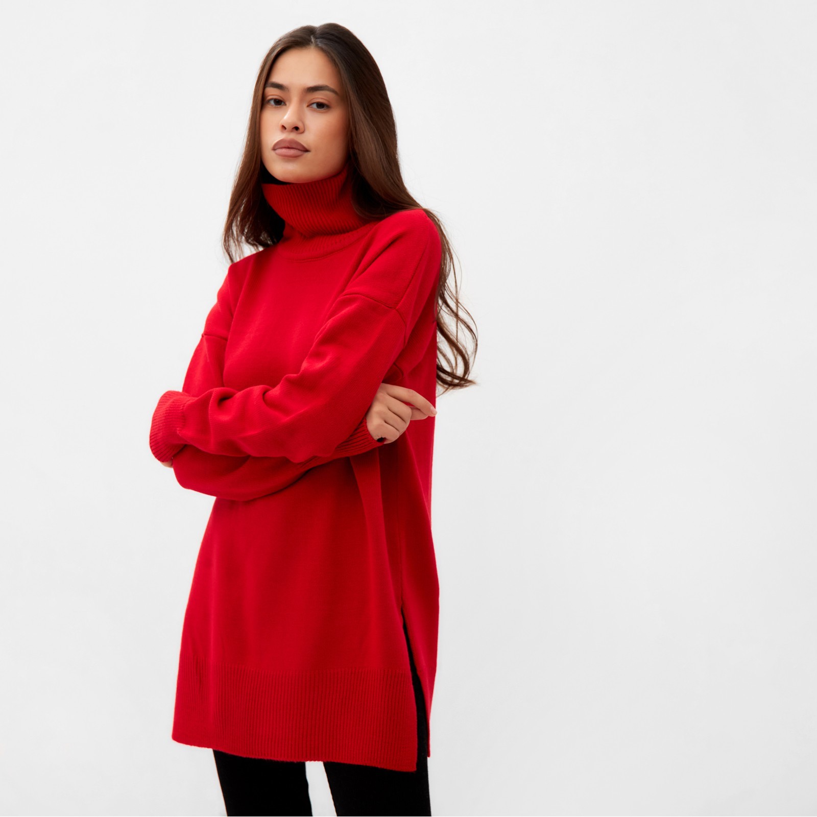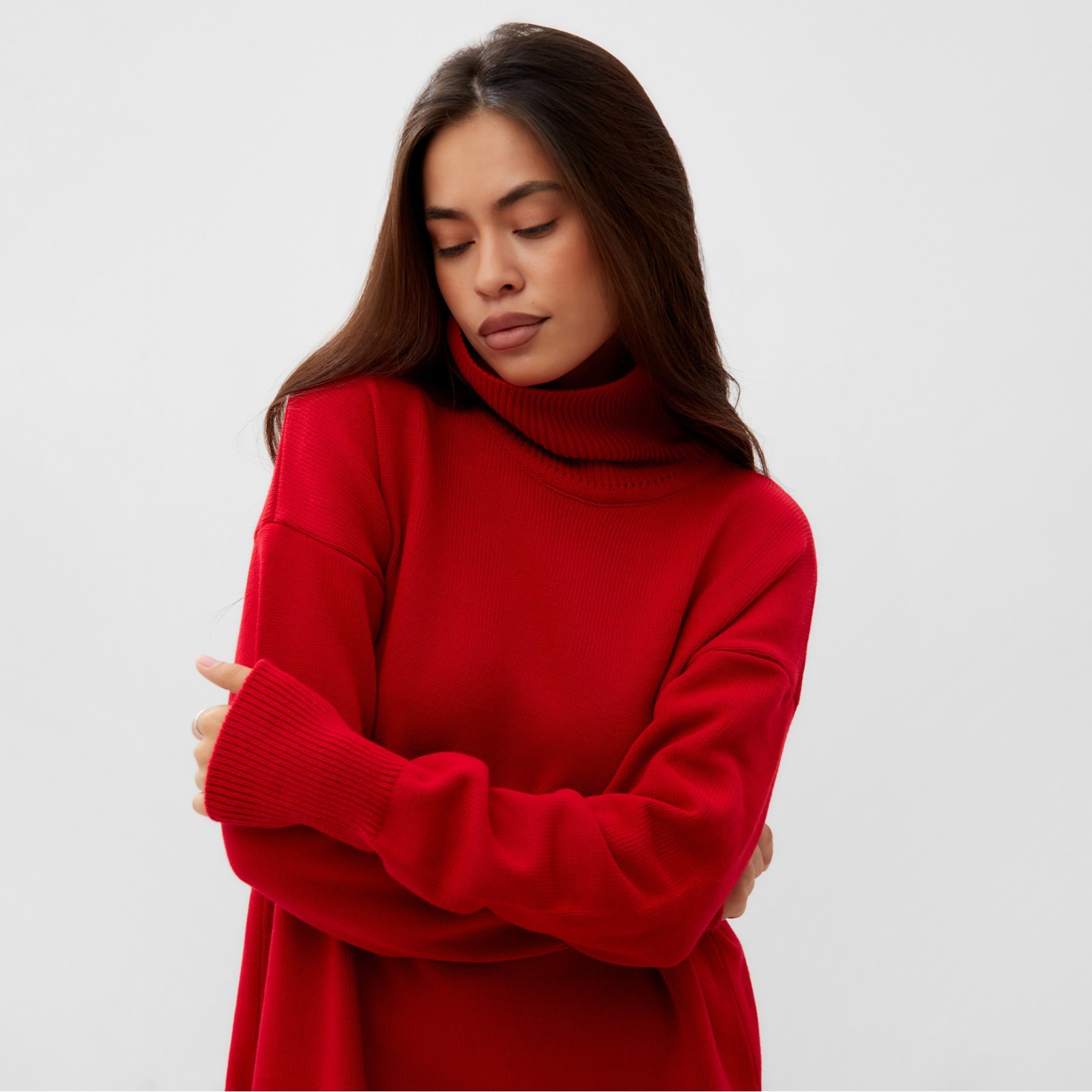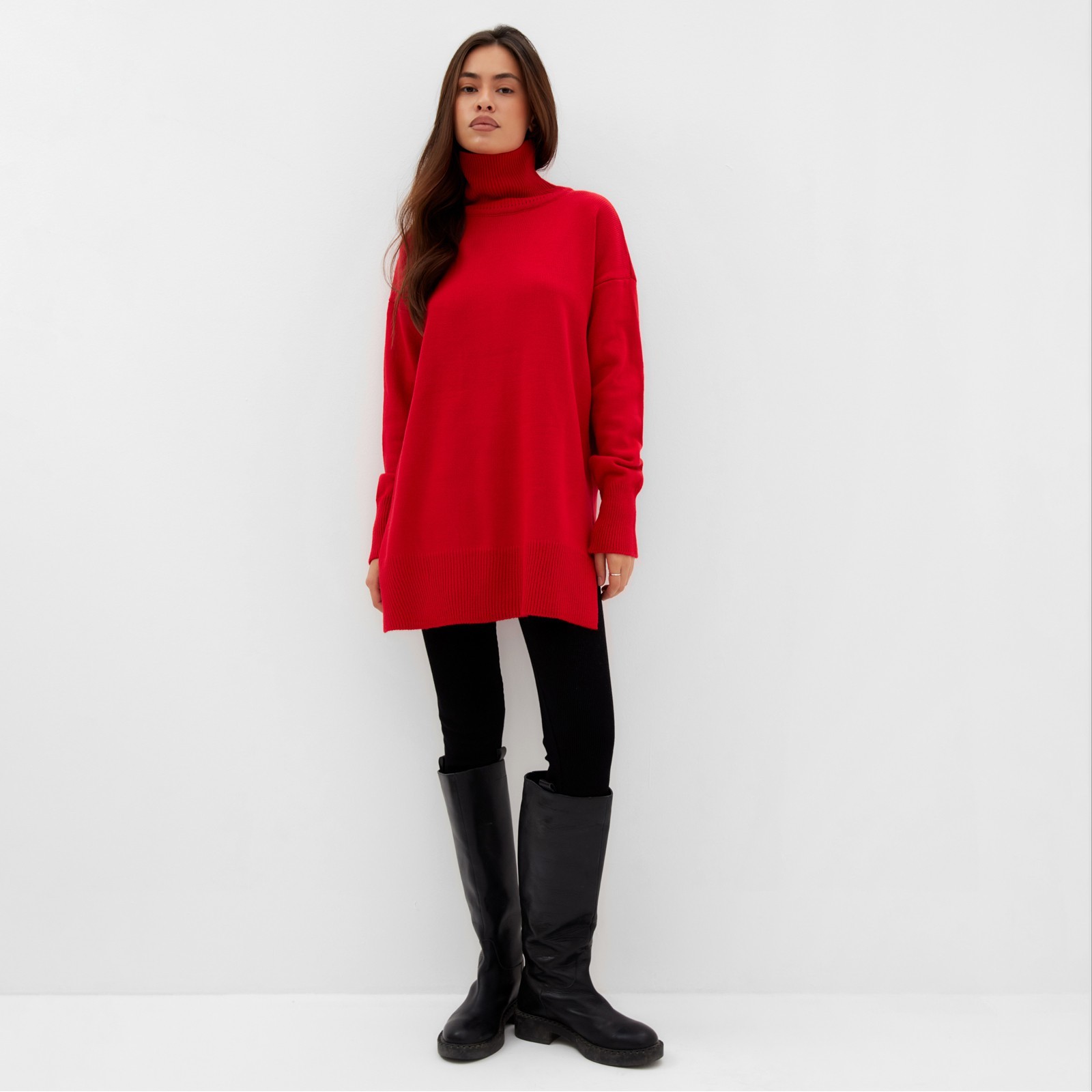 Джемпер с вырезами женский mist, красный, размер 44-46. Цвет:Красный|Для кого:Для женщины|Назначение:Домашняя|Назначение:Школа|Назначение:Повседневная|Ткань:Вязаный трикотаж|Размер:44|Размер:46|Рост, см:165 - 175|Рост модели на фото, см:169|Сезон:Всесезонный|Вид застёжки:Без застёжки|Тематика:Однотонная|Длина рукава:Длинный|Вырез горловины:Воротник-стойка|Покрой:Свободный|Рекомендации по уходу:Не отбеливать|Рекомендации по уходу:Бережный режим глажки|Рекомендации по уходу:Стирка при 30 °С|Состав ткани:Акрил|Наличие капюшона:Нет|Параметры модели на фото (ОГ-ОТ-ОБ):83-64-90|Страна:Россия  развернуть описание ▼