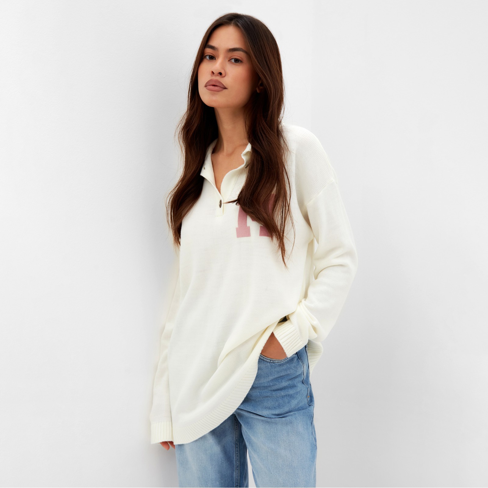 Джемпер с воротником поло женский Mist, молочный, размер м (44-46)